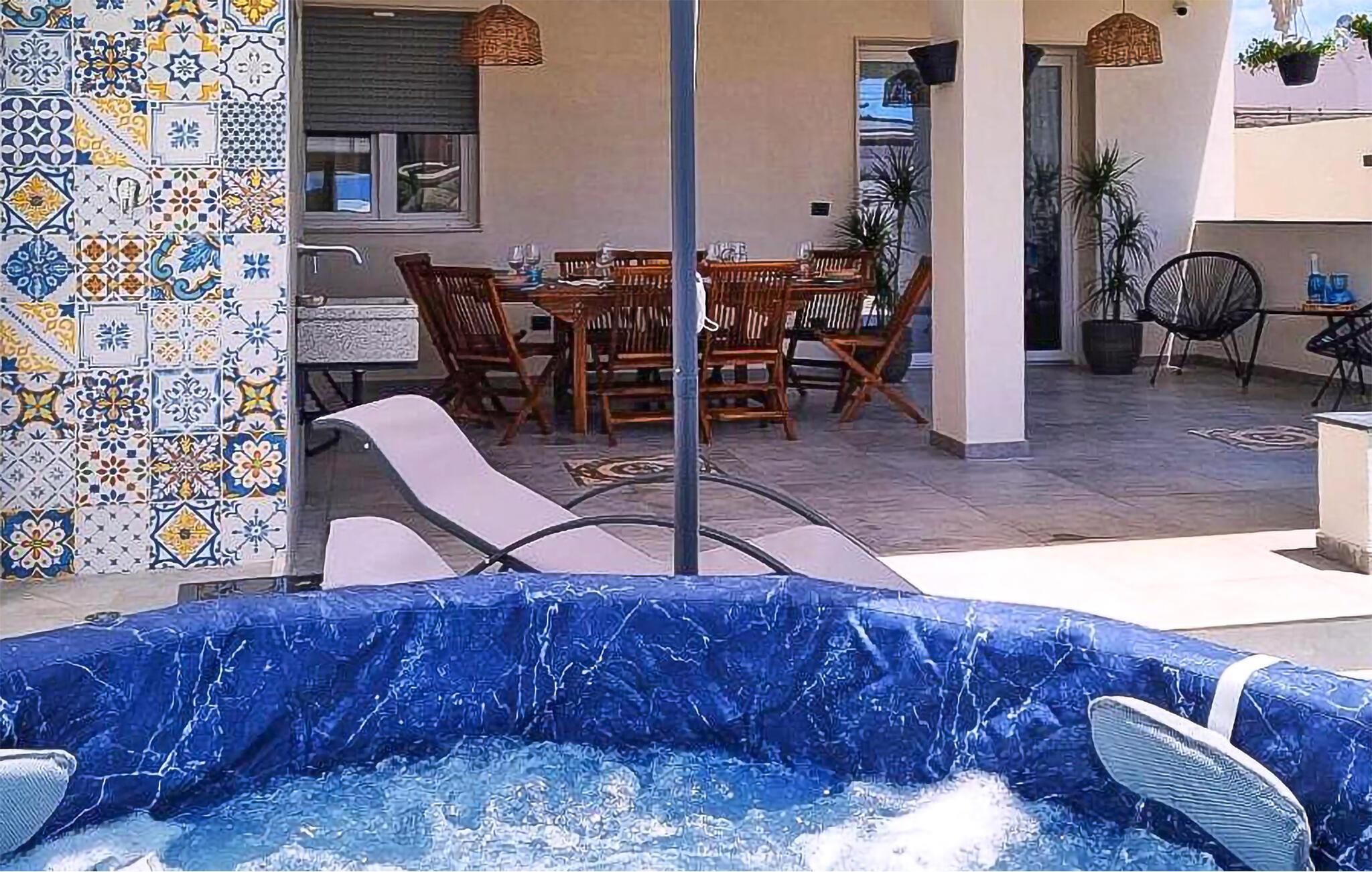 Ihr Ferienhaus in Santa Maria del Focallo lädt Sie ein, die Vorzüge der Insel in vollen Zügen zu genießen. Beginnen Sie Ihren Tag in dem modernen Ferienhaus mit einem leichten Frühstück, entweder in der geräumigen Essküche oder im Freien auf der überdachten Terrasse. Machen Sie es sich anschließend auf dem Sofa im Wohnbereich oder draußen auf den Sonnenliegen bequem. Lesen Sie ein gutes Buch, spielen Sie lustige Gesellschaftsspiele oder genießen Sie einfach die freie Zeit. Für noch mehr Entspannung hüpfen Sie am besten in Ihren Whirlpool. Zünden Sie abends den Grill an und bereiten Sie ein köstliches Abendessen unter freiem Himmel zu.