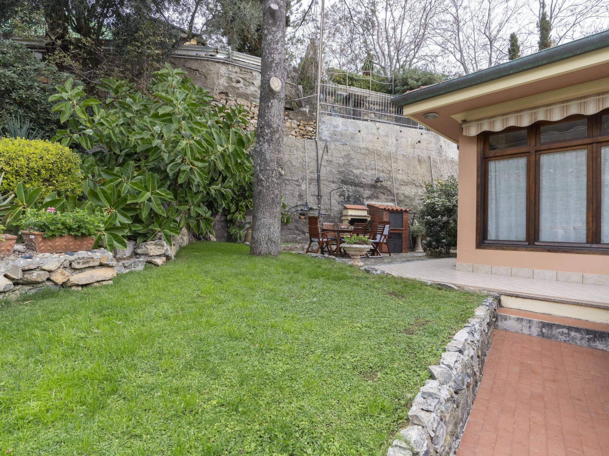 Grosses, komfortables Einfamilienhaus "Irma". Im Ortsteil Aregai, 2.5 km vom Zentrum von Santo Stefano al Mare, am Ortsrand, 3.5 km vom Zentrum von San Lorenzo al Mare, 8 km vom Zentrum von Imperia, alleinstehende, sonnige Lage am Hang, 500 m vom Meer, in einer Sackgasse. Zur Alleinbenutzung: grosser, gepflegter terrassierter Garten, 600 m2 (eingezäunt) mit Rasen und Pflanzen. Aussendusche. Treppenweg bis zum Haus. Parkplatz (für 3 Autos) auf dem Grundstück, Einzelgarage beim Haus. Einkaufsgeschäft 2.5 km, Supermarkt 800 m, Restaurant 2.5 km, Bushaltestelle 100 m, Bahnstation "Imperia" 7 km, Sandstrand "Santo Stefano al Mare" 2.4 km, Kieselstrand 500 m, Hallenbad 7 km. Jacht-Hafen 1.7 km, Golfplatz (18 Loch) 18.5 km, Radweg 100 m. Der Besitzer akzeptiert keine Jugendgruppen. Bitte beachten: Der Besitzer wohnt auf dem gleichen Grundstück. Hauptstrasse 100 m vom Haus.