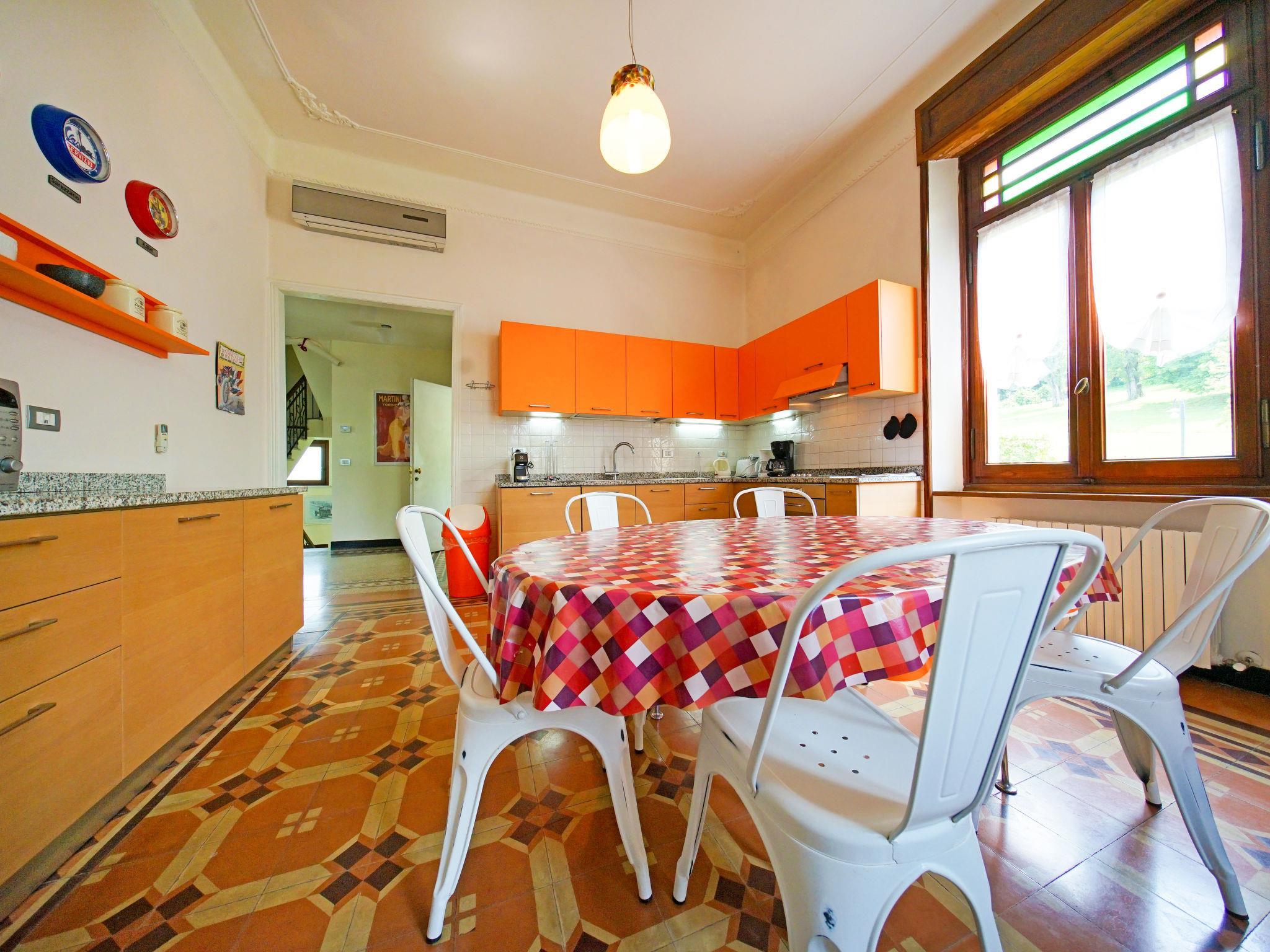 7-Zimmer-Haus 290 m2 auf 3 Stockwerken. Sehr komfortabel und modern eingerichtet: Wohn-/Schlafzimmer mit 1 Doppeldiwanbett (160 cm), offenem Kamin, Esstisch, Sat-TV, Stereoanlage und DVD. Ausgang zum Garten. Küche (Backofen, Geschirrspüler, 4 Flammen, Mikrowelle, Tiefkühler, elektrische Kaffeemaschine) mit Esstisch. Ausgang zum Garten, zur Terrasse. Dusche/WC. Obergeschoss: Wohn-/Esszimmer mit offenem Kamin, Esstisch, Sat-TV, Stereoanlage und DVD. Ausgang zur Terrasse. 1 Zimmer mit 1 franz. Bett (160 cm). Küche (Backofen, Geschirrspüler, 4 Induktionskochplatten, Toaster, Wasserkocher, Mikrowelle, Tiefkühler, elektrische Kaffeemaschine) mit Esstisch. Dusche/WC. 2. Obergeschoss: 1 Zimmer mit 1 franz. Bett (170 cm), Dusche/WC. 1 Zimmer mit 2 Betten. 1 Zimmer mit 1 franz. Bett (135 cm). Bad/WC. Heizung, Klimaanlage. Heizung nur verfügbar von 01.10. bis 30.04. Parkettboden, Natursteinboden. Terrasse überdacht. Terrassenmöbel, Liegestühle. Panoramasicht. Zur Verfügung: Waschmaschine, Wäschetrockner, Bügeleisen, Kinderhochstuhl, Babybett. Internet (WLAN, gratis). Bitte beachten: Nichtraucher-Unterkunft. Maximal 2 Haustiere/Hunde erlaubt. IT006158B4Y24QV34T