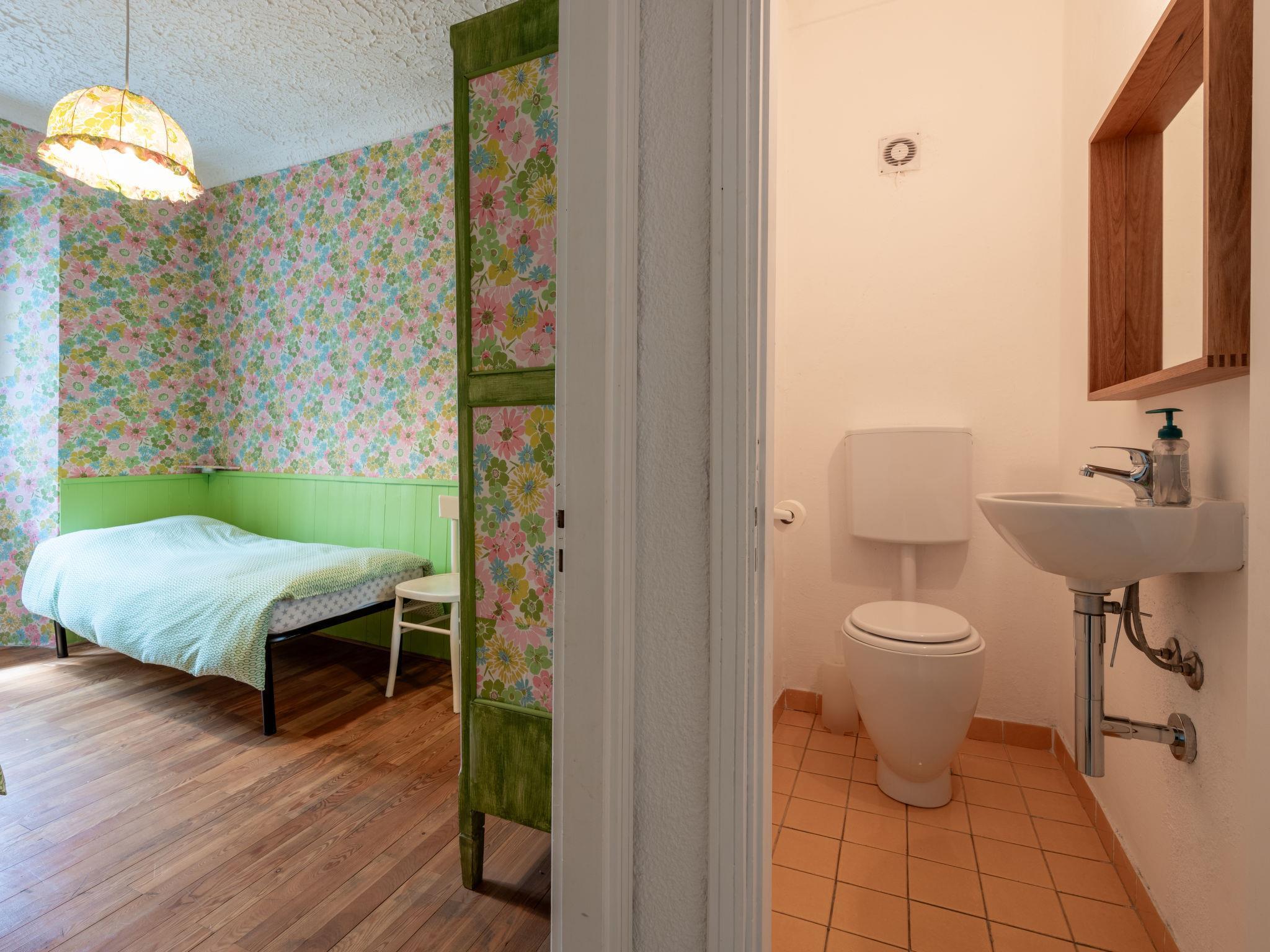 3-Zimmer-Haus 90 m2 auf 2 Stockwerken. Einfach und rustikal eingerichtet: Eingang. Wohn-/Esszimmer mit 1 Doppeldiwanbett, offenem Kamin und TV. Ausgang zum Garten. Küche (4 Kochplatten, Mikrowelle). Obergeschoss: 2 Zimmer, jedes Zimmer mit 2 Betten. Dusche/Bidet/WC, sep. WC. G-Heizung. Heizung nur verfügbar von 01.10. bis 01.05. Holzdielenboden. Garten 30 m2. Terrassenmöbel, Liegestühle (2). Zur Verfügung: Waschmaschine. Internet (WLAN, gratis). Maximal 1 Haustier/Hund erlaubt. IT001259C23PSDJ4BQ