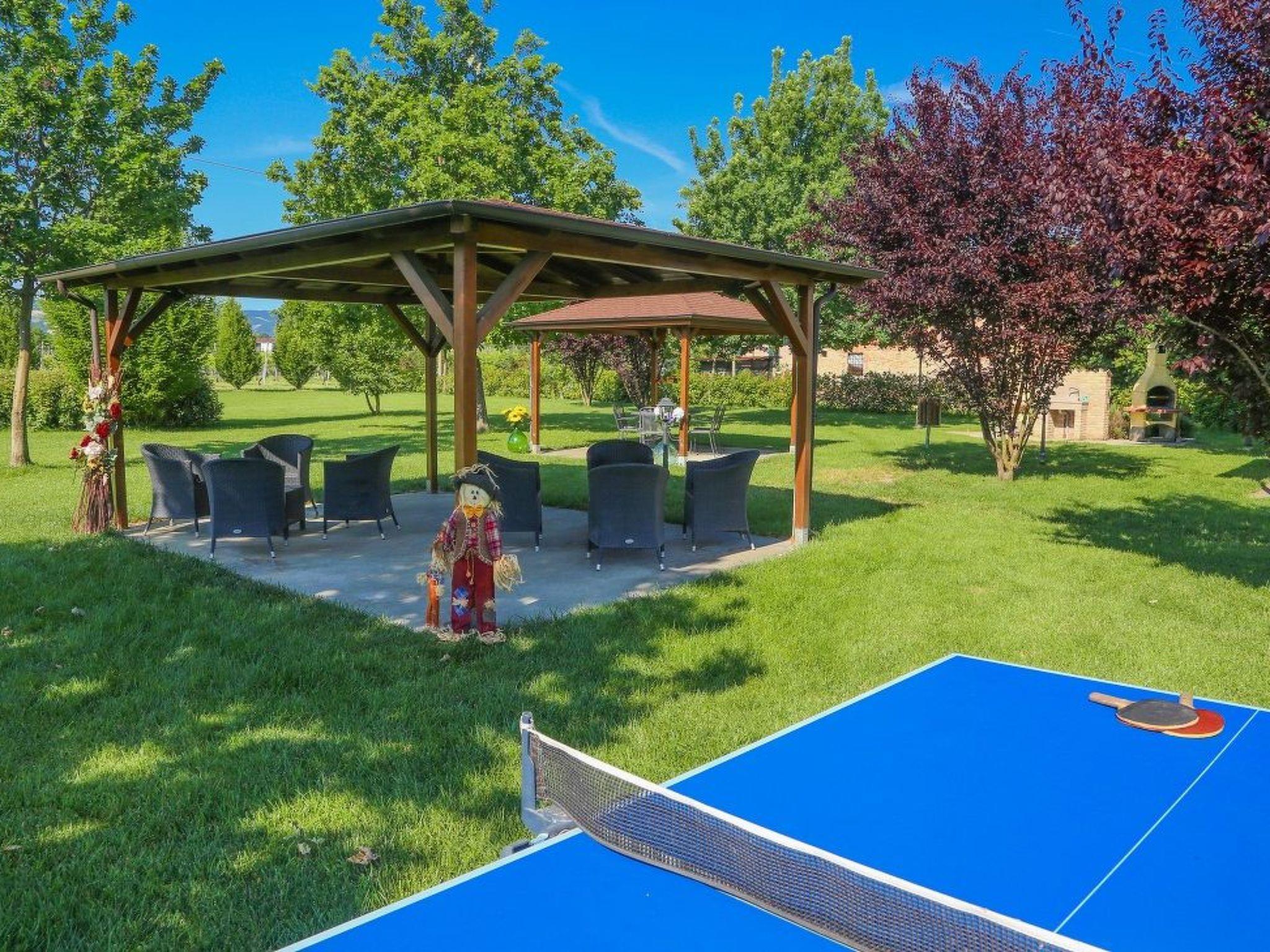 Per quanto riguarda l'außerhalb, das Bauernhaus ist von einem großen Park umgeben, wo Sie Grillplätze, einen Pavillon, sowie eine Tischtennisplatte, Tischfußball und ein Solarium finden werden. Für die Kleinsten gibt es einen Spielplatz. Naturliebhaber und Erholungssuchende können in den Weinbergen oder im Obstgarten spazieren gehen, wo man je nach Jahreszeit Obst direkt von den Bäumen pflücken kann. Außerdem bieten wir einen privaten, videoüberwachten Parkplatz, eine Gemeinschaftswäscherei und eine Garage mit einer kleinen Werkstatt für Radfahrer und Motorradfahrer.