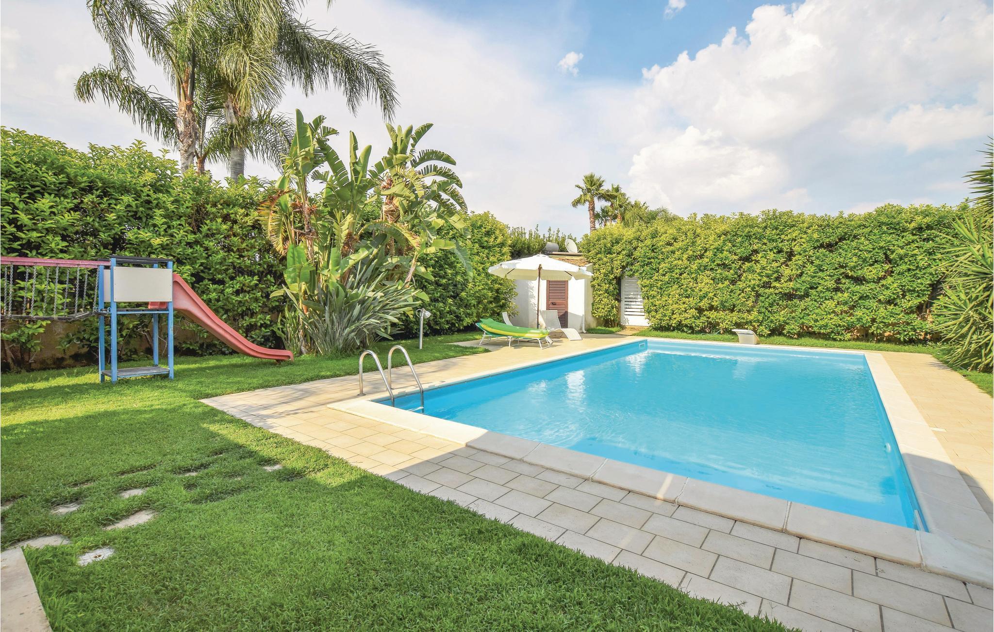 Dieses schöne Ferienhaus mit Swimmingpool befindet sich in einer von Grün umgebenen Wohnanlage zwischen Marina di Ragusa und Donnalucata, im südlichen Teil Siziliens. In der Nähe des Pools befindet sich eine Veranda mit Außenküche und Sitzbereich im Freien, die sich perfekt zum Essen im Freien und zum Entspannen eignet. Für Jung und Alt, stehen Ihnen einen Spielbereich für Kinder und ein Fuß-und Volleyballfeld auf Gras. Im Nebengebäude verfügen Sie über ein Doppelbett und ein Badezimmer. Marina di Ragusa liegt ca 2,5 km entfernt, Donnalucata 1,5 km, die Strände ca. 800 m. Marina di Ragusa bietet lange goldene Sandstrände und ein lebhaftes Nachtleben mit allen Arten von Dienstleistungen und einem Yachthafen. Vergessen Sie auch nicht, dass Sie sich hier in einer strategischen Lage befinden, um die Orte des sizilianischen Barocks, wie Ragusa Ibla, Modica, Scicli und Comiso, die sich in einem Umkreis von etwa 20 km befinden, zu besuchen. Auf Anfrage ist es möglich, eines der beiden Doppelschlafzimmer im Hauptteil des Hauses als Zweibettzimmer umzugestalten.