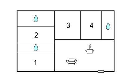 Badezimmer 6m2 (nr. 1) - WC. Warmes und kaltes Wasser. Dusche
