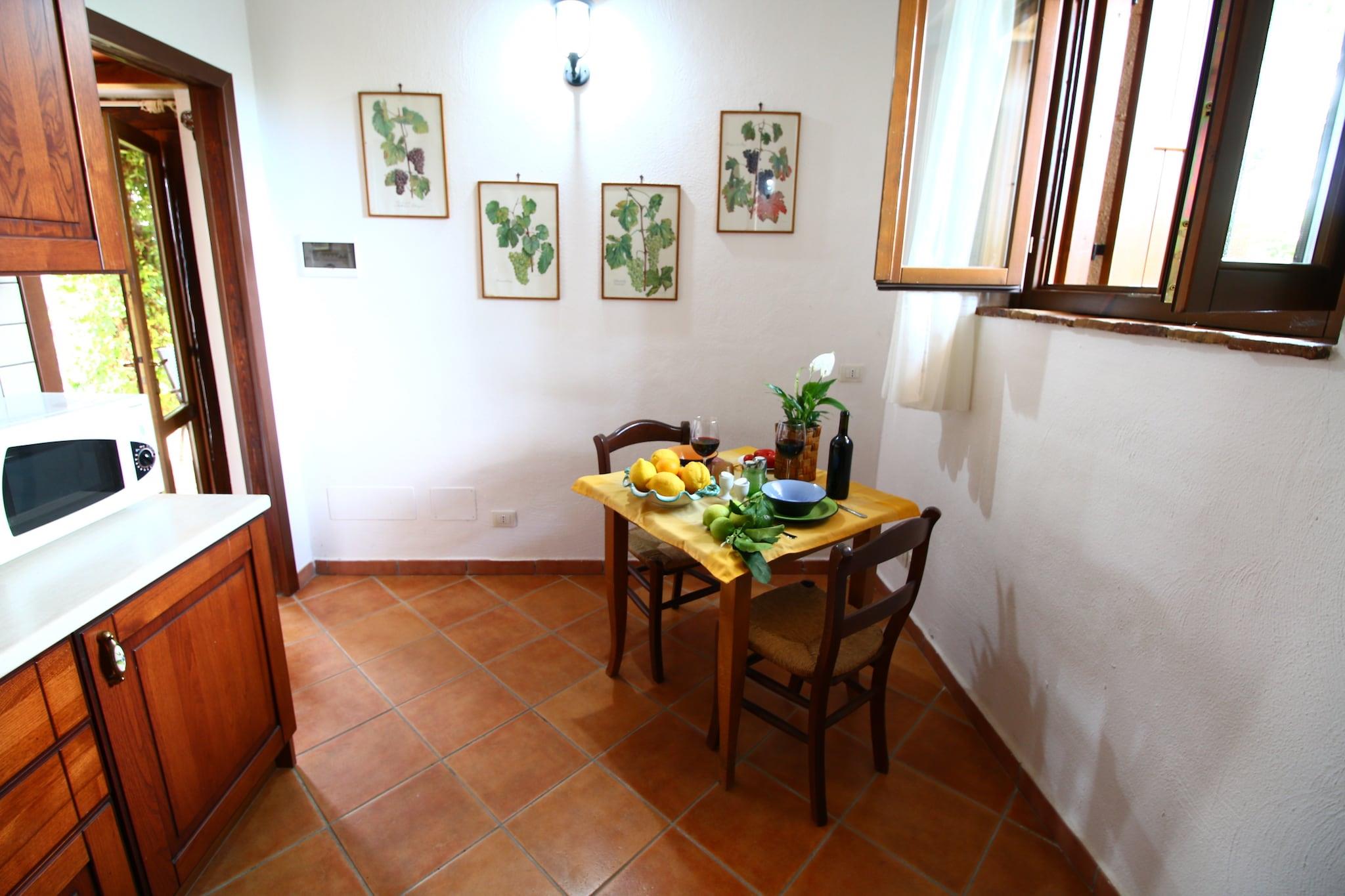 Parterre: (Wohnküche(TV, Esstisch, Kochplatte, Kochherd(2 Kochplatten, elektrisch), Dunstabzugshaube, Kaffeemaschine(cups), Backofen, Mikrowelle, Kühl-/Gefrierkombination, Klimaanlage), Schlafzimmer(Doppelbett, Klimaanlage), Badezimmer(Dusche, Waschbecken, Toilette, Bidet)) Garten(Gemeinschaftliche Nutzung mit anderen Gästen, umzäunt), Liegen, Grill, Parkplatz, Sonnenschirm, Pool(Gemeinschaftliche Nutzung mit anderen Gästen, 12 x 6 m., geöffnet von Mar bis einschließlich Okt), Fahrräder verfügbar(auf Anfrage)