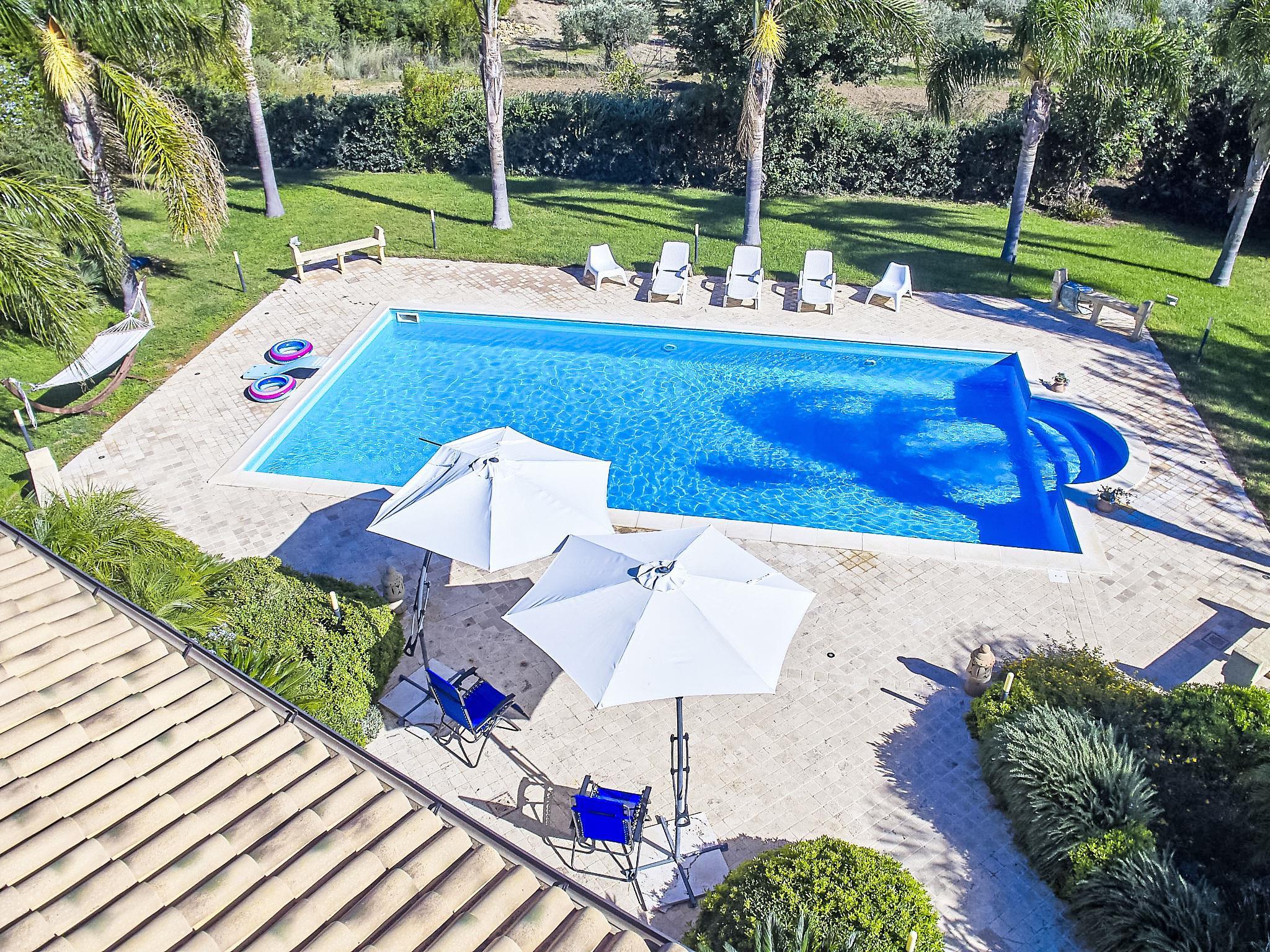 Schöne, komfortable Villa "Bel Villa", auf 2 Stockwerken, umgeben von Bäumen und Feldern. Im Ort, 3 km vom Zentrum von Selinunte, 10 km vom Zentrum von Castelvetrano, 75 km vom Zentrum von Trapani, alleinstehende, ruhige, sonnige Lage, 6 km vom Meer, 7 km vom Strand, im Grünen. Zur Alleinbenutzung: Grundstück 14'000 m2 mit Blumen und Bäumen, Obstgarten, wunderschöner Garten zum Entspannen, Schwimmbad nicht einsehbar (14 x 7 m, 120 - 250 cm tief, saisonale Verfügbarkeit: 01.Apr. - 30.Okt.). Poolhaus mit Kühlschrank, Dusche und WC, Gartenmöbel, Grillhaus. Im Hause: Alarmanlage, Heizung nur verfügbar von 01.Dez. - 31.Mar.. Wohnungsreinigung möglich (extra). Einkaufsservice vor Anreise möglich. Parkplatz auf dem Grundstück. Lebensmittelgeschäft 2 km, Supermarkt 5 km, Restaurant 300 m, Bar 3 km, Bushaltestelle 10 km, Bahnstation "Castelvetrano" 9 km, Sandstrand "Calannino" 7 km. Nahe gelegene Sehenswürdigkeiten: Area Archeologica di Selinunte 1 km, Marsala/Saline/Aliscafi Isole Egadi 48 km, Scala dei Turchi 82 km, Agrigento/Valle dei Templi 91 km, Erice/San Vito lo Capo 100 km, Palermo 100 km. Wandergebiete: Riserva Naturale Orientata Fiume Belice 7.5 km. Bitte beachten: Fahrzeug empfohlen. Die Residenz wird durch elektrische Tore geschlossen. Das Anwesen wird videoüberwacht, die Kameras sind deaktiviert, wenn Gäste vor Ort sind.