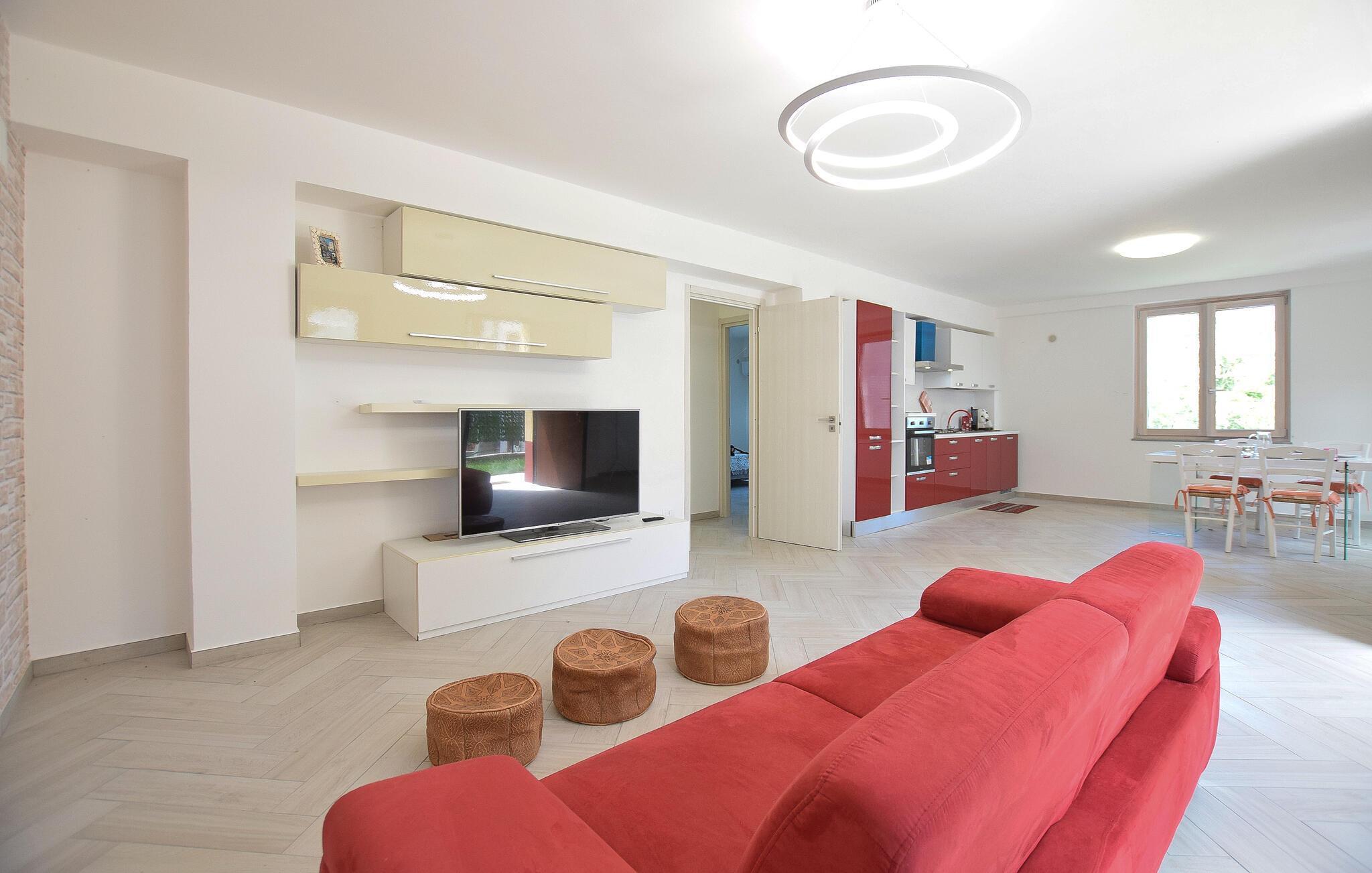 Die geräumige Wohnung ist der ideale Ort, um einen unvergesslichen Urlaub im Hinterland der Küste zu verbringen. Mit ihrer geschmackvollen und modernen Einrichtung sowie hellen Räumen mit schönem Tageslichteinfall bezaubert sie ihre Besucher vom ersten Augenblick an. Lassen Sie sich nach einem herrlichen Tag auf dem bequemen Sofa nieder und entspannen Sie in schönem Ambiente.