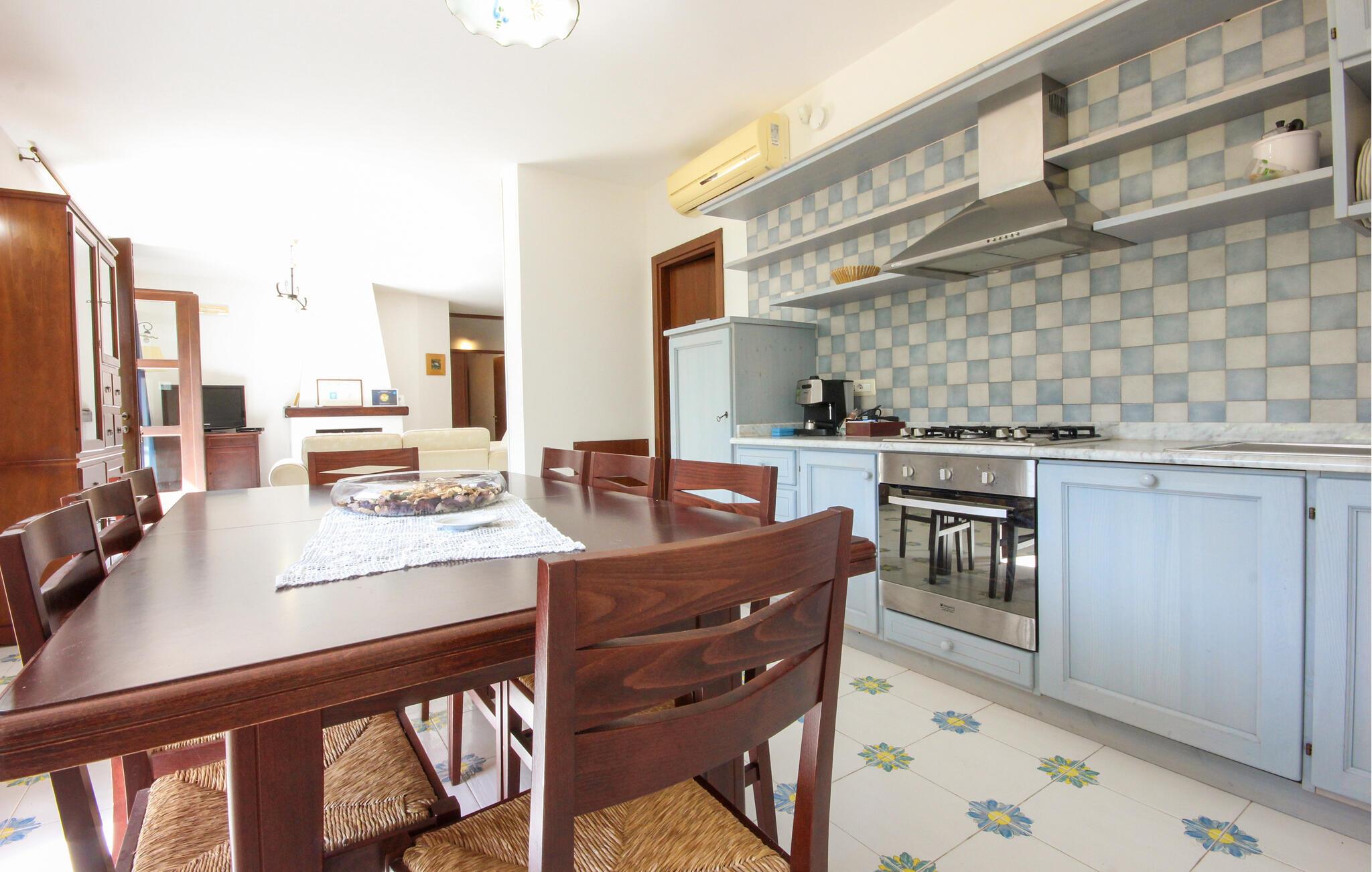 Dieses komfortable und originell eingerichtete Urlaubsdomizil bietet Ihnen viel Platz, um mit Freunden oder einer großen Familie den Alltag hinter sich zu lassen. Freuen Sie sich auf geselliges Kochen in der geräumigen Küche, servieren Sie leckere Pastagerichte und plaudern Sie im gemütlichen Wohnzimmer über vergangene Zeiten.
