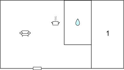 Badezimmer (nr. 1) - WC. Warmes und kaltes Wasser. Dusche
