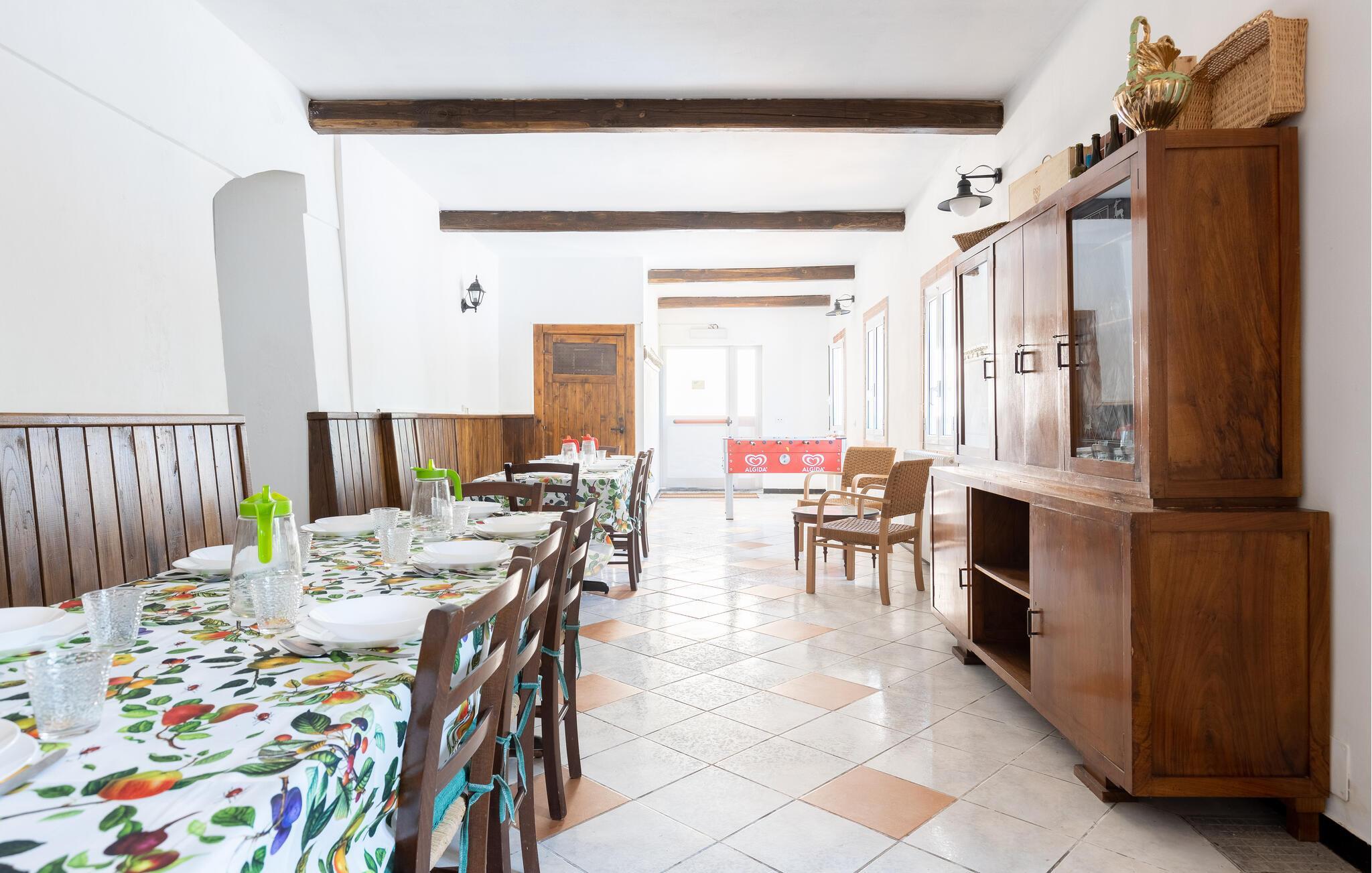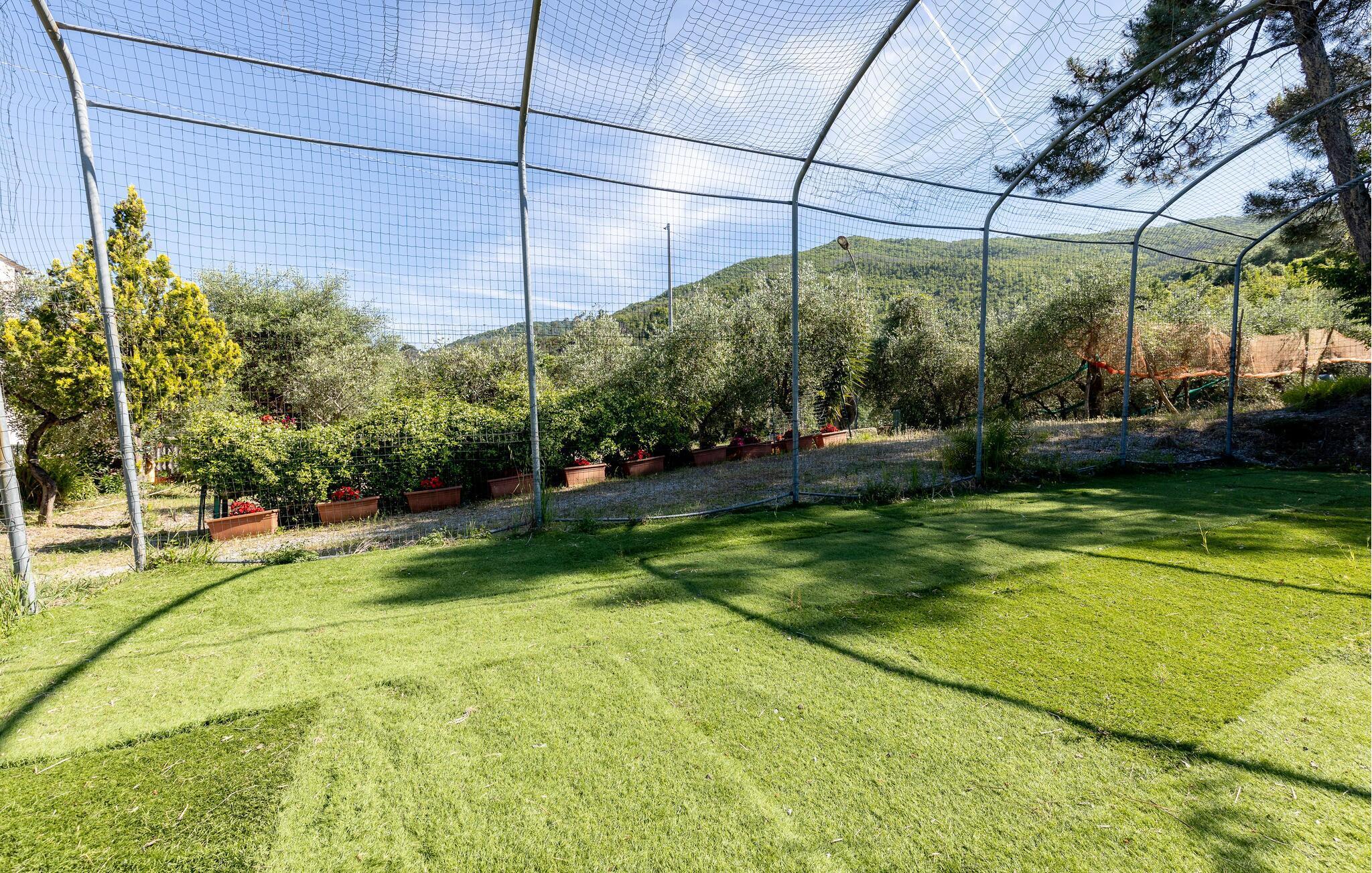 Ihr charmantes Ferienhaus, eingebettet in die sanfte Landschaft außerhalb von Sestri Levante, bietet den idealen Rückzugsort für mehrere Familien oder eine große Gruppe von Freunden. Es verbindet Komfort mit einem Hauch von italienischem Landhausstil und garantiert Erholung und Geselligkeit. Es erwarten Sie hier helle, einladende Räume, die Platz für gemeinsame Aktivitäten bieten. Machen Sie es sich im gemütlichen Wohnzimmer bequem, das mit einer eleganten Sofagarnitur und klassischen Holzmöbeln ausgestattet ist. Für sportliche Aktivitäten steht ein gut ausgestatteter Fitnessraum zur Verfügung, und auch Tischfußball sorgt für Unterhaltung. Dank des Aufzugs im Haus kommen Sie leicht ins Obergeschoss.