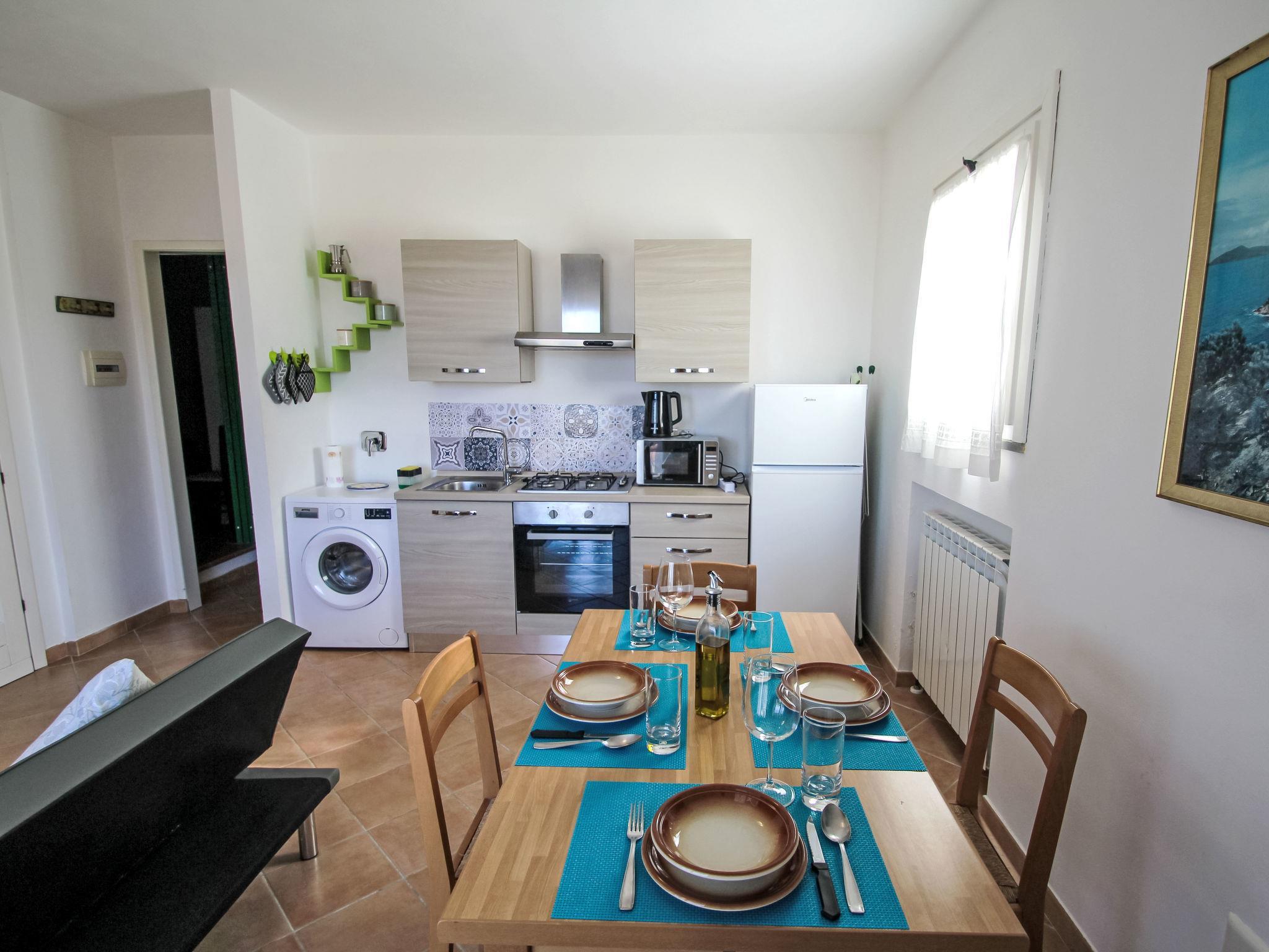 "Le Fiabe", 3-Zimmer-Wohnung 55 m2, im Erdgeschoss. Komfortabel und modern eingerichtet: Wohn-/Esszimmer mit TV und Klimaanlage. Ausgang zum Gartensitzplatz. 1 Doppelzimmer mit Ventilator. 1 Zimmer mit 2 Betten und Ventilator. Kochnische (4 Kochplatten, Backofen, Wasserkocher, Mikrowelle, Tiefkühler, elektrische Kaffeemaschine). Dusche/Bidet/WC. G-Heizung. Heizung nur verfügbar von 01.11. bis 01.04. Gartensitzplatz 25 m2. Terrassenmöbel, Liegestühle (2). Zur Verfügung: Waschmaschine, Safe, Kinderhochstuhl, Haartrockner. Internet (Wireless LAN, gratis). Bitte beachten: eigener Eingang, Feuerlöscher. IT010059C2S6DL5V63