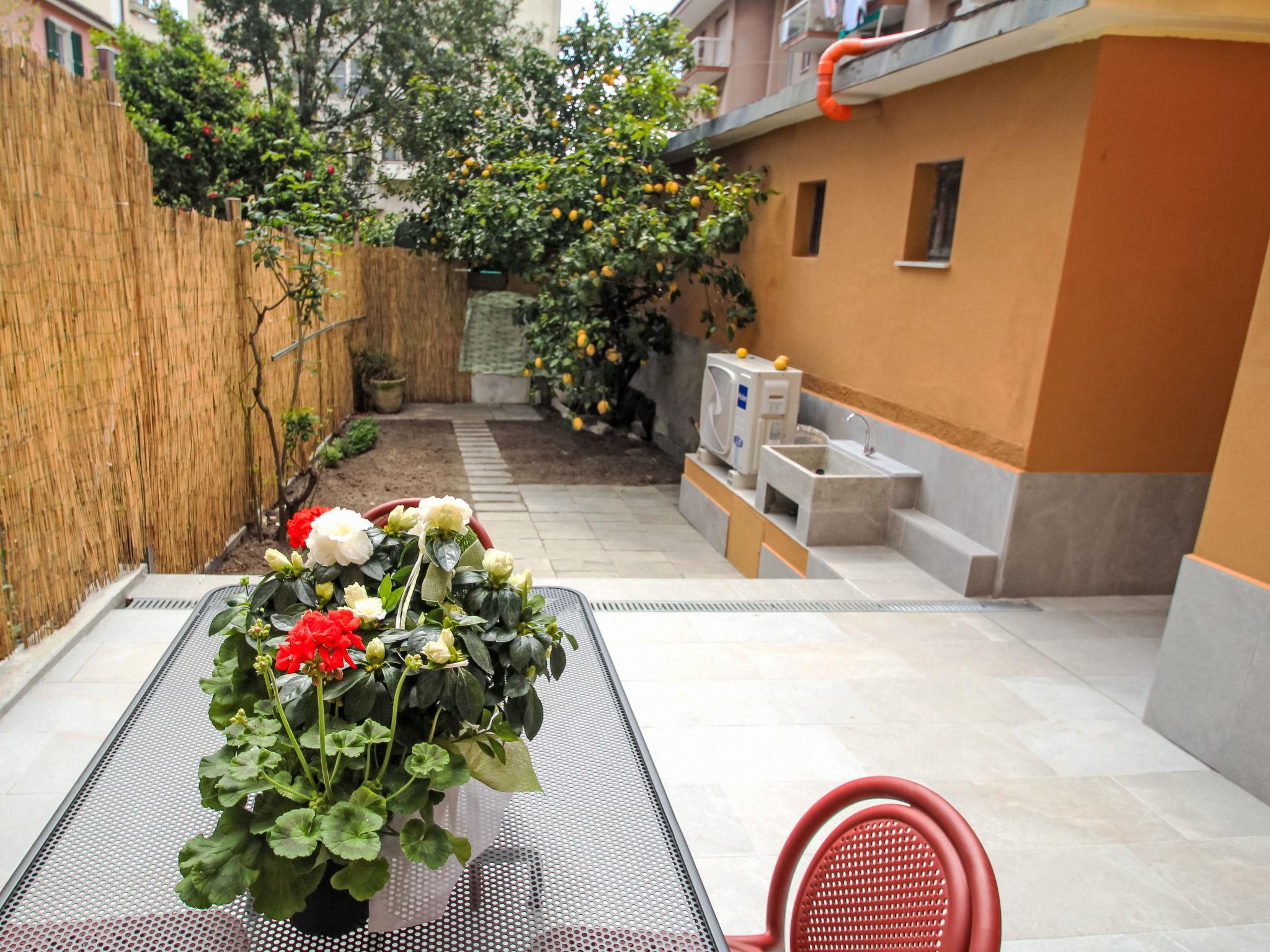 2-Zimmer-Wohnung 42 m2, im Erdgeschoss. Vollständig renoviert im Jahre 2025, zweckmässig und modern eingerichtet: 1 Doppelzimmer mit Sat-TV. Durchgangszimmer mit 1 Bett, 1 Ausziehbett und Sat-TV. Küche im Eingang (Backofen, Geschirrspüler, 4 Induktionskochplatten, elektrische Kaffeemaschine) mit Esstisch. Ausgang zum Gartensitzplatz. Dusche/Bidet/WC. Klimaanlage, Warmluftheizung. Gartensitzplatz, kleiner Garten. Terrassenmöbel. Zur Verfügung: Waschmaschine, Bügeleisen, Haartrockner. Bitte beachten: Wohnung auf Hofseite. Eigener Eingang, Feuerlöscher. IT010059C27KIDYBXC
