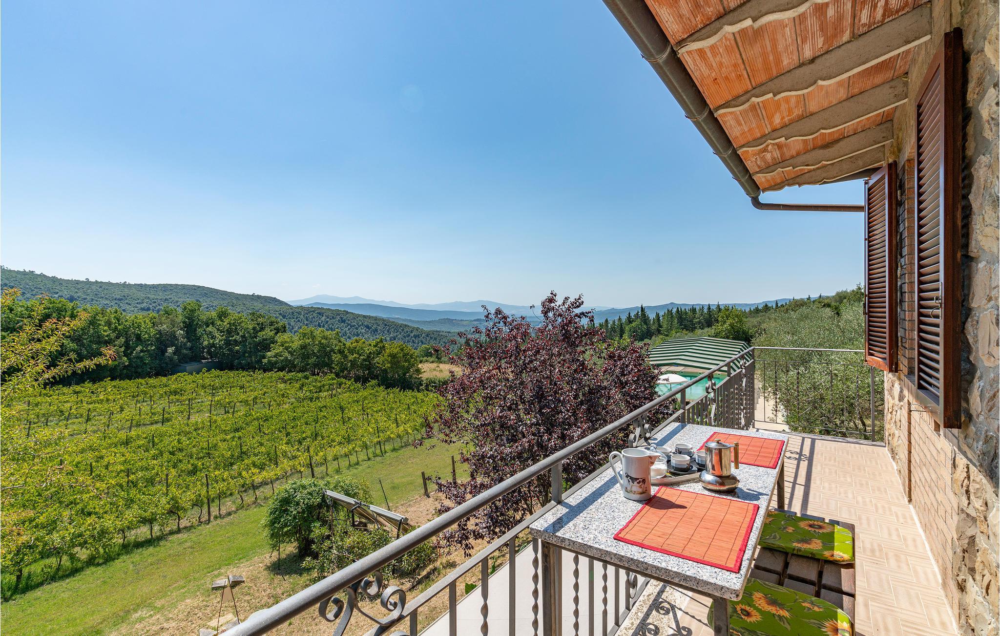 Das Anwesen umfasst das Haupthaus, den überdachten und nicht überdachten Außenpool sowie einen großen Außenbereich mit Weinbergen und Wäldern. Die Lage dieses Ferienhauses ist gut, um Siena, den Golfclub und das Reitzentrum zu erreichen oder einen Tag am Strand zu verbringen.