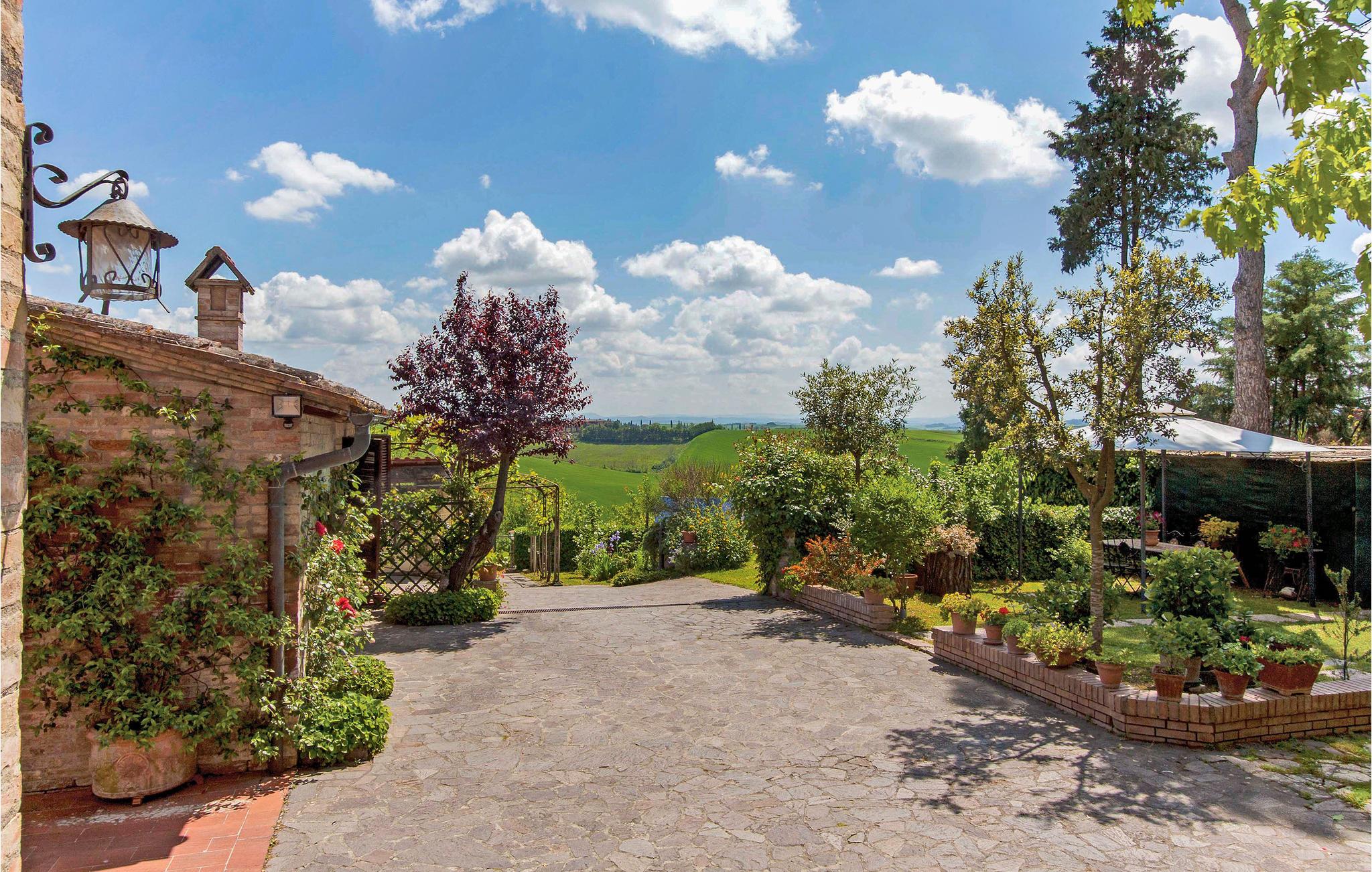 Ferienwohnung 7 km von Siena entfernt, eine wunderbare mittelalterliche Stadt, die aufgrund des Palio, eines mittelalterlichen Pferderennens, das jedes Jahr Anfang Juli und Mitte August in der wundervollen „Piazza del Campo“ stattfindet, in aller Welt berühmt ist. Entdecken Sie in seiner Altstadt die imposanten Basiliken von San Domenico und San Francesco, die ein Must für alle Pilger darstellen. Versäumen Sie auf keinen Fall eine Besichtigung des gotischen Doms und des „Facciatone“ direkt nebenan, der Fassade des zweiten Domprojekts, dessen Bauarbeiten während der Pest im Jahr 1348 unterbrochen und seitdem nie wieder aufgenommen wurden. Von hier aus genießen Sie einen wundervollen Panoramablick über die Stadt und das umliegende Land. Die Wohnung befindet sich im Erdgeschoss eines typisch toskanischen Hauses und besteht aus Wohnzimmer mit Schlafsofa, Kochecke, Doppelzimmer und Duschbad. Überdachte Terrasse mit Tisch und Stühlen, einem großen Grill und Holzofen. Im anliegenden Garten befindet sich darüber hinaus eine ausgestattete Laube, von wo aus man einen wundervollen Blick über die Hügellandschaft um Siena genießt. Das Stadtzentrum von Siena ist mit öffentlichen Verkehrsmitteln erreichbar.