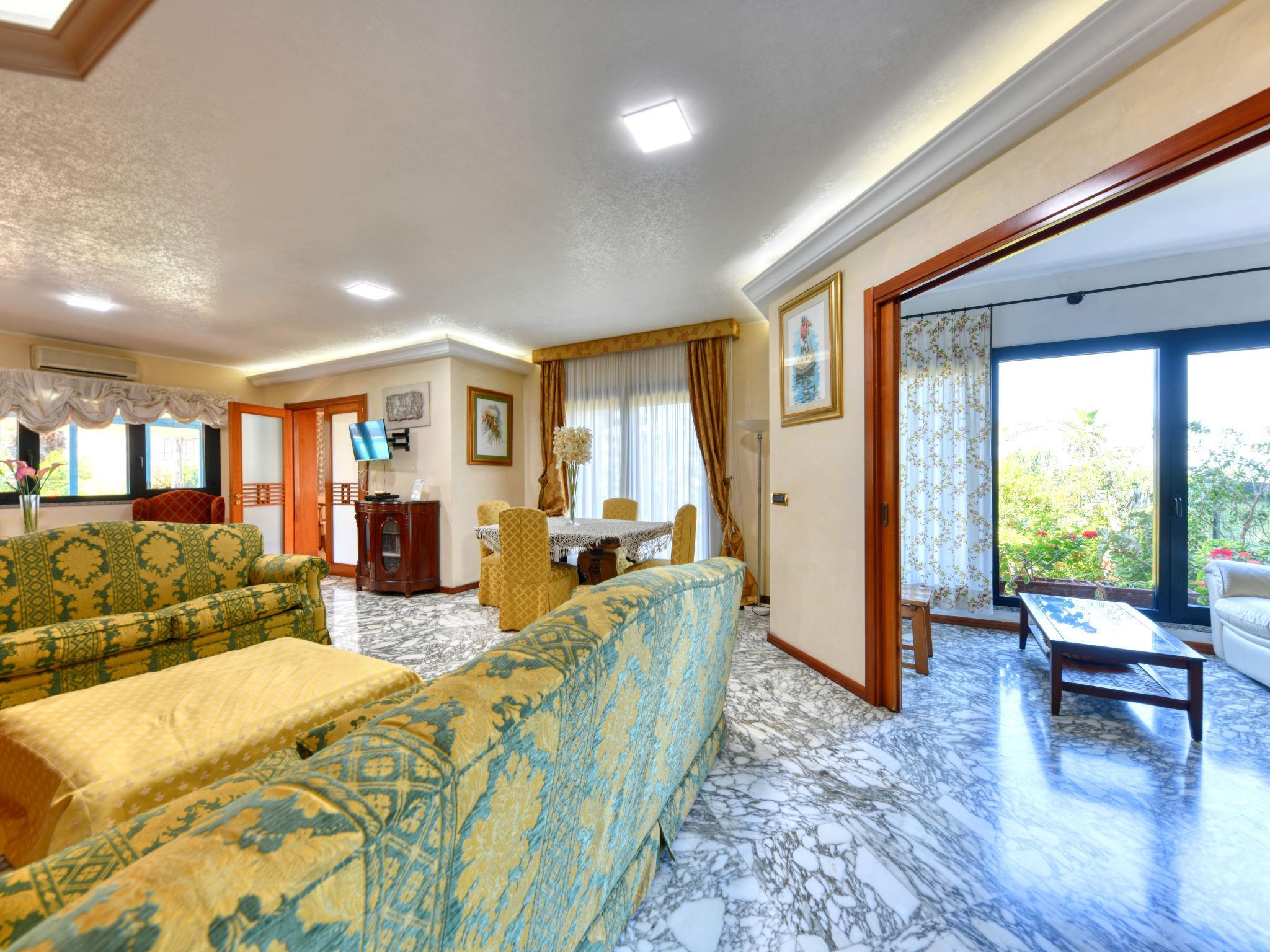7-Zimmer-Villa 220 m2 auf 2 Stockwerken, im Erdgeschoss. Komfortabel und stilvoll eingerichtet: Eingang. Grosses Wohn-/Esszimmer mit offenem Kamin, TV, Klimaanlage und Warmluftheizung. Ausgang zur Terrasse. Büro mit Klimaanlage und Warmluftheizung. 1 Doppelzimmer mit 1 Doppelbett (140 cm), Klimaanlage und Warmluftheizung. Grosse Küche (Mini-Backofen, Backofen, Geschirrspüler, Gasherd, 4 Flammen, Toaster, Mikrowelle) mit Esstisch, Schwedenofen. Ausgang zum Garten. Dusche/Bidet/WC. Heizung, Klimaanlage, Warmluftheizung. Heizung nur verfügbar von 01.12. bis 31.03. Obergeschoss: 1 Doppelzimmer mit Dusche/Bidet/WC, Klimaanlage und Warmluftheizung. Ausgang zur Terrasse. 1 Doppelzimmer mit 1 Doppelbett (140 cm), Dusche/Bidet/WC, Klimaanlage und Warmluftheizung. Ausgang zur Terrasse. 1 Doppelzimmer mit Bad/Dusche/Bidet/WC, Klimaanlage und Warmluftheizung. Ausgang zur Terrasse. Parkettboden. Kleine Terrasse 6 m2, kleine Terrasse 8 m2, Laube 16 m2. Terrassenmöbel, Balkonmöbel, Gartengrill, Liegestühle, Wintergarten. Schöne Sicht auf das Meer, den See, das Schwimmbad und den Garten. Zur Verfügung: Waschmaschine, Bügeleisen, Kinderhochstuhl, Babybett bis 2 Jahre, Haartrockner, Holz (extra). Internet (WLAN, gratis). Parkplatz (3 Autos). Bitte beachten: Rauchmelder, Feuerlöscher. Keine interne Verbindung zwischen den separaten Wohneinheiten. Der ausgeschriebene Pool ist zur alleinigen Nutzung. IT089017C2W5ZGNSL3