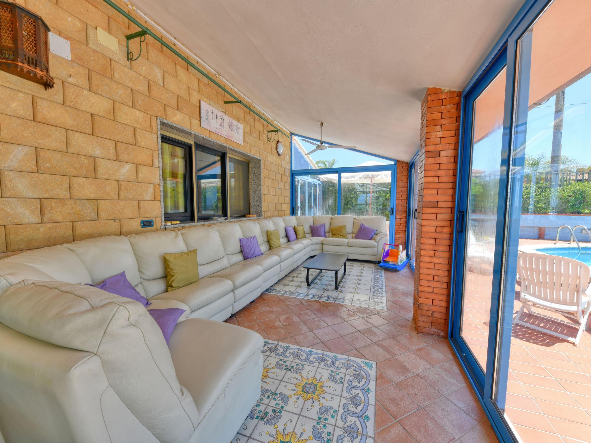 Grosse Villa "Vella", umgeben von Wiesen. Im Ort Terrauzza, 10 km vom Zentrum von Siracusa, ruhige, sonnige Lage, 700 m vom Meer, 700 m vom Strand. Zur Alleinbenutzung: Grundstück 3'000 m2 (eingezäunt), grosser, gepflegter Garten 2'100 m2 mit Rasen und Bäumen, Schwimmbad (80 m2, 120 - 150 cm tief, saisonale Verfügbarkeit: 01.Apr. - 31.Okt.). Aussendusche, Grill. Im Hause: Fitnessraum. Parkplatz. Bushaltestelle 200 m, Bahnstation "Siracusa" 9 km, Sandstrand "Arenella" 5.5 km, Felsstrand "Terrauzza" 700 m. Nahe gelegene Sehenswürdigkeiten: Avola 23 km, Noto 32 km, Marzamemi 50 km, Ispica 53 km, Isola delle Correnti Punto Sud Sicilia 58 km, Modica 68 km. Bekannte Skigebiete sind gut erreichbar: Punto Partenze Sud Escursione Etna 105 m. Bekannte Seen in der Umgebung sind gut erreichbar: Riserva Naturale Laghetti del Cassibile 34 km. Wandergebiete: Riserva Naturale Faunistica di Vendicari 40 km. Bitte beachten: Fahrzeug empfohlen. Der Besitzer wohnt im selben Haus.