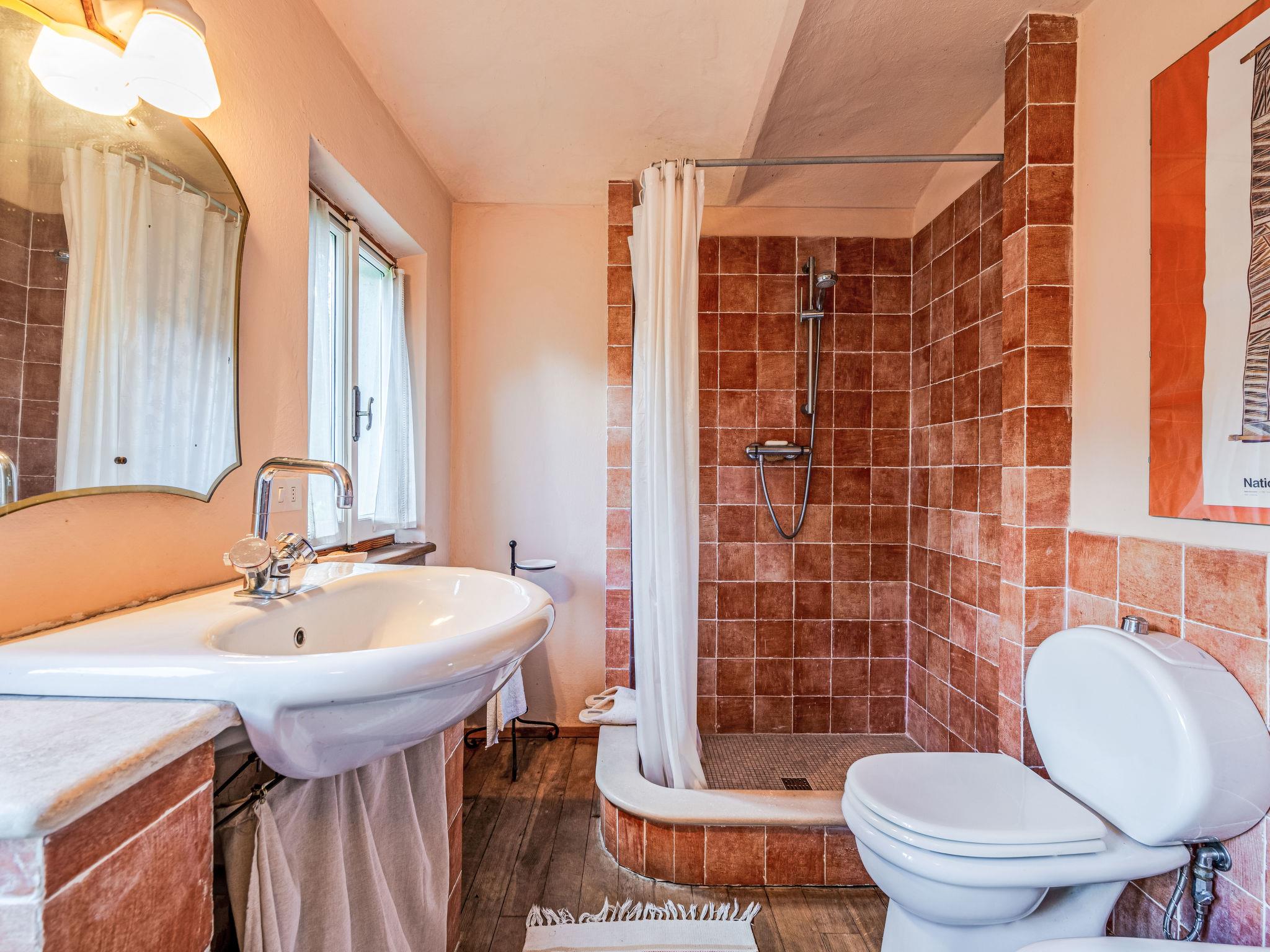 6-Zimmer-Landhaus 230 m2 auf 3 Stockwerken. Rustikal und gemütlich eingerichtet: Wohnzimmer mit offenem Kamin (nur Deko). Wohn-/Schlafzimmer mit 1 Bett und TV. Ausgang zum Garten. Grosse Wohnküche (Backofen, Geschirrspüler, 5 Flammen, Wasserkocher) mit offenem Kamin (nur Deko), Esstisch. Ausgang zum Garten. Dusche/WC. Obergeschoss: 1 Doppelzimmer mit 1 franz. Bett (120 cm, Länge 190 cm). Ausgang zum Balkon. Durchgangszimmer mit 1 Bett. 1 Doppelzimmer mit 1 Doppelbett. Ausgang zum Balkon. Dusche/Bidet/WC. G-Heizung. Heizung nur verfügbar von 15.10. bis 15.04. 2. Obergeschoss: abgeschrägte, offene Galerie mit 1 Bett. Parkettboden, Natursteinboden. Das Wohnzimmer ist eine Bauernstube. Fernsicht auf die Landschaft. Zur Verfügung: Waschmaschine. Bitte beachten: Rauchmelder, Feuerlöscher. IT005107C2VKC8ID4E