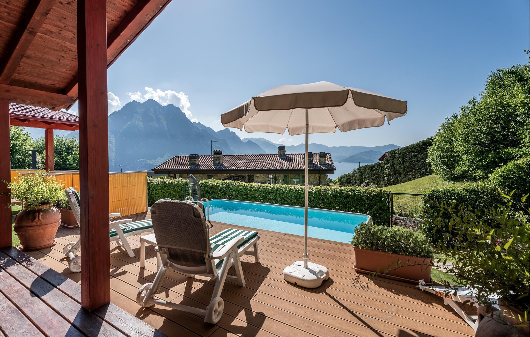 Unabhängiges Ferienhaus mit privatem Pool und Panoramablick auf den Iseosee. Die Unterkunft befindet sich in Riva di Solto, einem charmanten Dorf am Westufer des Iseosees. Das Haus erstreckt sich über eine Etage und besteht aus einer offenen Wohnküche mit Schlafsofa, einem Schlafzimmer mit Doppelbett, einem Schlafzimmer mit zwei Einzelbetten und einem Badezimmer mit Dusche. Das Wohnzimmer führt zur Terrasse mit Pool und mit Möbeln und Liegestühlen, ideal für angenehme, entspannende Momente. Genießen Sie den wunderschönen Panoramablick auf die reizvolle Corna Trentapassi, die zu Fuß begehbar ist, und auf den See mit dem faszinierenden Mont'Isola in der Mitte. Für Bergliebhaber ist der berühmte Monte Campione (25 km) mit seinen 2000 m hohen Gipfeln, 30 km Skipisten und 11 Skiliften in der Nähe. Verpassen Sie nicht das berühmte Boario Terme (26 km), die Städte Lovere (10 km) und Sarnico (18 km) am Ufer des Iseosees. Die Gegend bietet zahlreiche Freizeitmöglichkeiten wie Trekking, Nordic Walking, Rudern, Segeln und schöne Ausflüge in die Wälder. In der Nähe liegt auch die berühmte Franciacorta mit ihren erlesenen Weinen.