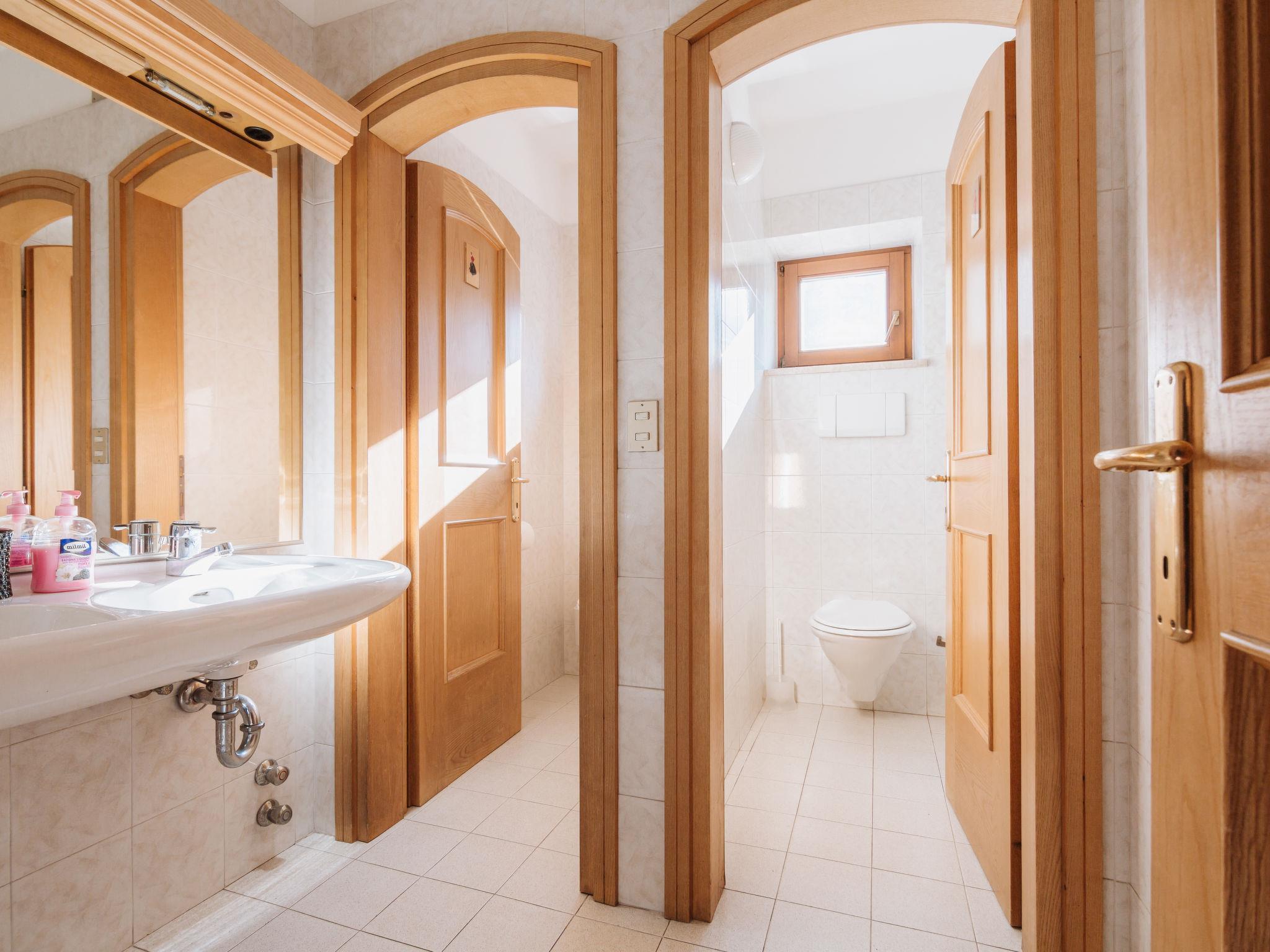 11-Zimmer-Wohnung 210 m2 auf 2 Stockwerken. Objekt geeignet für 19 Erwachsene + 4 Kinder. Hell, gemütlich und mit viel Holz eingerichtet: Obergeschoss: 1 Zimmer mit 1 x 2 Etagenbetten (80 cm), 1 Doppelbett und Dusche/WC. Ausgang zum Balkon. 1 Doppelzimmer mit Dusche/WC. Ausgang zum Balkon. 1 Zimmer mit 1 Bett (80 cm), 1 Doppelbett und Dusche/WC. Ausgang zum Balkon. 2 Zimmer, jedes Zimmer mit 2 Betten (80 cm), Dusche/WC. 1 Zimmer mit 1 Bett (80 cm), Dusche/WC. Esszimmer mit Esstisch, TV und Kachelofen. Ausgang zum Balkon. Kleine, offene Küche (Backofen, Geschirrspüler, 4 Glaskeramikplatten, Mikrowelle, Tiefkühler, elektrische Kaffeemaschine). Ausgang zum Balkon. 2. Obergeschoss: 1 abgeschrägtes Doppelzimmer mit Dusche/WC. Ausgang zum Balkon. 1 abgeschrägtes Zimmer mit 1 x 2 Etagenbetten (80 cm), 1 Doppelbett und Dusche/WC. Ausgang zum Balkon. 1 abgeschrägtes Zimmer mit 2 Betten (80 cm), Dusche/WC. 1 abgeschrägtes Zimmer mit 1 Bett (140 cm), Dusche/WC. Dusche/WC. G-Heizung. 4 Balkone. Balkonmöbel. Schöne Sicht auf die Berge. Zur Verfügung: Waschmaschine, Wäschetrockner, Safe, Babybett. Internet (WLAN). Bitte beachten: Nichtraucher-Unterkunft. IT022176A1XVSIWM56