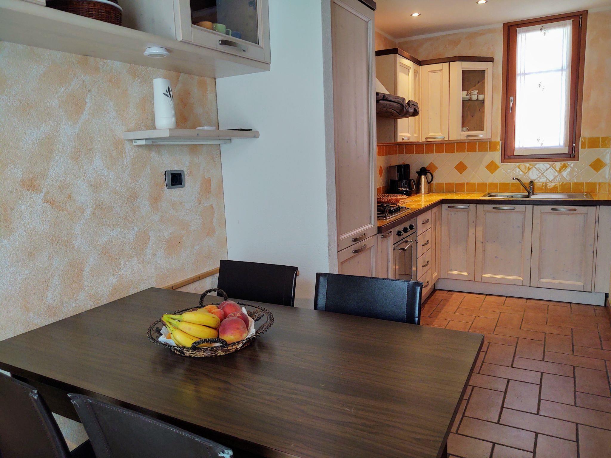 "Leonardo", 3-Zimmer-Haus 80 m2 auf 3 Stockwerken. Objekt geeignet für 4 Erwachsene + 1 Kind. Komfortabel eingerichtet: Wohn-/Esszimmer mit Esstisch und Sat-TV. Ausgang zur Terrasse. Offene Küche (Backofen, Geschirrspüler, 4 Flammen, Tiefkühler, elektrische Kaffeemaschine). Obergeschoss: 1 Zimmer mit begehbarem Kleiderschrank mit 1 Doppelbett. Ausgang zum Balkon. Dusche/WC. G-Heizung. 2. Obergeschoss: 1 abgeschrägtes, offenes Zimmer mit 1 Bett und 1 Doppelbett. Parkettboden. 2 Balkone, grosse Terrasse 25 m2, kleine Terrasse. Terrassenmöbel, Gartengrill (mobil), Liegestühle (2). Zur Verfügung: Waschmaschine, Kinderhochstuhl, Babybett. Internet (Wireless LAN, gratis). IT013216C2M9TI4TFA