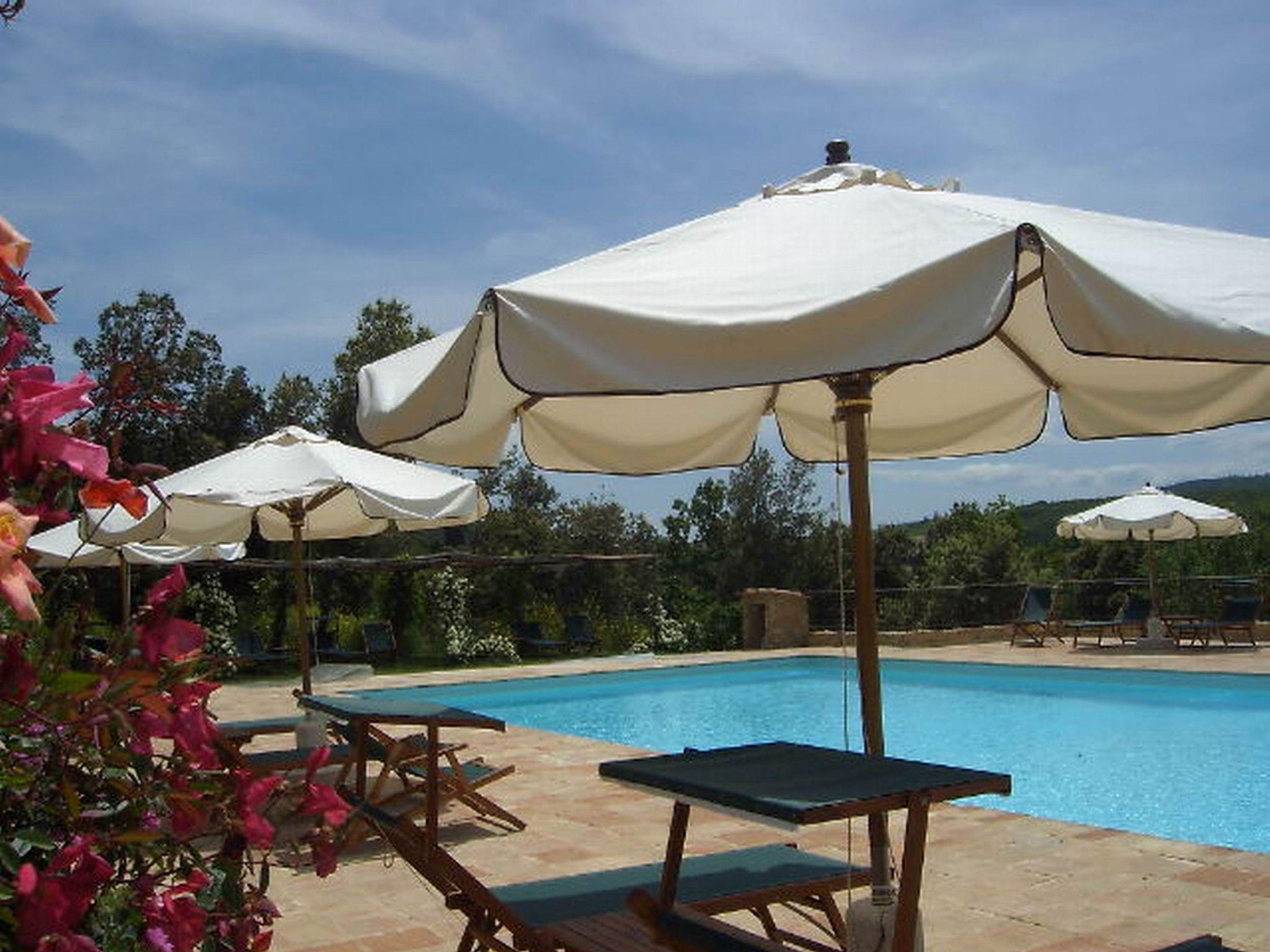 Auch die Außenanlagen wurden so gestaltet, dass sie den Gästen maximalen Komfort bieten: ein großes Schwimmbad (16x8, geöffnet von Mai bis Oktober, 1 bis 1,50 m tief), umgeben von einer gefliesten Sonnenterrasse mit Terrakottaböden, ausgestattet mit Sonnenschirmen und Liegestühlen; der Boccia-Platz, der Grillplatz und der überdachte Parkplatz wurden geschickt an die ländliche Umgebung angepasst. Gemeinsame Waschmaschine vorhanden.