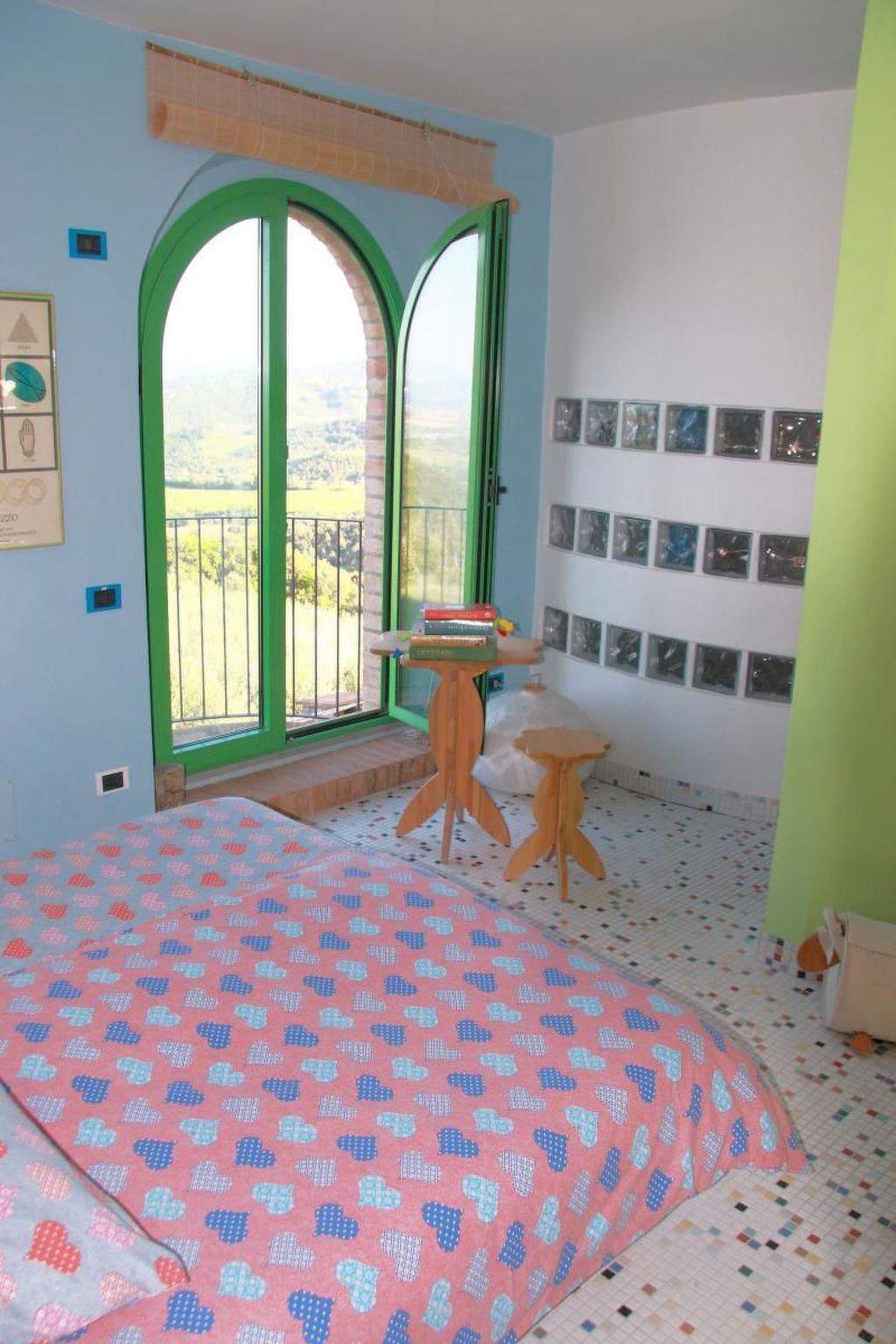 Die Wohnung bietet Platz für maximal vier Personen. Auf der ersten Wohnungsetage ist die Küche mit Tisch und Stühlen untergebracht, in einem anderen Teil des Wohn- und Schlafbereichs steht ein Doppelbett (Maße: 1,6 m mal 1,9 m). In den zweiten Schlafbereich unter dem Dach gelangt man über eine Leitertreppe, wo sich das zweite, gleichgroße Doppelbett befindet. Die unteren und oberen Etagen in der Wohnung sind nicht durch eine Wand voneinander getrennt. Die Wohnung hat außerdem einen kleinen Balkon mit Blick aufs Tal.