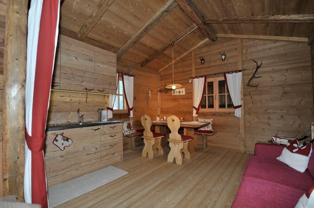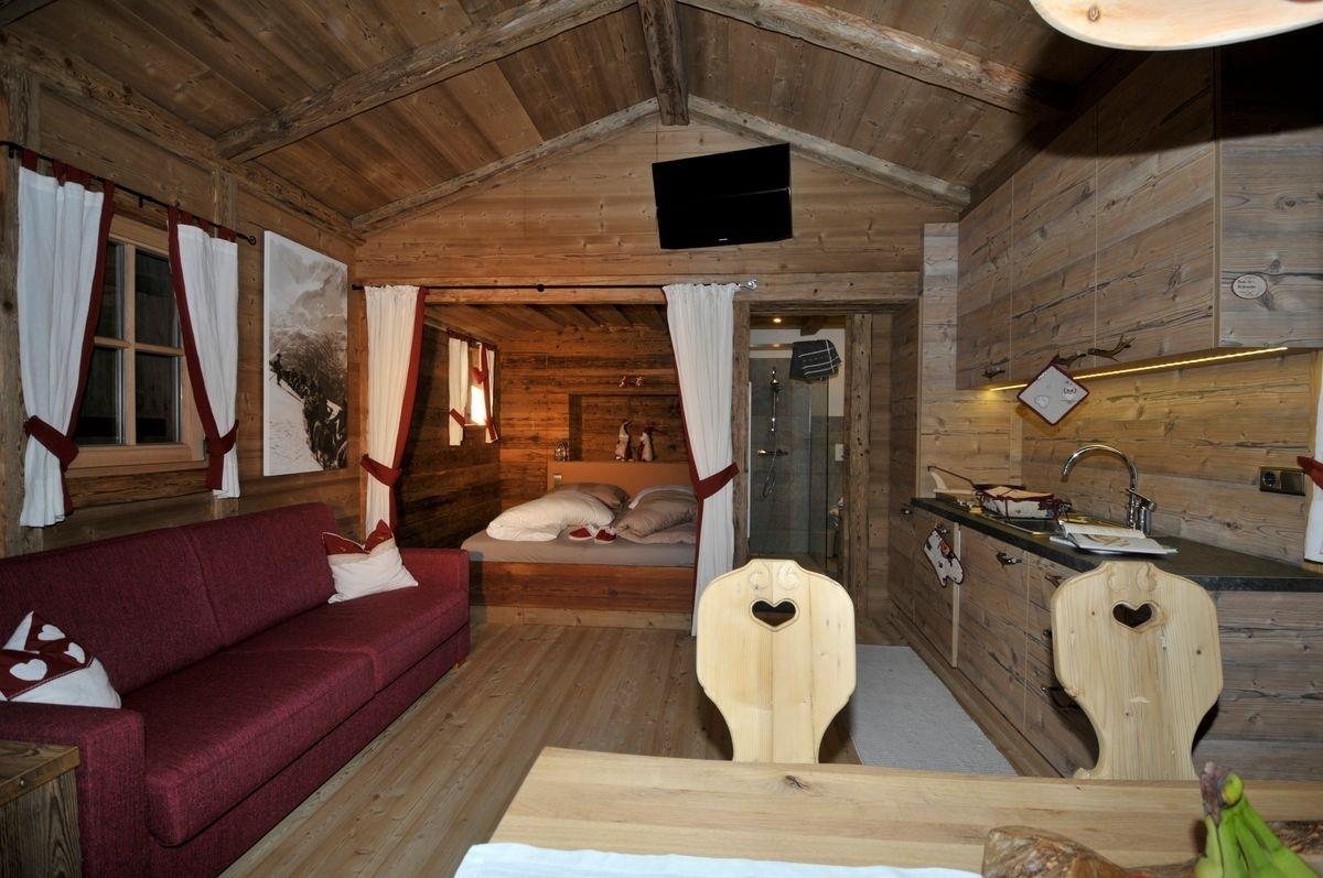 Diese gemütliche Berghütte in Südtirol bietet auf 26 m² Platz für bis zu 4 Personen und vereint traditionellen Charme mit moderner Ausstattung – ideal für Paare oder kleine Familien. Der offene Wohnraum mit Doppelbett und ausziehbarem Schlafsofa schafft eine behagliche Atmosphäre, während die voll ausgestattete Küchenzeile alles bietet, was du für deinen Hüttenurlaub brauchst.