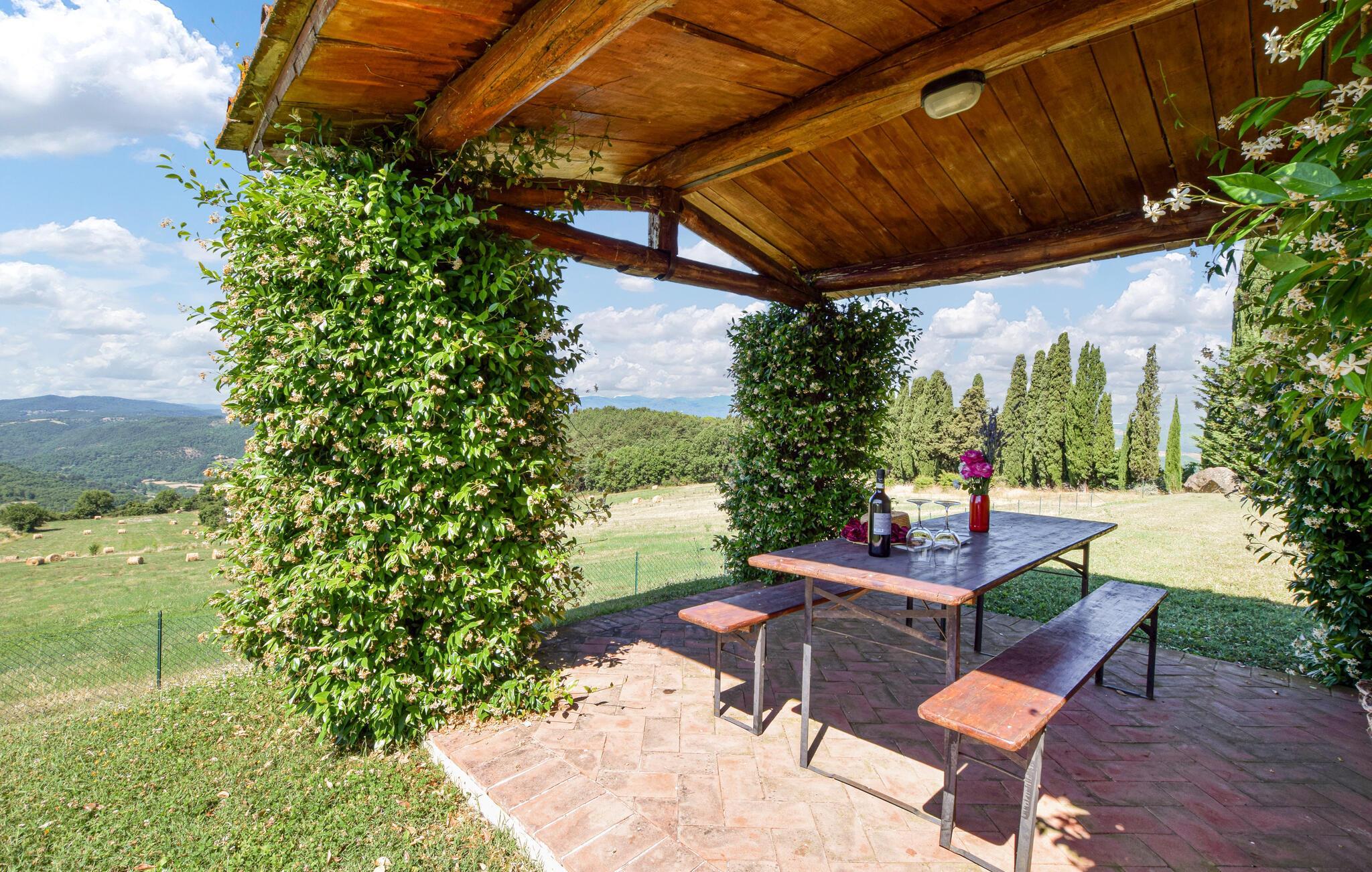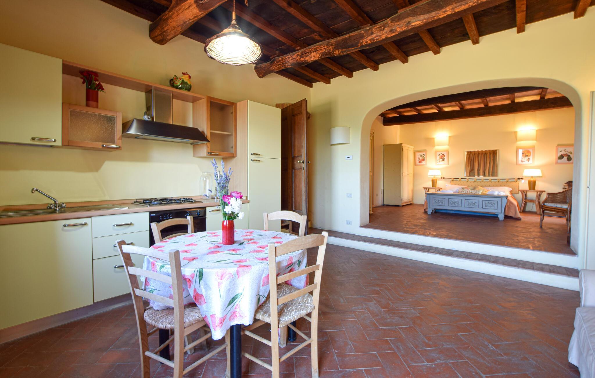 Dieses typisch toskanische Steinhaus verspricht Ihnen einen Urlaub vom Feinsten. Genießen Sie den historischen Charme, den dicke Natursteinmauern, charaktervolle Holzbalken und die rustikale Einrichtung ausstrahlen. Verbringen Sie entspannte Abende beim Plaudern oder probieren Sie in der modern ausgestatteten Küche toskanische Rezepte aus.
