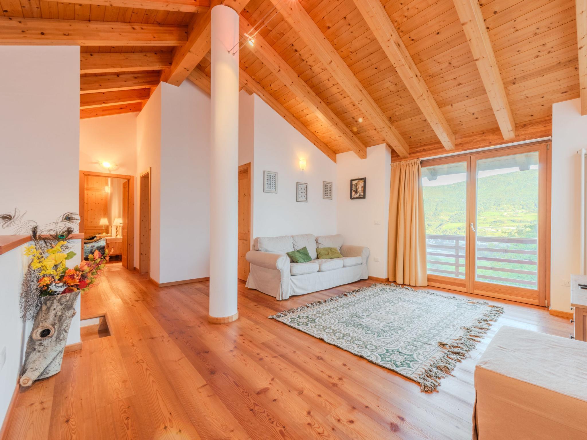 Bleggio 4 km von Ponte Arche: Gemütliches, rustikales Zweifamilienhaus "La casa dei Noci", auf 2 Stockwerken. 2 Wohnungen im Ferienhaus. Im Ortszentrum von Bleggio Superiore, ruhige, sonnige Lage auf einem Hügel, exzellente Lage: Absolut zentral und dennoch ruhig, 50 m vom Waldrand, im Grünen, Richtung Südosten. Zur Mitbenutzung: naturbelassenes Grundstück, Wiese. Im Hause: Einstellraum für Fahrräder, Skiraum. Wäschewechsel 1 mal wöchentlich (zusätzlich extra). Handtuchwechsel 1 mal wöchentlich (zusätzlich extra). Wohnungsreinigung 1 mal wöchentlich möglich (extra). Parkplatz (für 2 Autos) beim Haus. Lebensmittelgeschäft, Supermarkt 200 m, Restaurant 2.5 km, Bar, Café 100 m, Fahrradverleih 4 km, Biergarten 100 m, Bushaltestelle 50 m, Kieselstrand "Tenno" 13 km, Park "Comano Terme" 5 km, Hallenbad 13 km, Naturbadeteich 13 km, See di Tenno 13 km. Nahe gelegene Sehenswürdigkeiten: Bosco Arte Stenico 8 km, Castello di Stenico 8 km, Terme di Cura di Comano 5 km, Museo delle Palafitte Fiavè 5 km, Mercatini di Rango 3 km, Circolo Tennis - Padel 100 m. Bekannte Skigebiete sind gut erreichbar: Pinzolo - Madonna di Campiglio 30 km. Bekannte Seen in der Umgebung sind gut erreichbar: Lago Di Tenno 13 km, Lago di Molveno 24 km, Lago di Garda 25 km. Wandergebiete: Sentiero della Noce 20 m, Val Marcia 3 km, Malga Nardis 4 km. Bewachte Residenz. Besitzer nutzt Räume im Haus. Die Nachbarschaft ist sehr lärmempfindlich. Ruhe und gutes Benehmen wird erwartet.