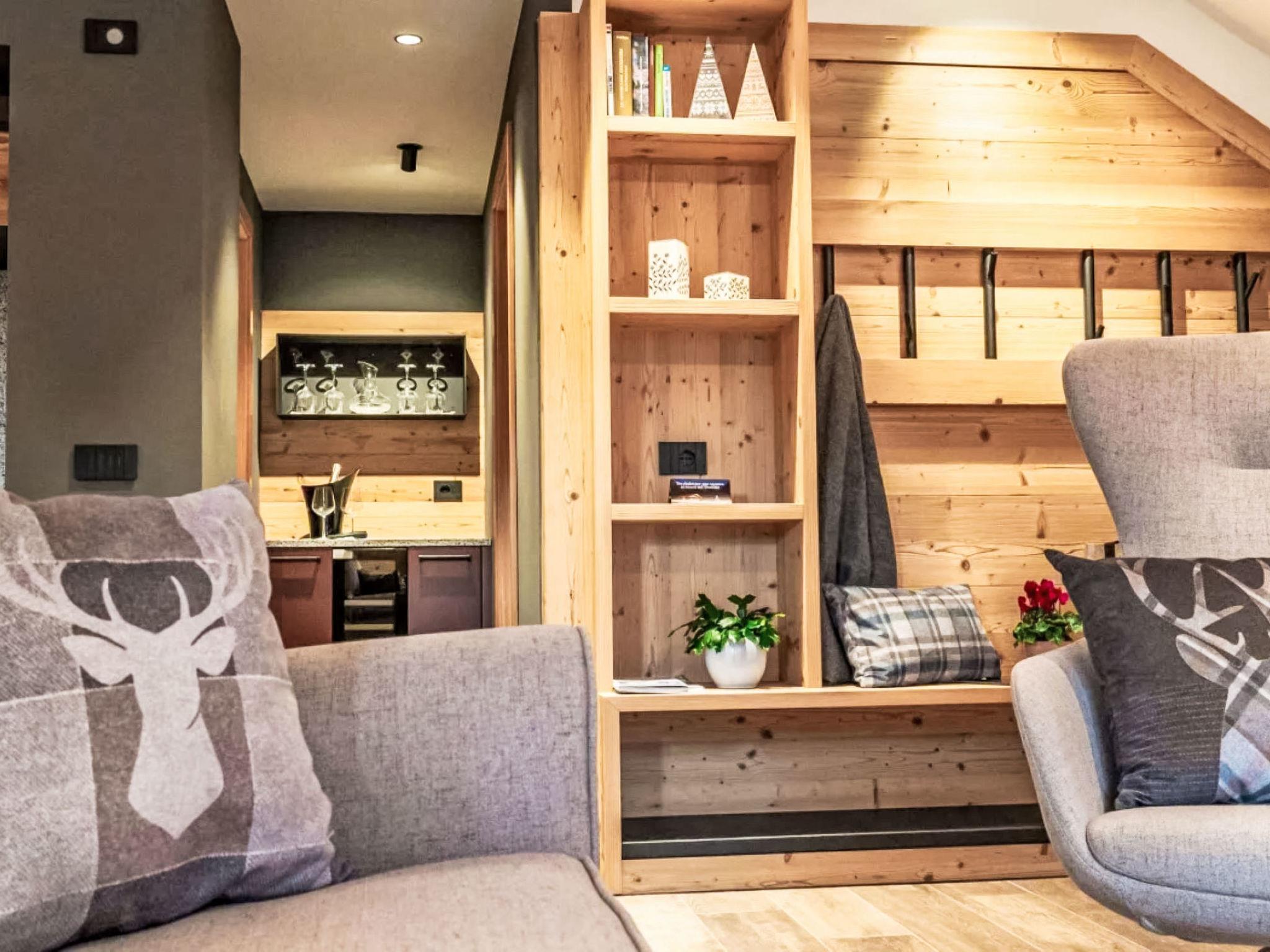 "La Granda", 4-Zimmer-Chalet 126 m2 auf 2 Stockwerken, im Erdgeschoss, Südostlage. Geräumig und hell, modern und mit viel Holz eingerichtet: Wohnzimmer mit offenem Kamin und Sat-TV (Flachbildschirm). Ausgang zum Garten, zum Gartensitzplatz, Richtung Süden und Richtung Osten. Gepäckraum mit Waschbecken. Küche (Backofen, Gasherd, 4 Flammen, Toaster, Wasserkocher, Tiefkühler, elektrische Kaffeemaschine) mit Bar, Esstisch. Ausgang zum Garten, zum Gartensitzplatz, Richtung Süden und Richtung Osten. Dusche/Bidet/WC. G-Heizung, Bodenheizung. Obergeschoss: 3 Doppelzimmer. Dusche/Bidet/WC, Doppelwaschbecken. G-Heizung, Bodenheizung. Gartensitzplatz, grosser Garten, Südlage und Ostlage. Gartengrill, Liegestühle (3), Sitzplatz. Sehr schöne Panoramasicht auf die Berge und die Landschaft. Zur Verfügung: Babybett bis 2 Jahre, Haartrockner, Holz (gratis). Parkplatz (4 Autos). Bitte beachten: Nichtraucher-Haus. Maximal 1 kleines Haustier/Hund erlaubt. Eigener Eingang, Feuerlöscher, kein Fahrstuhl. IT022182C2B9MCEP5O