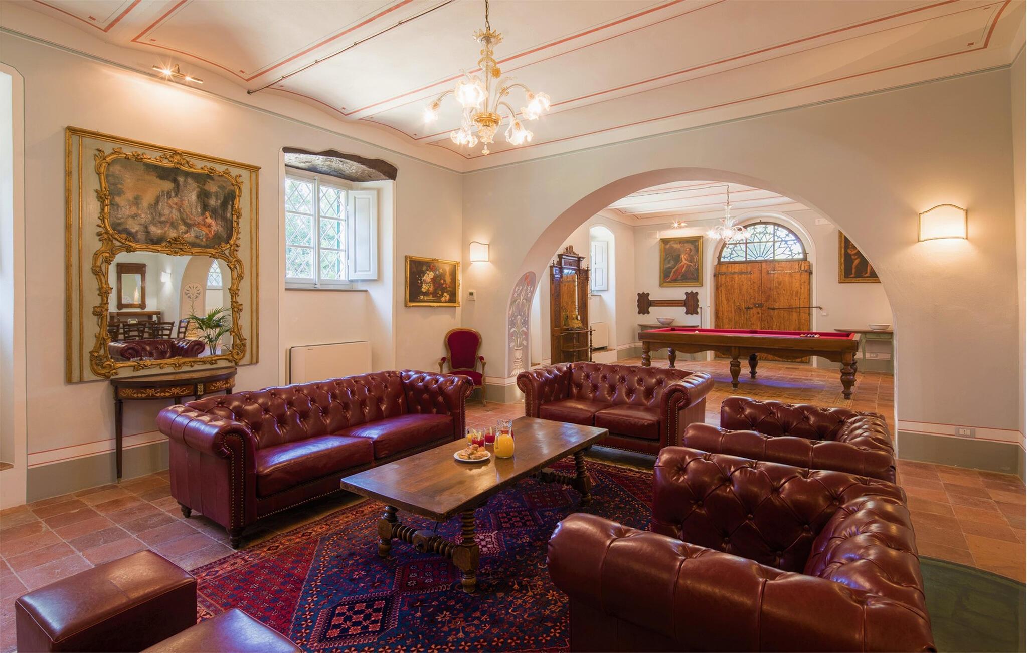 Dieses zauberhafte Landhaus aus dem 17. Jahrhundert bietet Ihnen reichlich Platz und Komfort, um mit der Großfamilie oder einer Gruppe von Freunden das toskanische Flair in vollen Zügen zu genießen. Zaubern Sie köstliche Gerichte in der modernen Küche und zelebrieren Sie Ihre Mahlzeiten im edlen Speisesaal. Spielen Sie Billard, veranstalten Sie einen Filmabend oder vertiefen Sie sich auf einem der vielen gemütlichen Sofas in ein Buch.