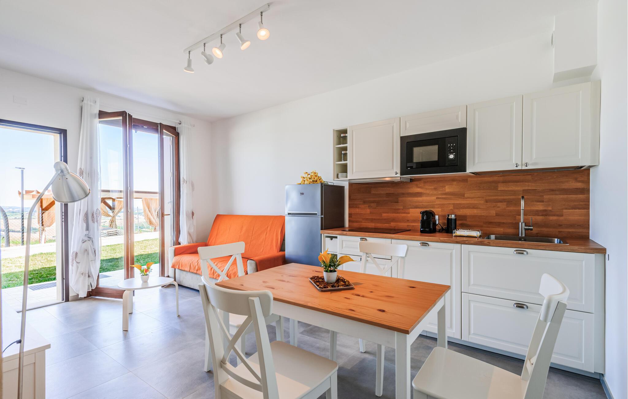 In einem Ferienhauskomplex in Terre Roveresche empfängt Sie diese komfortable und ansprechende Ferienwohnung. Es ist der ideale Ort, um mit Ihrer Familie Ihre Ferientage zu verbringen und abseits der großen Städte Ihre Batterien wieder aufzuladen. Die Wohnung zeichnet sich durch einen modernen und hellen Einrichtungsstil aus und lässt Sie im Wohnzimmer zum Kochen, Essen, Spielen und Relaxen zusammenkommen.