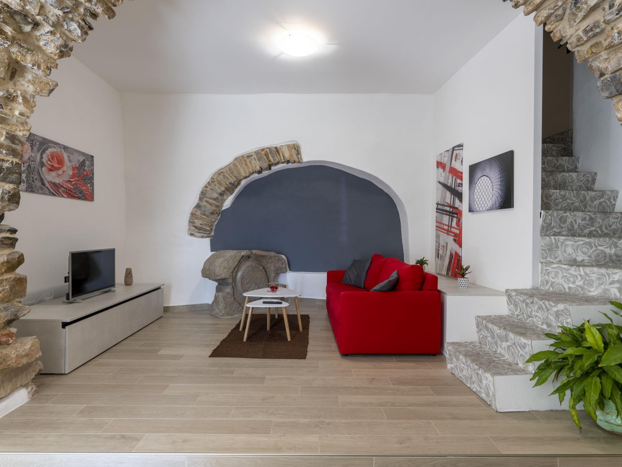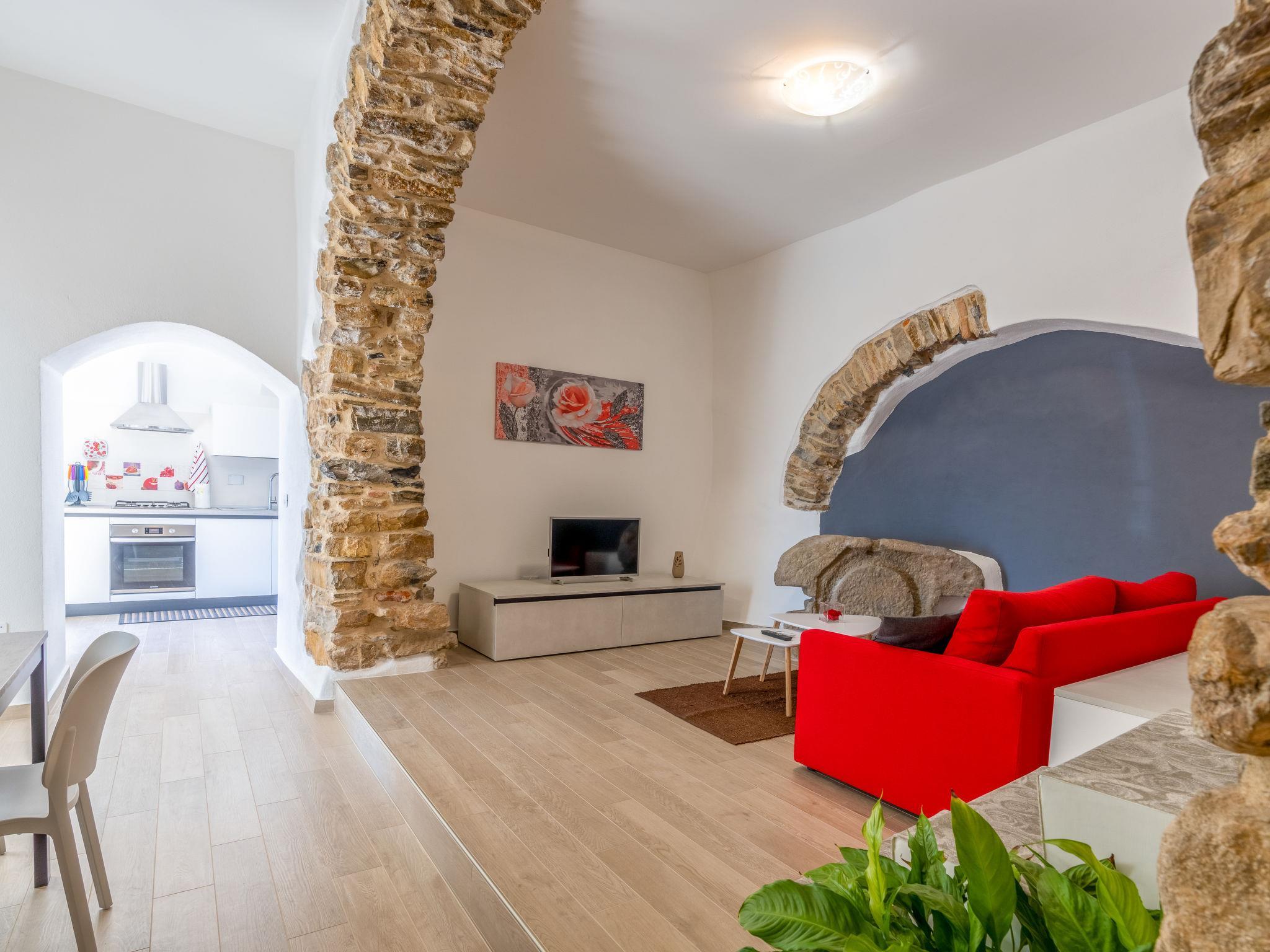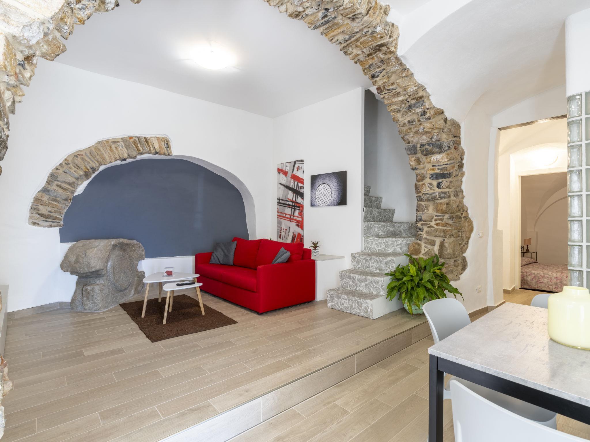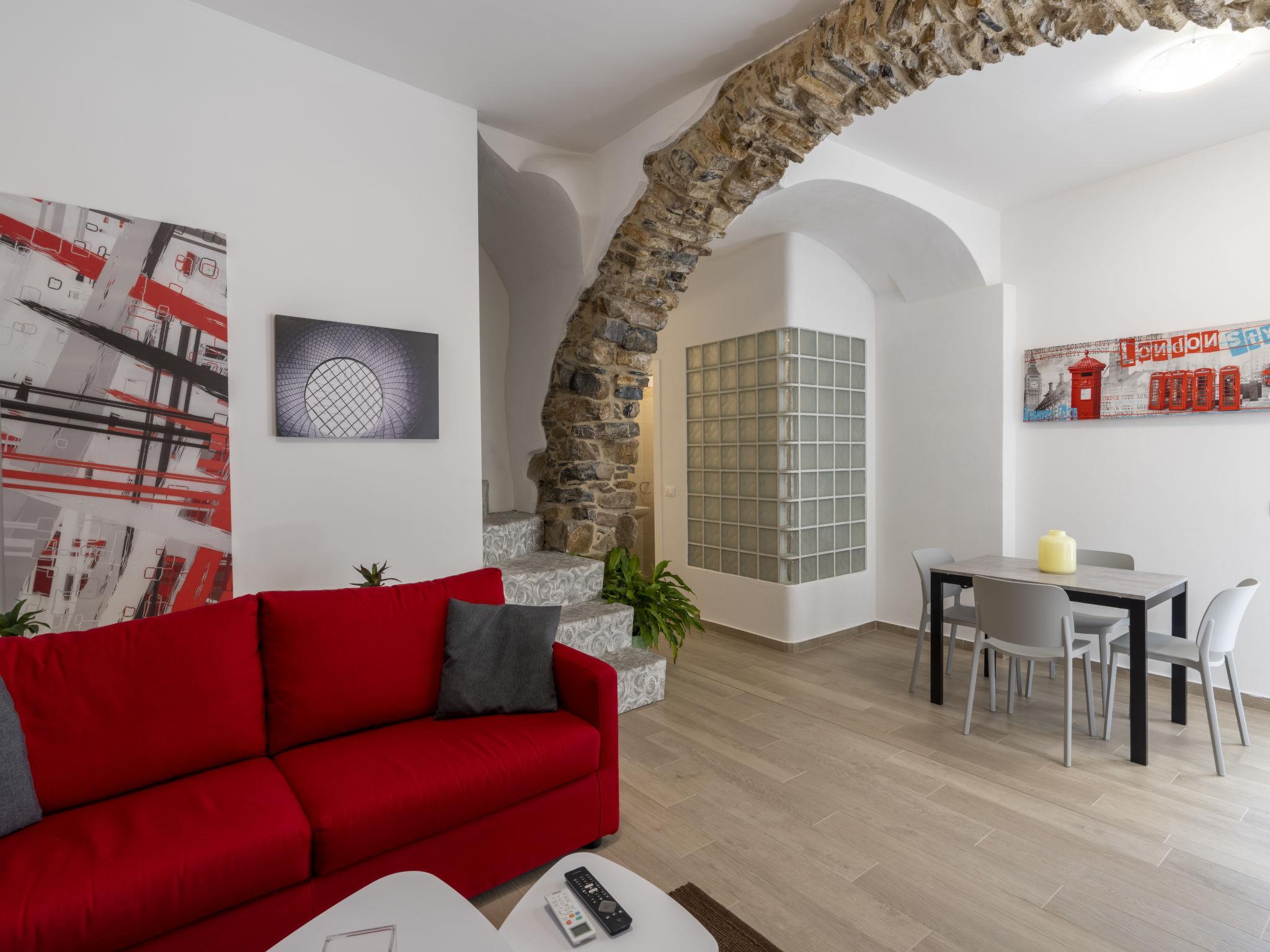 "Il Giardino", 3-Zimmer-Wohnung 100 m2, im Erdgeschoss. Renoviert im Jahre 2023, komfortabel und geschmackvoll eingerichtet: Wohn-/Esszimmer mit TV. Ausgang zum Garten. 2 Doppelzimmer. Offene Küche (Backofen, Geschirrspüler, 4 Flammen, Toaster, Wasserkocher, elektrische Kaffeemaschine). Ausgang zum Garten. Dusche/Bidet/WC. Klimaanlage, Warmluftheizung. Heizung nur verfügbar von 15.10. bis 15.04. Garten 65 m2. Terrassenmöbel, Gartengrill, Liegestühle. Sehr schöne Sicht auf das Meer und die Ortschaft. Zur Verfügung: Waschmaschine, Haartrockner. Internet (WLAN, gratis). Bitte beachten: geeignet für Familien. Nichtraucher-Haus. Maximal 1 Haustier/Hund erlaubt. Eigener Eingang. IT008060C2GXE3YL5C