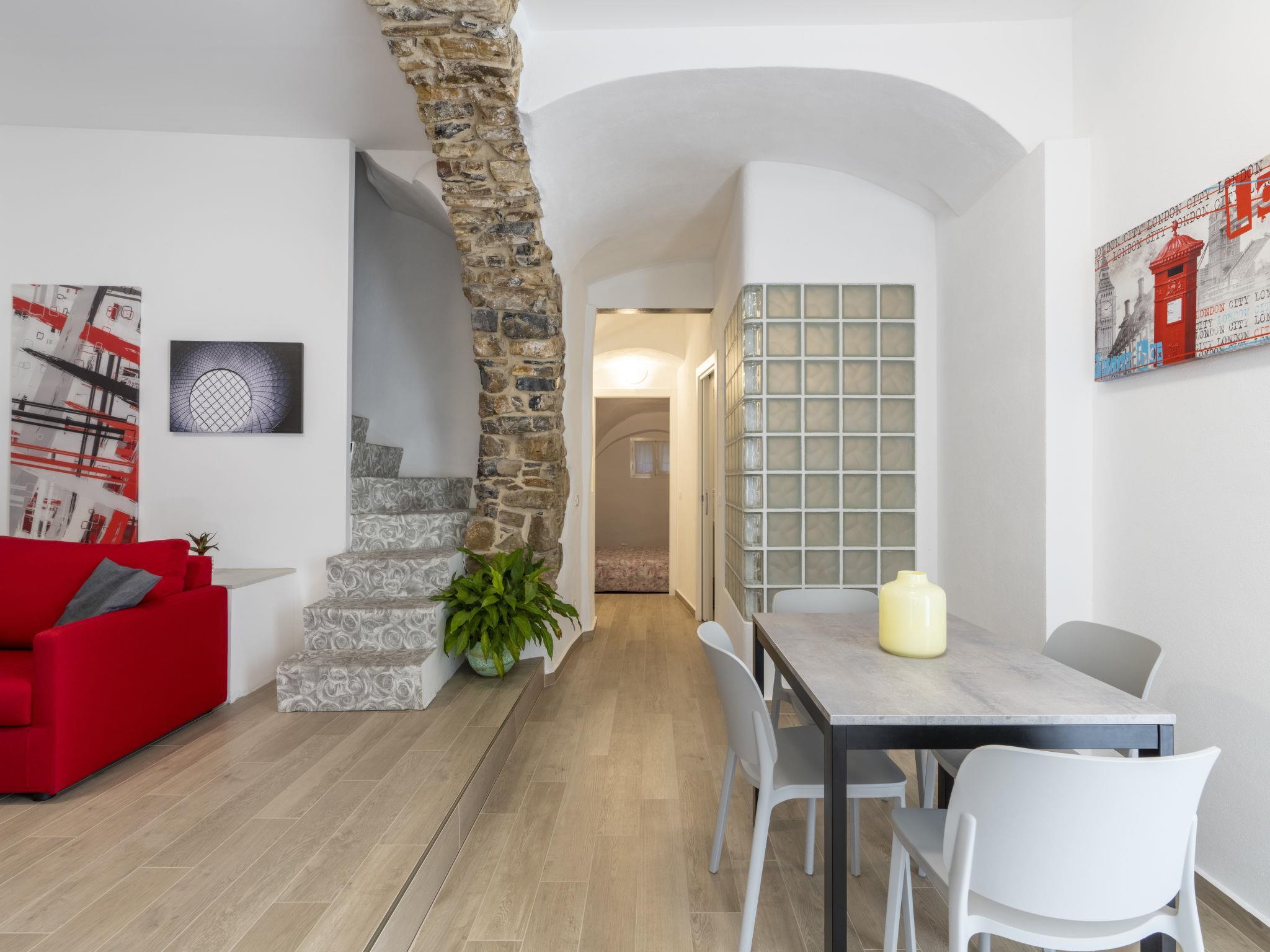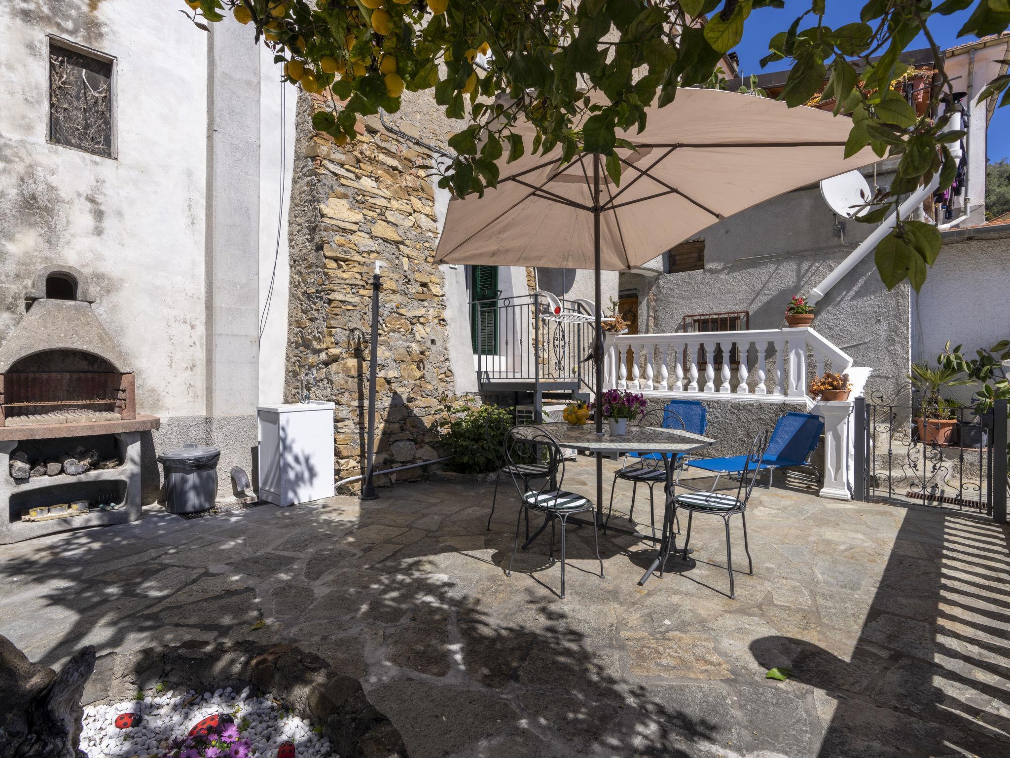 Komfortables, historisches Einfamilienhaus "Il Giardino". Im Ortszentrum von Terzorio, 3 km vom Zentrum von Santo Stefano al Mare, 5 km vom Zentrum von Riva Ligure, 15 km vom Zentrum von Sanremo, erhöhte Lage, 3 km vom Meer. Treppenweg (12 Stufen) bis zum Haus. Öffentliche Parkplätze 50 m auf der Strasse. Lebensmittelgeschäft 3 km, Supermarkt 4 km, Restaurant 3 km, Bar 3 km, Fahrradverleih 3 km, Bushaltestelle 100 m, Bahnstation "Taggia" 5 km, Sandstrand 3 km. Golfplatz (18 Loch) 5 km, Radweg 3 km. Bitte beachten: Fahrzeug empfohlen.