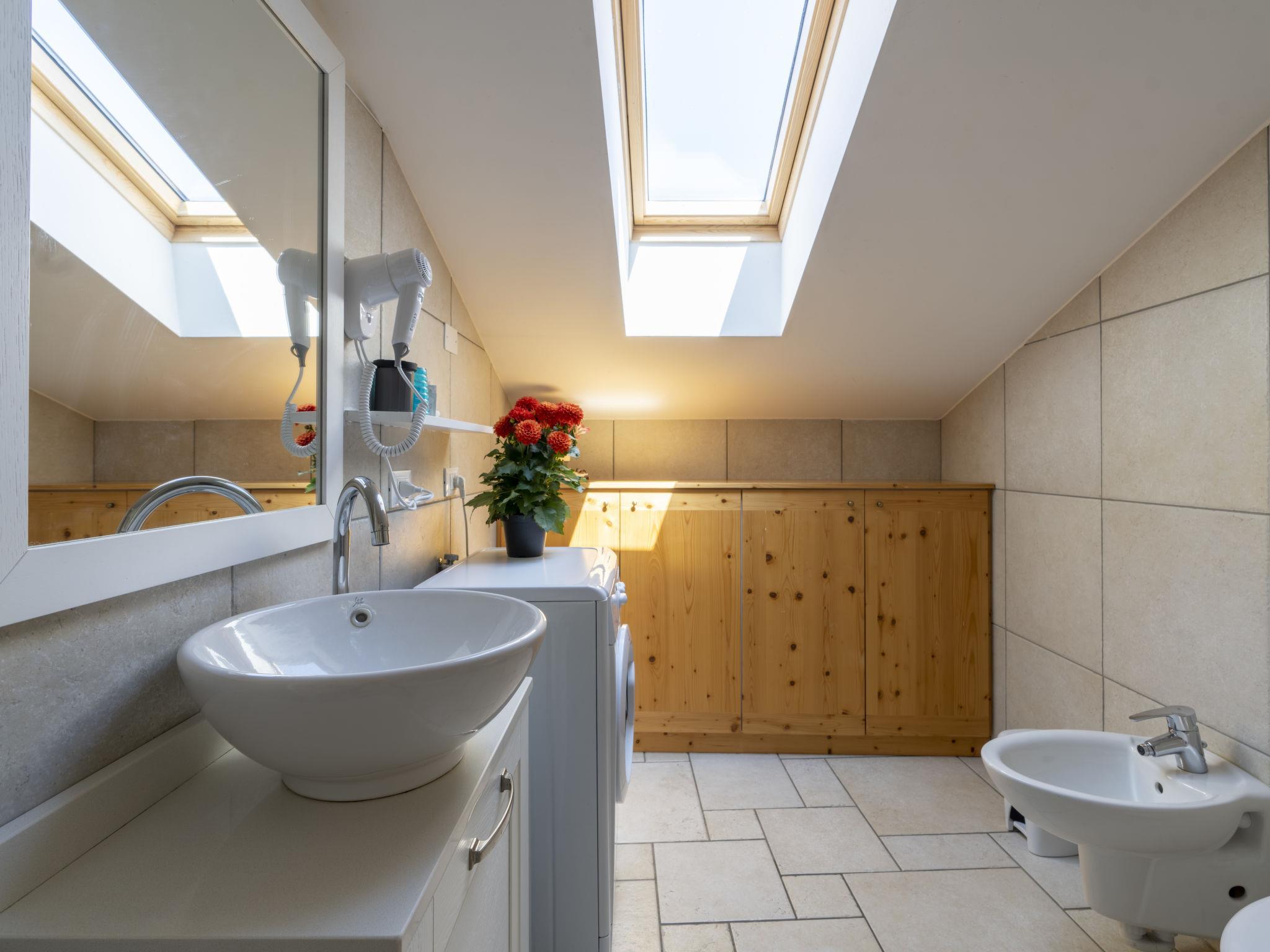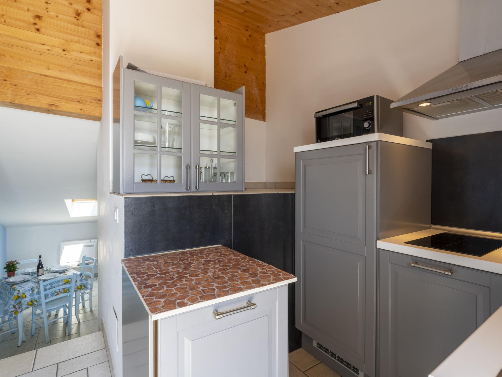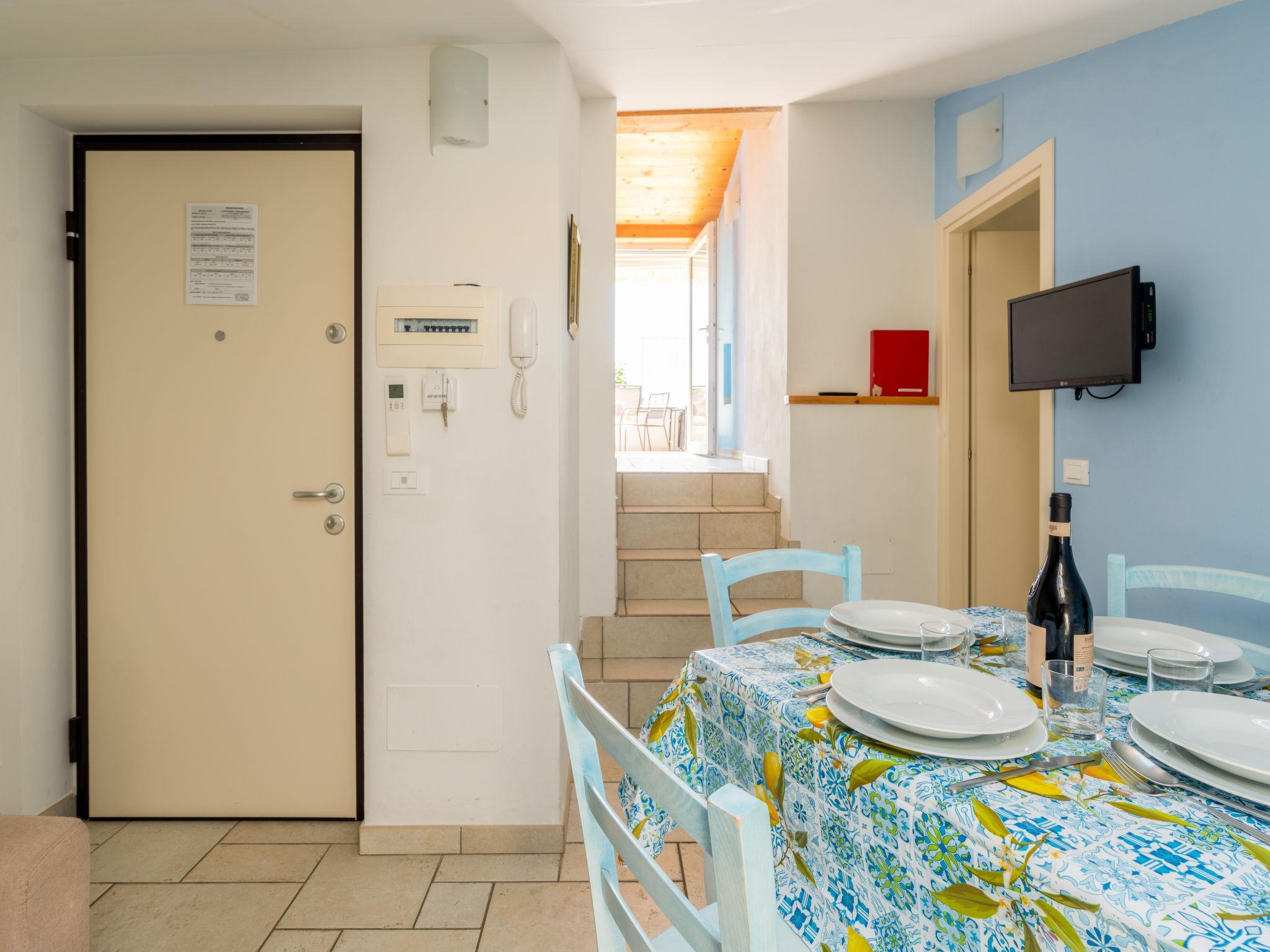 "Fico", 2-Zimmer-Wohnung 50 m2 im 2. Stock. Geschmackvoll und gemütlich eingerichtet: Wohn-/Esszimmer mit 1 Doppeldiwanbett (140 cm, Länge 200 cm). Ausgang zum Balkon. 1 Doppelzimmer, Deckenhöhe 170 - 240 cm mit Dachfenster. Wohnküche (Geschirrspüler, 2 Induktionskochplatten, Toaster, Wasserkocher, Mikrowelle, elektrische Kaffeemaschine). Ausgang zum Balkon. Dusche/Bidet/WC. Klimaanlage, Warmluftheizung. Heizung nur verfügbar von 01.11. bis 08.04. Balkon 5 m2. Sehr schöne Panoramasicht auf das Meer und die Landschaft. Zur Verfügung: Waschmaschine, Babybett bis 2 Jahre, Haartrockner. Internet (Wireless LAN). IT008060B537FMBBB8