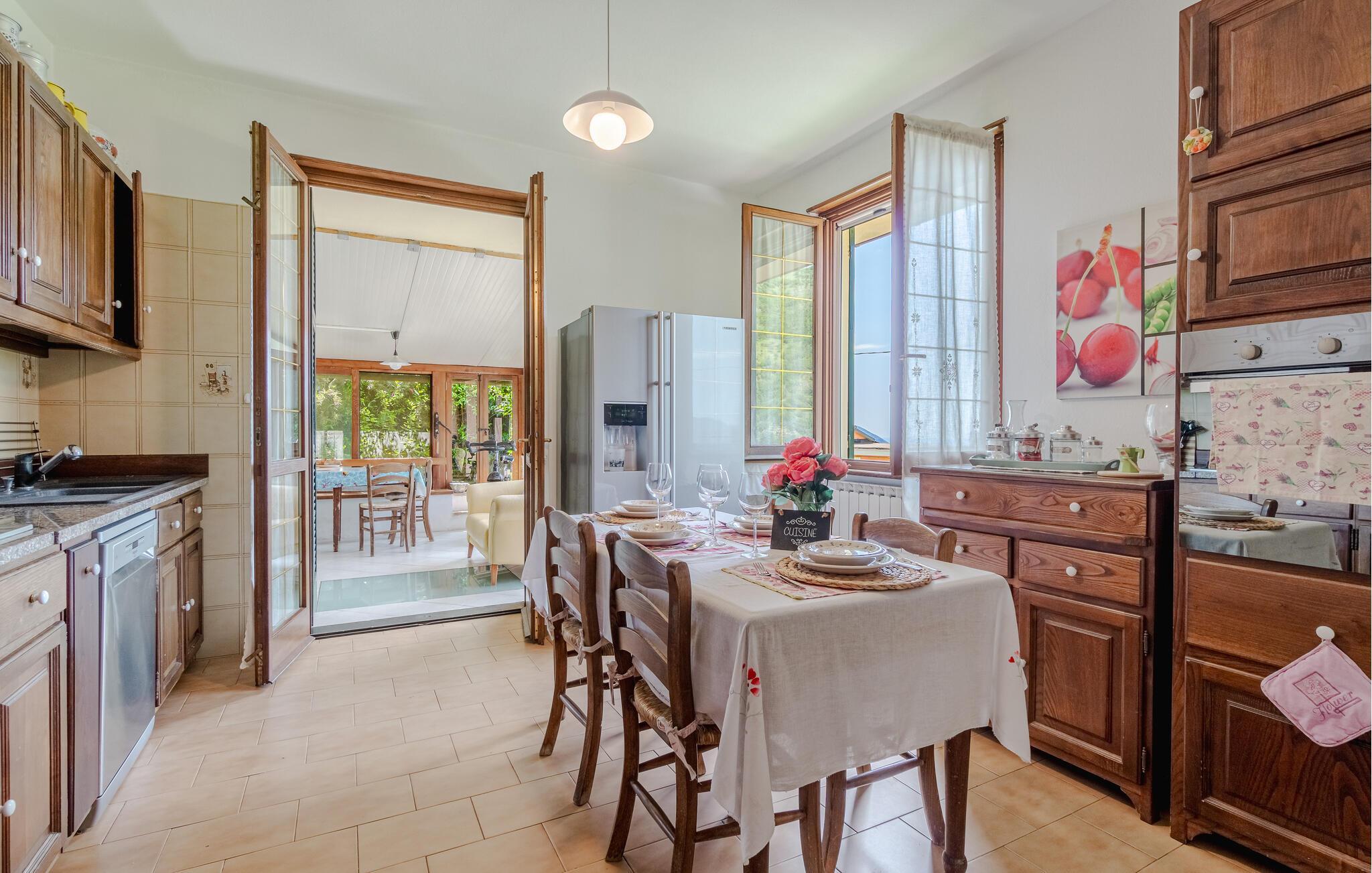 Das komfortable Haus erwartet Sie in wunderschöner Lage in einer pittoresken Berglandschaft. In den einladenden Räumen mit gediegenen Möbeln können Sie den Alltag hinter sich lassen und es sich so richtig gut gehen lassen. Pure Entspannung bietet das Wohnzimmer, wo große Panoramafenster die herrliche Aussicht auf die Umgebung besonders gut zur Geltung bringen. Lassen Sie am Esstisch den Blick über die Berge schweifen und machen Sie es sich abends auf dem Sofa gemütlich, während die Flammen im Kaminofen prasseln.