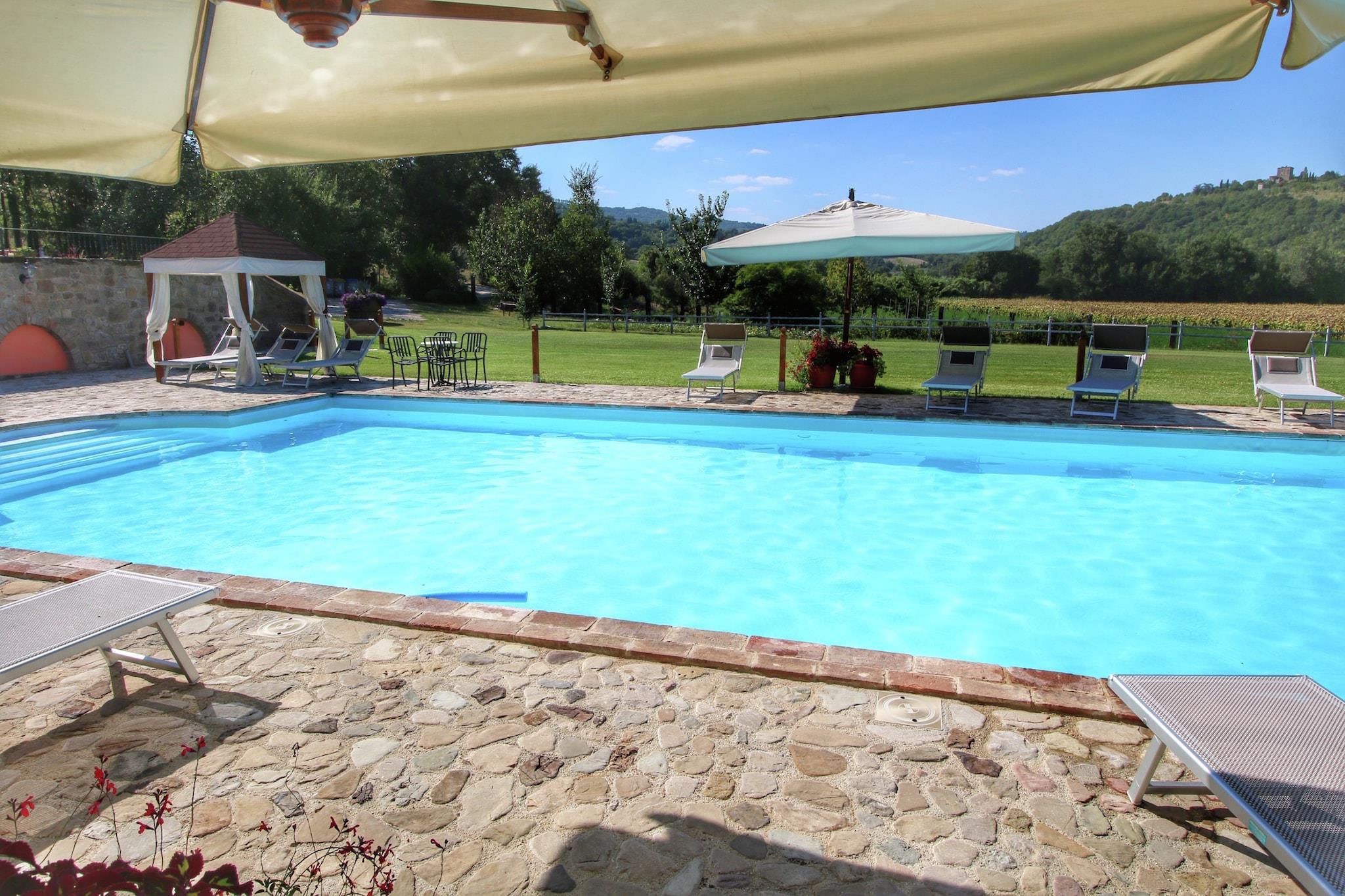 Entfliehen Sie der ruhigen Schönheit von Todi. Dieses haustierfreundliche Cottage für vier Gäste bietet eine perfekte Mischung aus Komfort und Natur. Mit kostenlosem WLAN, einem privaten Garten und Zugang zum Gemeinschaftspool (14 x 6 m, geöffnet von Mai bis September) ist dieser charmante Rückzugsort ideal zum Entspannen. Ob Sie die ruhige Umgebung genießen oder nahegelegene Sehenswürdigkeiten erkunden möchten – dieses Ferienhaus garantiert einen unvergesslichen Aufenthalt. Das Erdgeschoss verfügt über ein einladendes Wohn- und Esszimmer mit Doppelschlafcouch, Fernseher, Esstisch und Kamin sowie eine voll ausgestattete Küche mit Mikrowelle und Geschirrspüler. Das Haus bietet zwei gemütliche Schlafzimmer, eines mit Doppelbett und eines mit zwei Einzelbetten, sowie ein Badezimmer mit Dusche, Waschbecken, WC und Bidet. Gästen stehen außerdem ein kostenpflichtiges Whirlpool und eine Sauna, Zentralheizung, Klimaanlage, eine Gemeinschaftswaschmaschine (gegen Gebühr), Gartenmöbel, ein Grillplatz und Parkplätze auf dem Gelände zur Verfügung – für einen komfortablen und unbeschwerten Aufenthalt. Die nahe gelegene Piazza del Popolo ist ein absolutes Muss und besticht durch beeindruckende mittelalterliche Architektur und lebendige lokale Kultur. Das Santuario Madonna della Pasquarella bietet einen atemberaubenden Ausblick und eine friedliche Atmosphäre. Zum Essen serviert das Ristorante Pizzeria Le Scalette köstliche italienische Küche, während das Ristorante Umbria traditionelle umbrische Gerichte serviert. Ob Sie historische Sehenswürdigkeiten erkunden oder lokale Gerichte genießen möchten – dieses Ferienhaus ist der perfekte Rückzugsort in Umbrien.