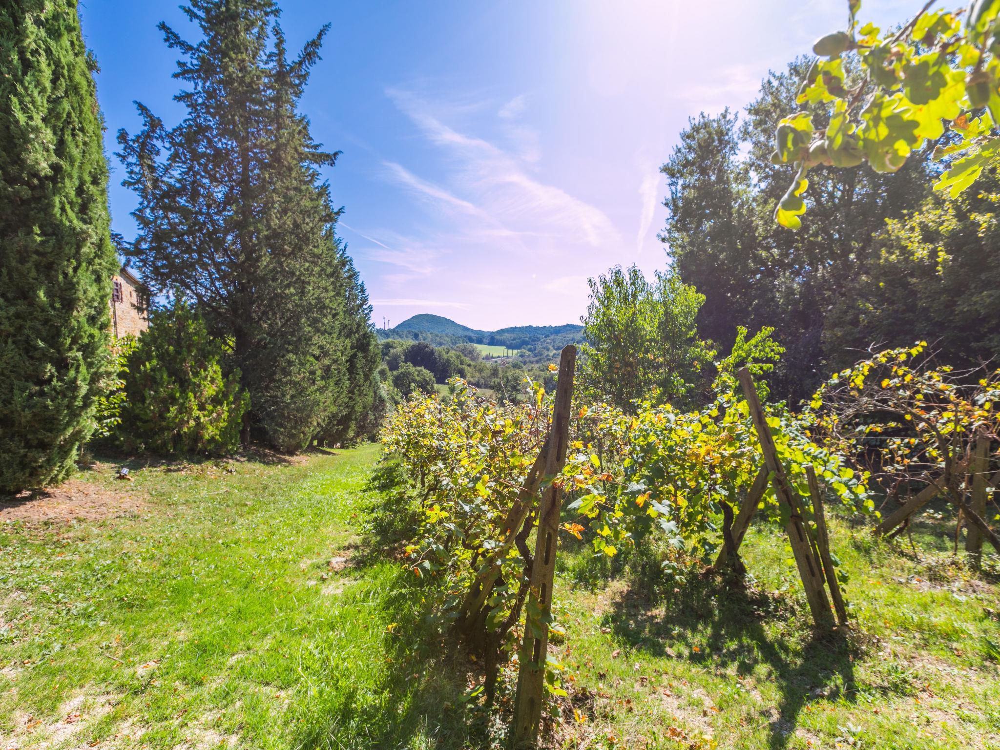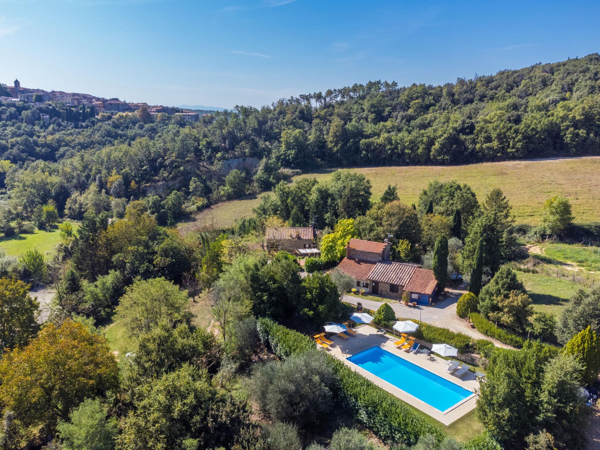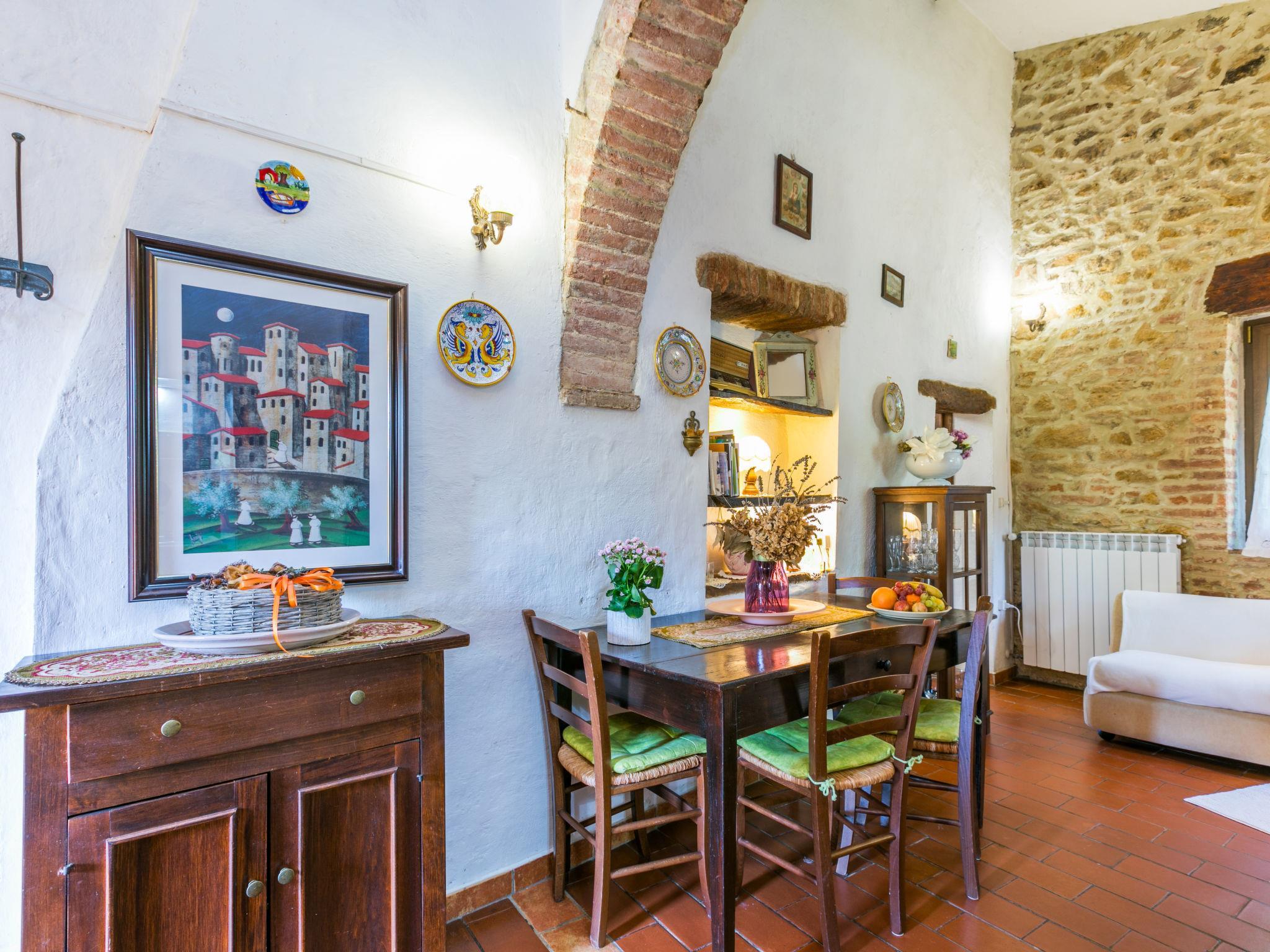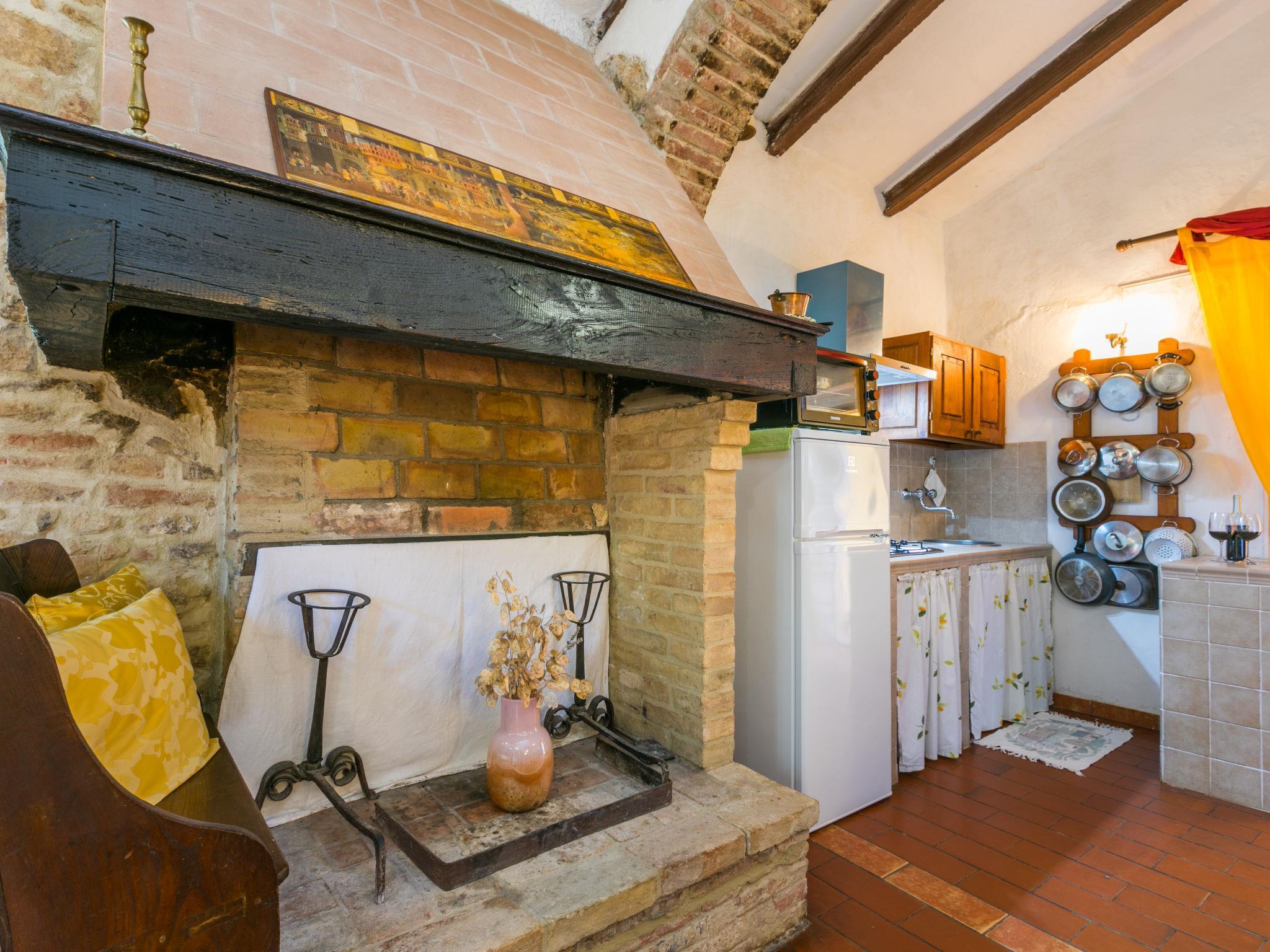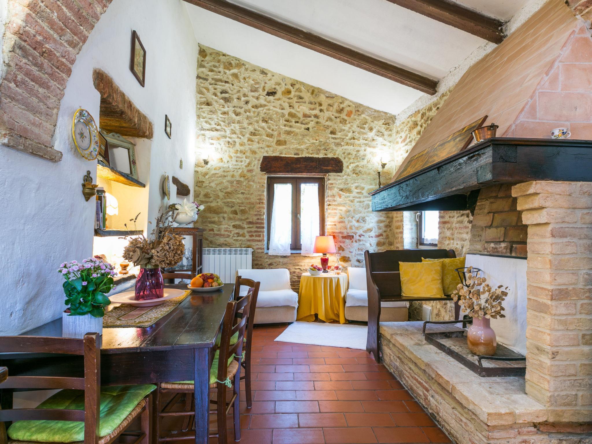 "Focolare", 3-Zimmer-Wohnung im erhöhten Erdgeschoss. Objekt geeignet für 2 Erwachsene + 2 Kinder. Geräumig, rustikal und gemütlich eingerichtet: Wohn-/Esszimmer mit offenem Kamin und TV (Flachbildschirm). Durchgangszimmer mit 1 Doppelbett. 1 Doppelzimmer mit Dusche/Bidet/WC. Offene Küche (Gasherd, 4 Flammen, Toaster, Wasserkocher, Mikrowelle, elektrische Kaffeemaschine). G-Heizung (extra). Natursteinboden. Terrasse, grosser Gartensitzplatz. Terrassenmöbel, Gartengrill, Loggia. Sehr schöne Panoramasicht auf die Landschaft, das Städtchen und Trequanda. Zur Verfügung: Bügeleisen, Fliegengitter, Kinderhochstuhl, Babybett bis 2 Jahre, Haartrockner. Internet (Wireless LAN, gratis). Parkplatz beim Haus. Bitte beachten: Kühlschrank ohne Gefrierfach, Nichtraucher-Unterkunft. Eigener Eingang. IT052036B5MZBPD5P3