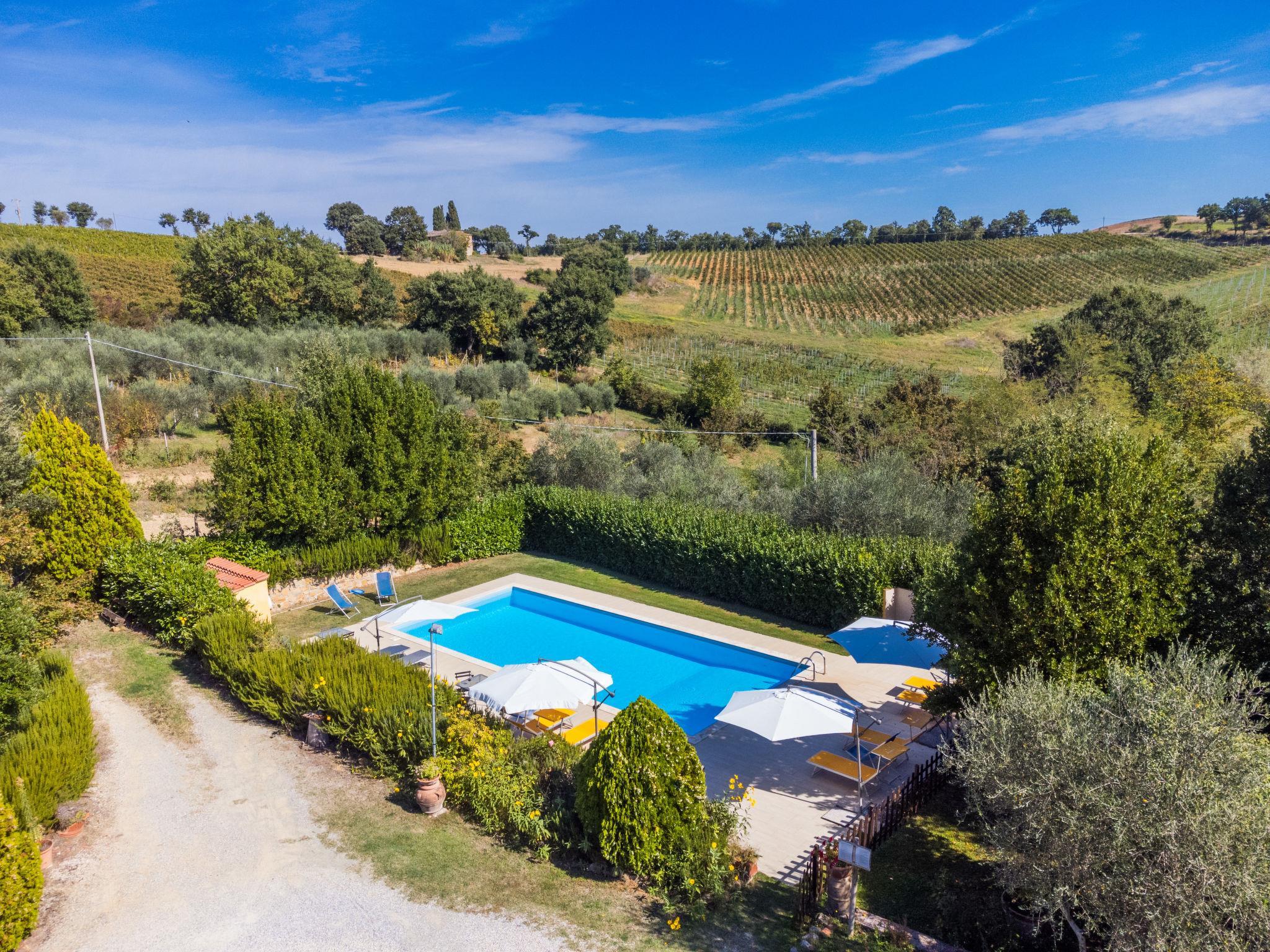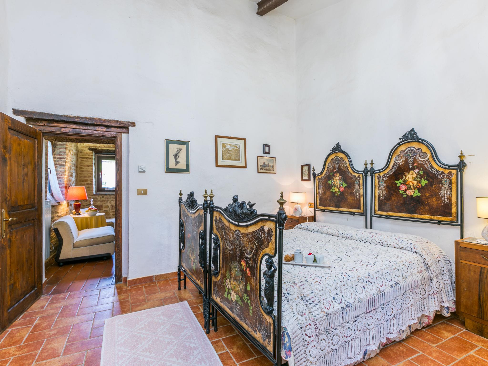 Trequanda: Kleines, gemütliches, rustikales Bauernhaus "Podere La Fonte", umgeben von Bäumen, Feldern und Weinbergen. 4 Wohnungen in der Residenz. 1 km vom Zentrum von Trequanda, 9 km vom Zentrum von Sinalunga, alleinstehende, ruhige Lage, 100 m vom Waldrand, im Grünen. Zur Mitbenutzung: naturbelassenes Grundstück 3 ha, Garten Pflanzen und Bäumen, Obstgarten, Schwimmbad eingezäunt (12 x 5 m, saisonale Verfügbarkeit: 15.Mai. - 15.Okt.). Aussendusche, Tennis, Volleyballfeld, Sitzplatz, Terrasse, Gartenmöbel, Grill, Poolpflege durch den Besitzer/Gärtner. Im Hause: Waschmaschine (zur Mitbenutzung, extra). 600 m lange schmale Zufahrt bis zum Grundstück. Parkplatz auf dem Grundstück. Einkaufsgeschäft 1 km, Lebensmittelgeschäft 1 km, Supermarkt 9 km, Einkaufszentrum 15 km, Restaurant 1 km, Bar 1 km, Bäckerei 1 km, Bushaltestelle "Trequanda" 1 km, Bahnstation "Sinalunga" 9 km, Thermalbad "Rapolano Terme" 23 km, Badesee "Trasimeno" 40 km. Golfplatz (9 Loch) 16 km, Reitstall 5 km. Nahe gelegene Sehenswürdigkeiten: Pienza 17 km, Montepulciano 22 km, Cortona 35 km, Siena 55 km. Bekannte Seen in der Umgebung sind gut erreichbar: Trasimeno 40 km. Bitte beachten: Fahrzeug empfohlen. Babyausstattung (inkl.). Ab Hof Verkauf von bäuerlichen Produkten. Der Besitzer wohnt im selben Haus. Tiere in der Umgebung. Alle Häuser/Wohnungen sind individuell eingerichtet.