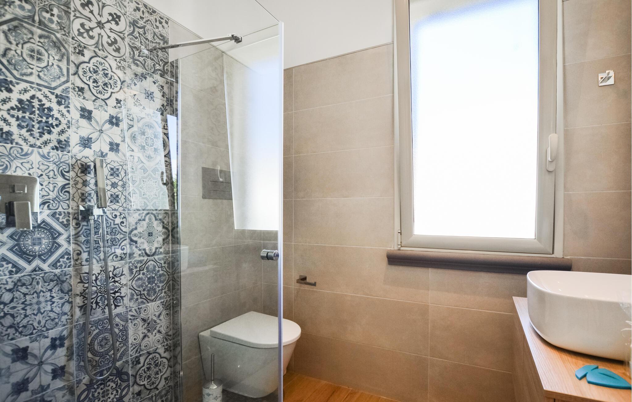 Badezimmer (nr. 2) - WC. Warmes und kaltes Wasser. Dusche