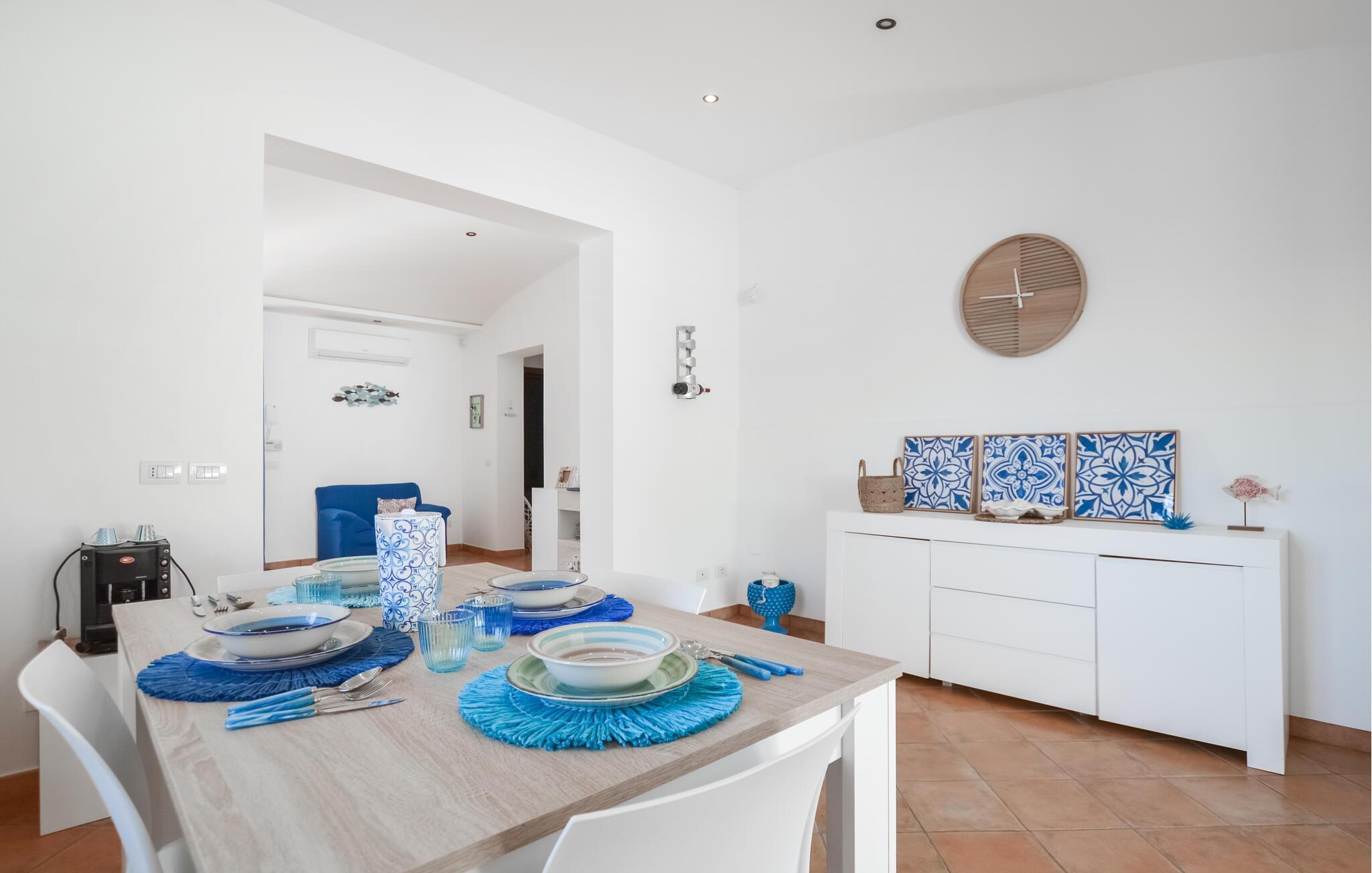 Ein mediterranes, lichtdurchflutetes Ambiente empfängt Sie in diesem einladenden Ferienhaus an der Küste, in dem Sie einen entspannten Urlaub in Strandnähe verbringen können. Machen Sie an heißen Tagen erholsame Siestas in den angenehm kühlen Räumen und nutzen Sie die geräumige, voll ausgestattete Küche, um gemeinsam kulinarische Highlights zu zaubern.