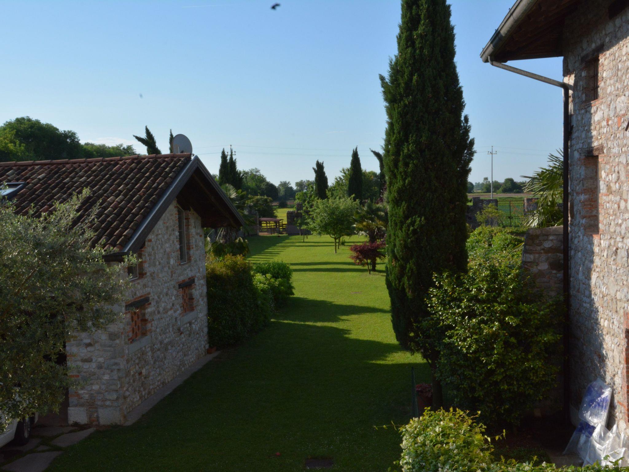 Die Ferienwohnung liegt im äußersten nord-östlichen Bereich des Gemeindegebietes Udine im Grünen – trotzdem ist sie von der AB Ausfahrt Udine Nord nur 3 km und vom Stadtzentrum Udine nur 7 km entfernt. Die Wohnung liegt ebenerdig in einem kleinen, ehemaligen Kloster aus dem 14. Jahrhundert, das von der (Südtiroler) Besitzerfamilie mit viel Liebe und Respekt vor der architektonischen Geschichte des Friaul restauriert wurde. Zum Gebäude gehört ein über 2 ha großes, innenliegendes Grundstück, von denen 3000 m² Garten und Wiese innerhalb der alten Zinnenmauer liegen. Die Ferienwohnung verfügt über einen kleinen, abgeschirmten Garten mit Gartenmöbeln, von dem aus man den restlichen Bereich des Grundstückes mit Pool, Liegewiese und Dusche ohne Hindernis erreicht. Auf dem Grundstück gibt es 2 Königdpudel, außerhalb des Gartens Pferde, Gänse und Katzen und beim Nachbarn auch Pfauen, Gänse, Enten, Hühner und ein Pony. Wer also Großstadt-Smog, Action und Verkehrslärm entfliehen und saubere Luft in natürlicher Umgebung sucht, dazu selbst entscheiden will, wann und ob er auf der belebten und schönen Piazza San Giacomo im Zentrum von Udine einen Aperitiv nehmen will, wird sich hier wohlfühlen.