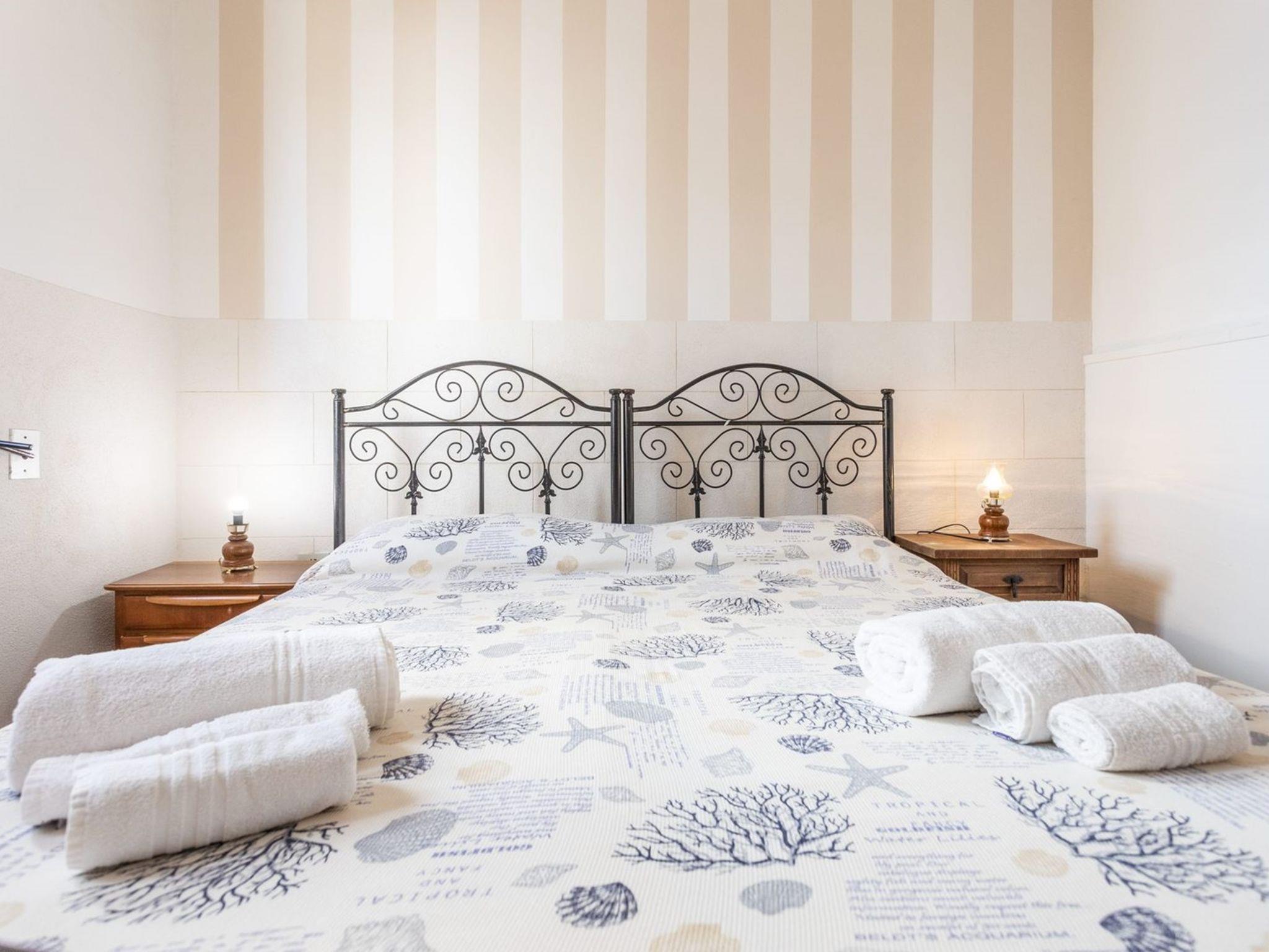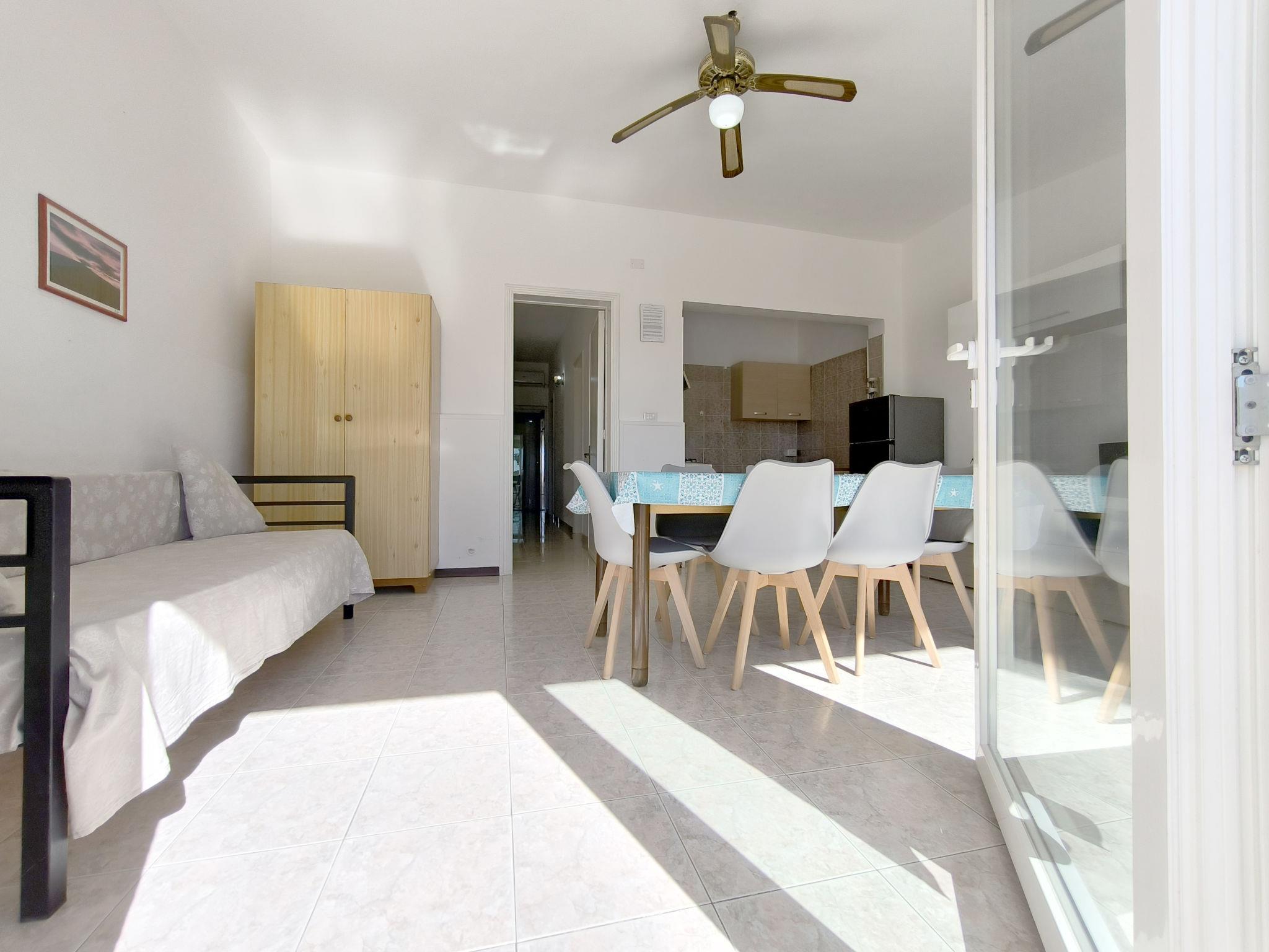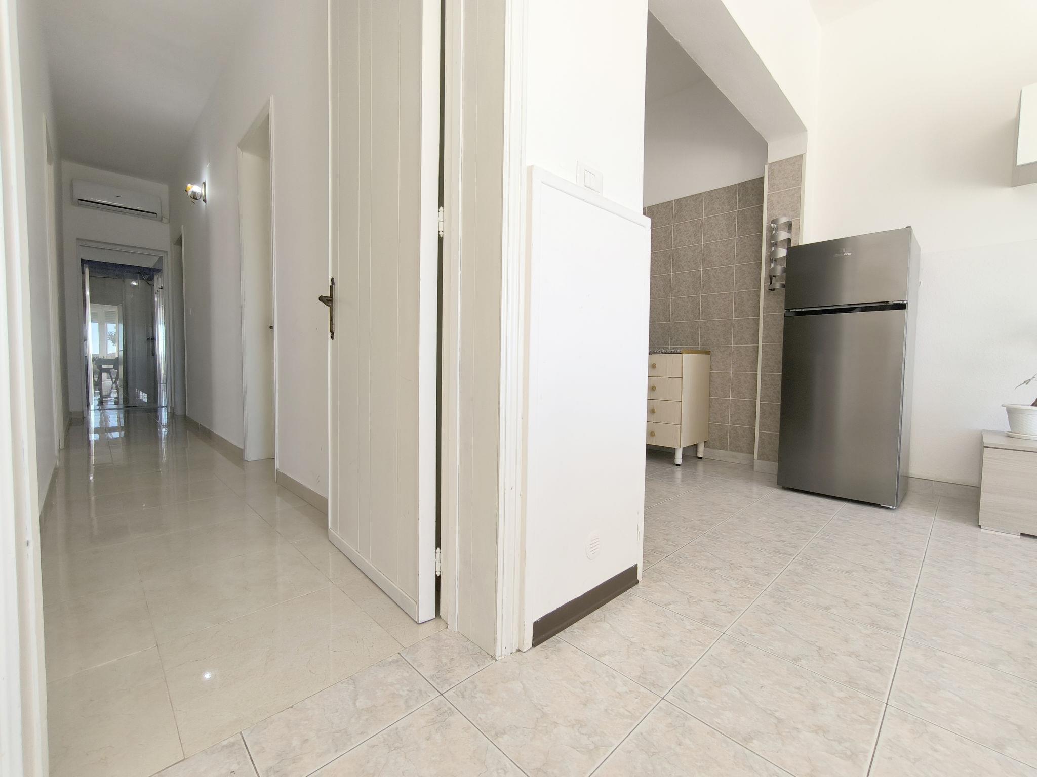 3-Zimmer-Wohnung 65 m2, im Erdgeschoss. Zweckmässig eingerichtet: Wohn-/Schlafzimmer mit 1 Diwanbett, Esstisch und Ventilator. Ausgang zum Gartensitzplatz. Durchgangszimmer mit Klimaanlage und Warmluftheizung. 1 Zimmer mit 1 Doppelbett und Ventilator. 1 Zimmer mit 2 Betten und Ventilator. Offene Küche (Backofen, 4 Flammen). Dusche/Bidet/WC. Heizung nicht in allen Räumen. Gartensitzplatz. Terrassenmöbel. Sicht auf das Meer. Parkplatz (eingezäunt, 1 Auto) beim Haus. Bitte beachten: Maximal 1 Haustier/Hund erlaubt. Eigener Eingang. IT075090C200101545