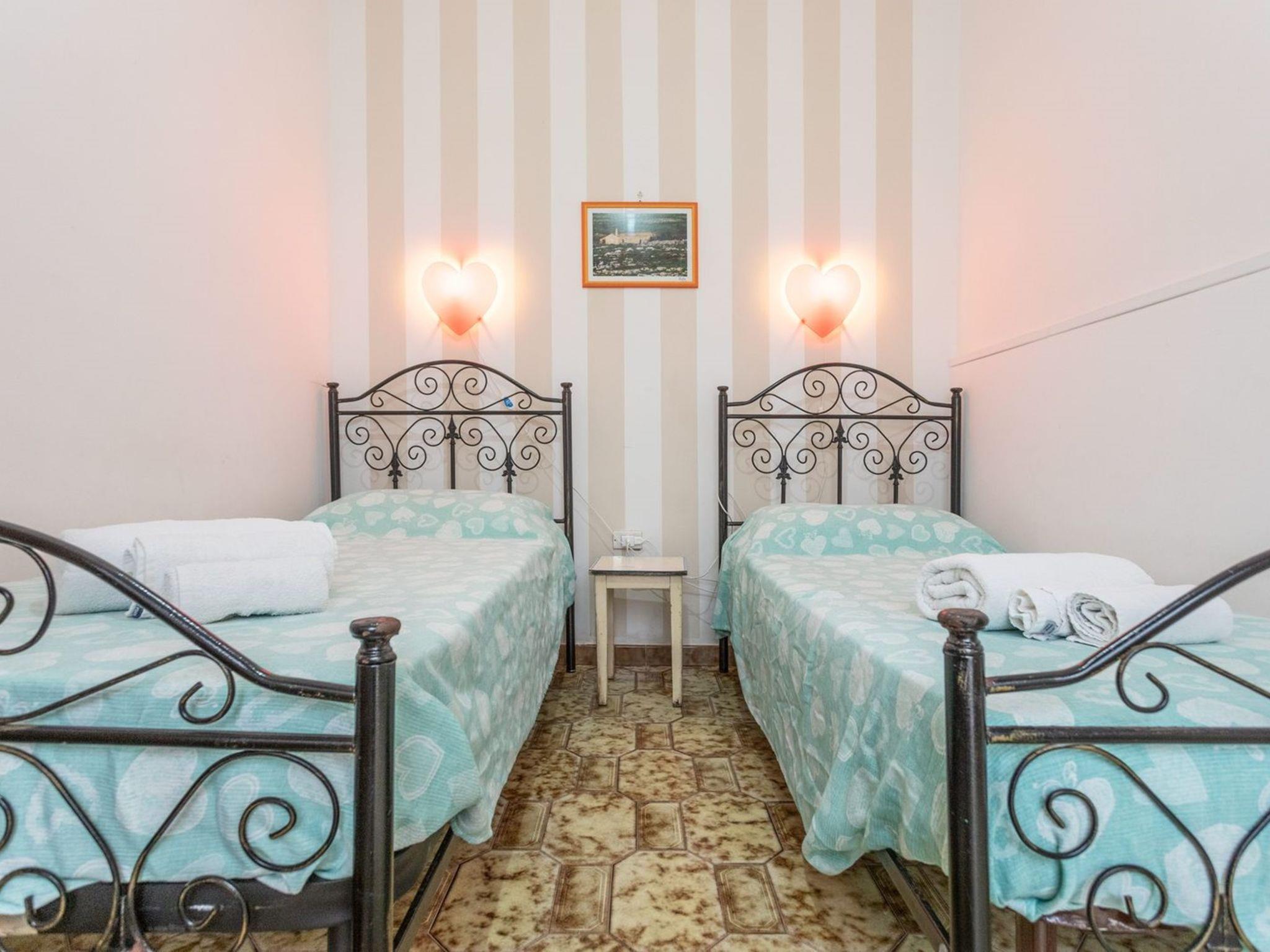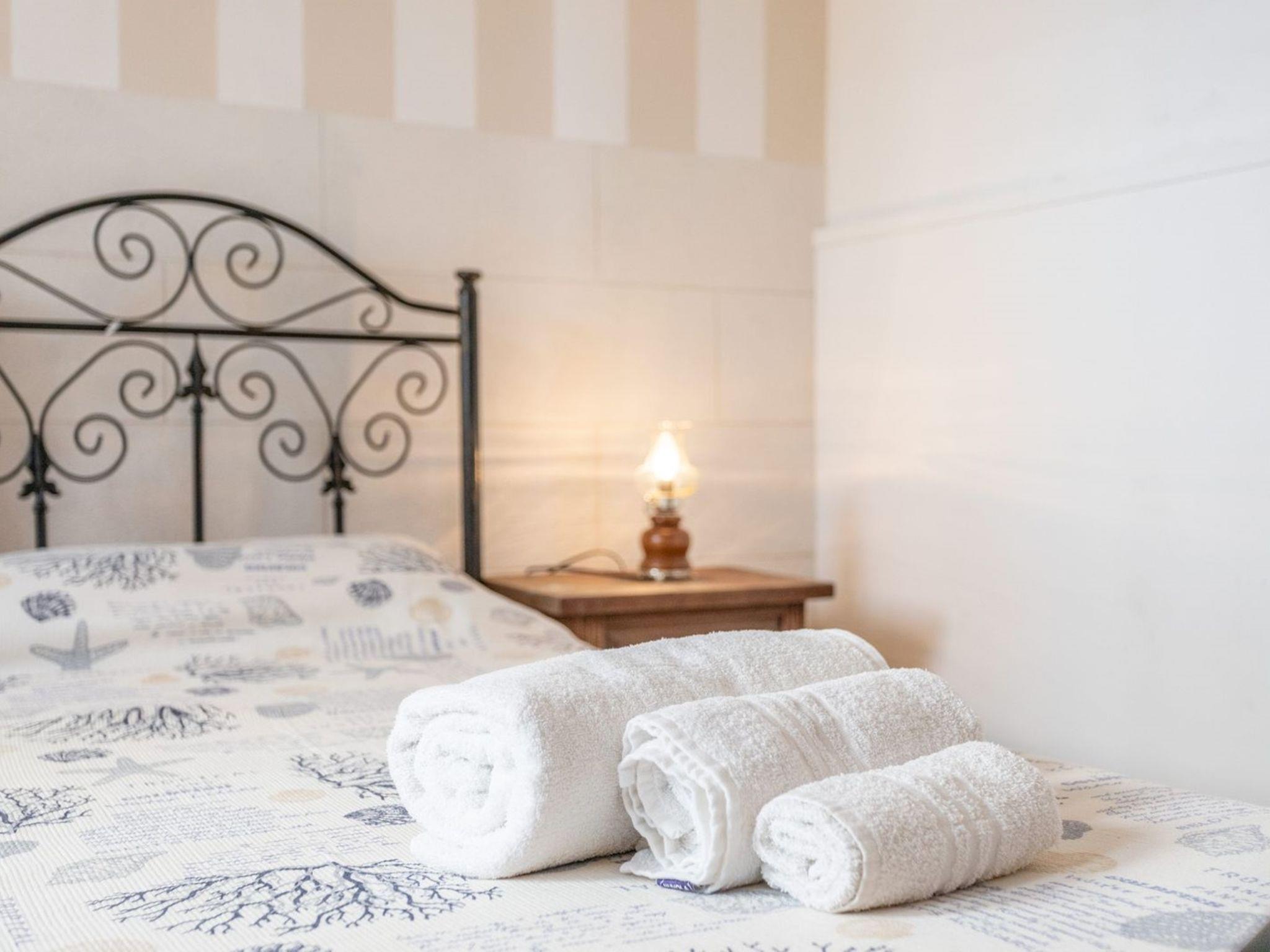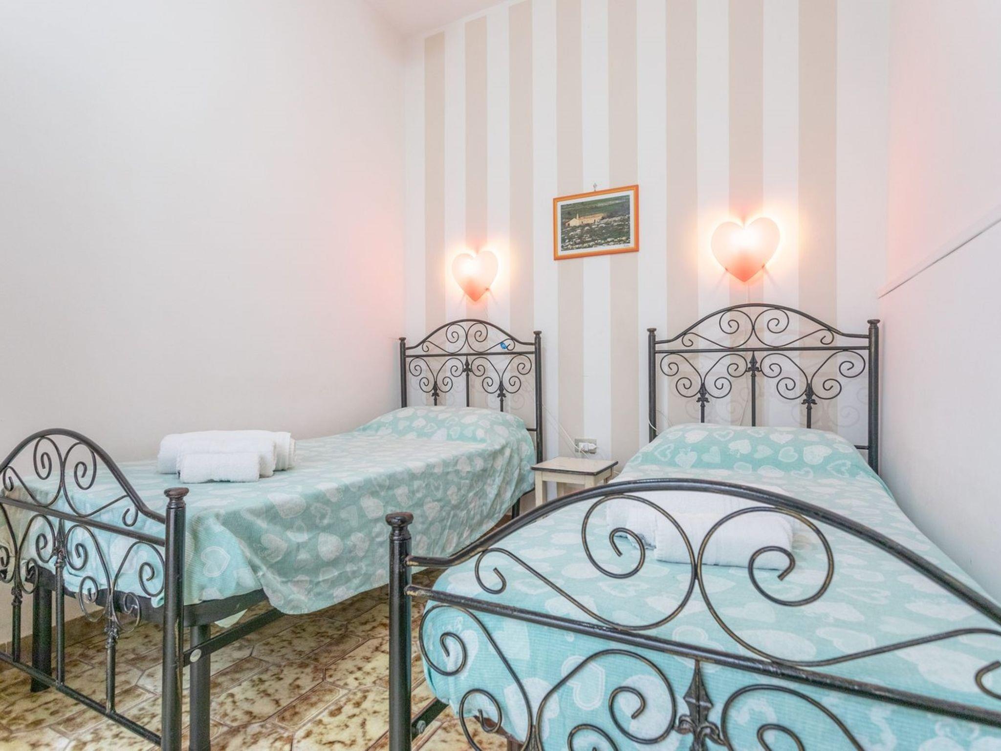 3-Zimmer-Wohnung 65 m2, im Erdgeschoss. Zweckmässig eingerichtet: Wohn-/Schlafzimmer mit 1 Diwanbett, Esstisch und Ventilator. Ausgang zum Gartensitzplatz. Durchgangszimmer mit Klimaanlage und Warmluftheizung. 1 Zimmer mit 1 Doppelbett und Ventilator. 1 Zimmer mit 2 Betten und Ventilator. Offene Küche (Backofen, 4 Flammen). Dusche/Bidet/WC. Heizung nicht in allen Räumen. Gartensitzplatz. Terrassenmöbel. Sicht auf das Meer. Parkplatz (eingezäunt, 1 Auto) beim Haus. Bitte beachten: Maximal 1 Haustier/Hund erlaubt. Eigener Eingang. IT075090C200101545
