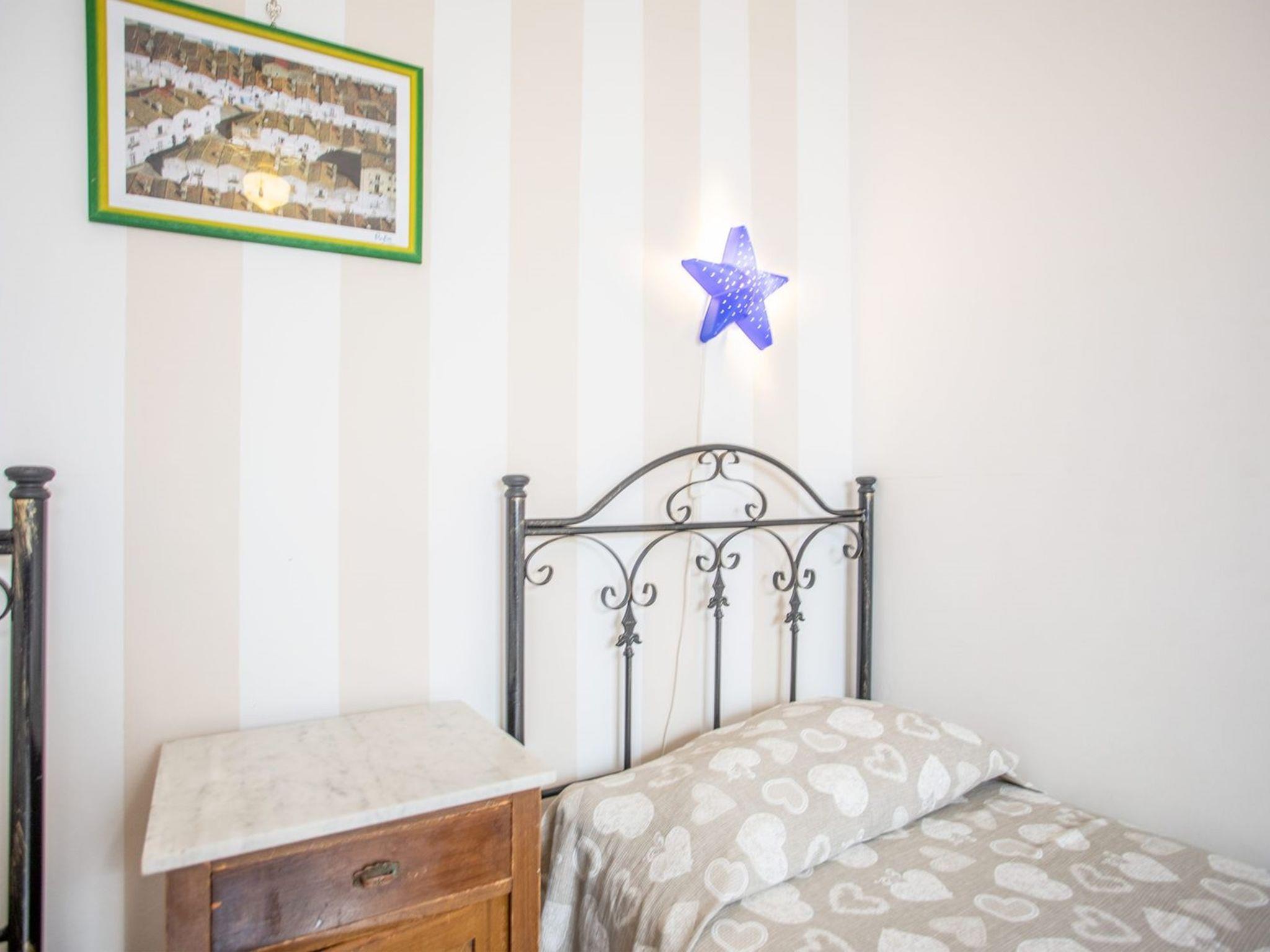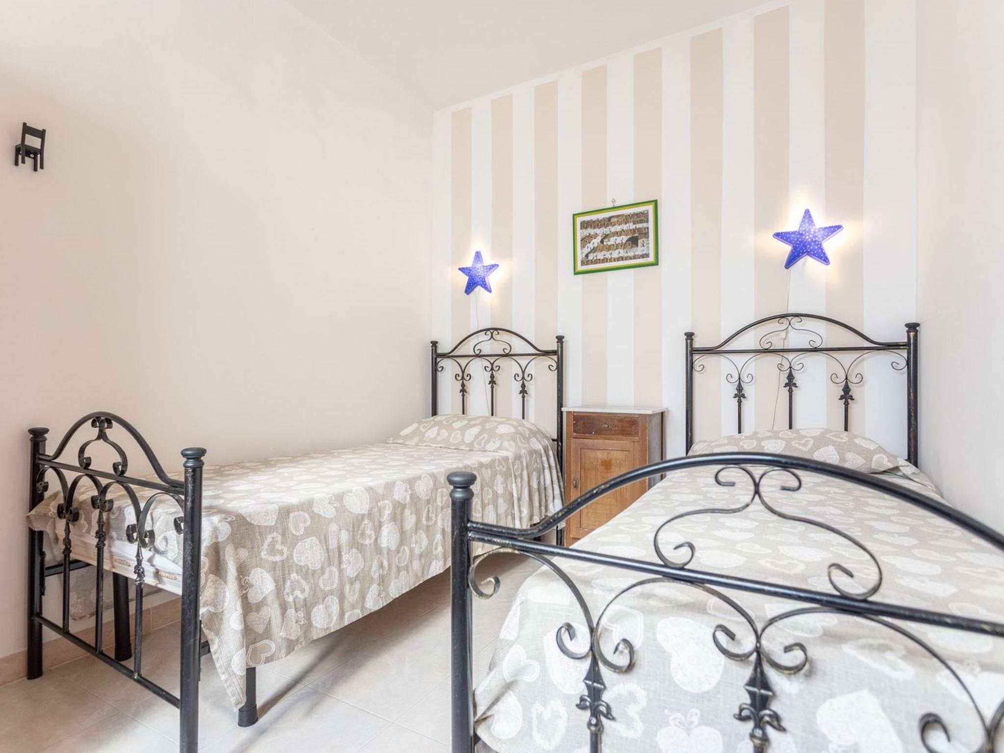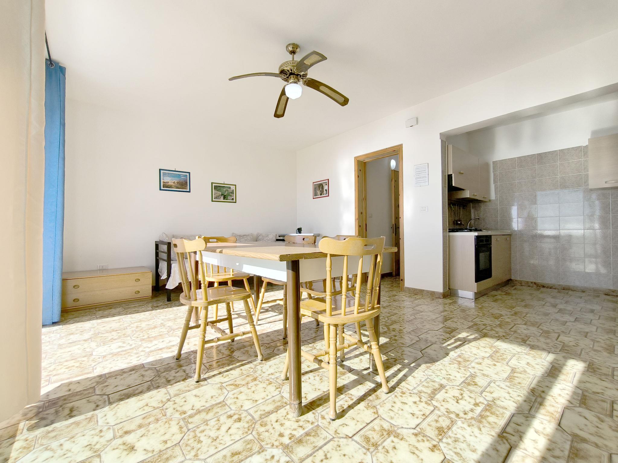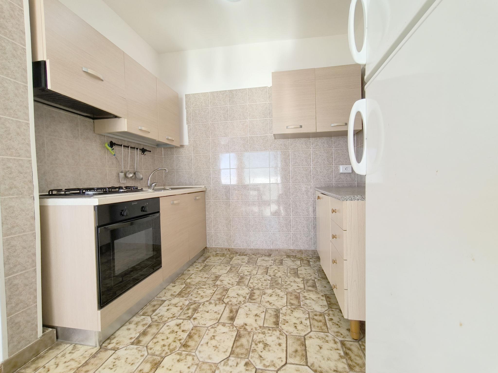 3-Zimmer-Wohnung 65 m2, im Obergeschoss. Zweckmässig eingerichtet: Wohn-/Schlafzimmer mit 1 Diwanbett, Esstisch und Ventilator. Ausgang zum Balkon. Durchgangszimmer mit Klimaanlage und Warmluftheizung. 1 Zimmer mit 1 Doppelbett und Ventilator. 1 Zimmer mit 2 Betten und Ventilator. Offene Küche (Backofen, 4 Flammen). Dusche/Bidet/WC. Heizung nicht in allen Räumen. Balkon. Balkonmöbel. Schöne Sicht auf das Meer. Parkplatz (eingezäunt, 1 Auto) beim Haus. Maximal 1 Haustier/Hund erlaubt. IT075090C200101545
