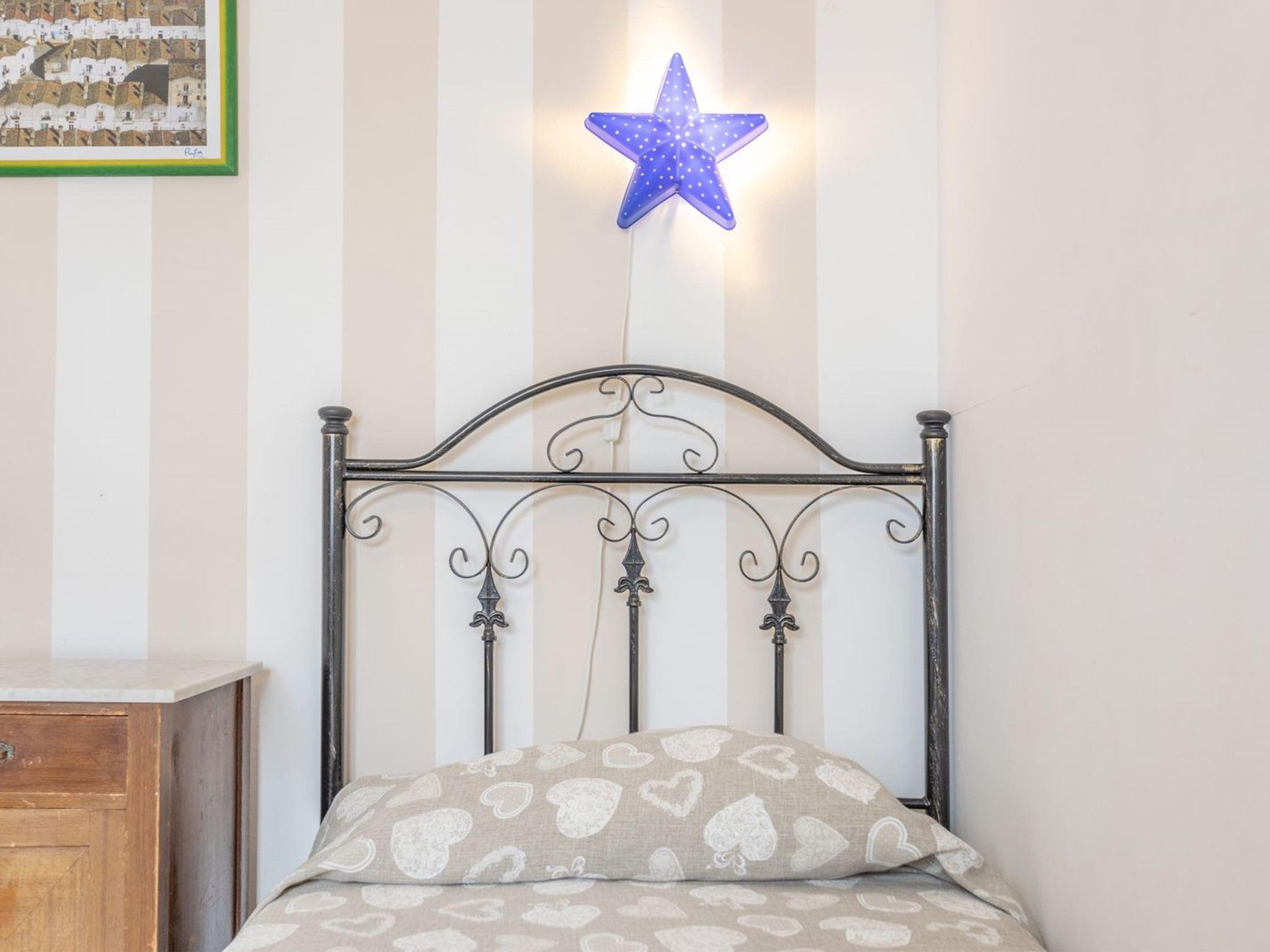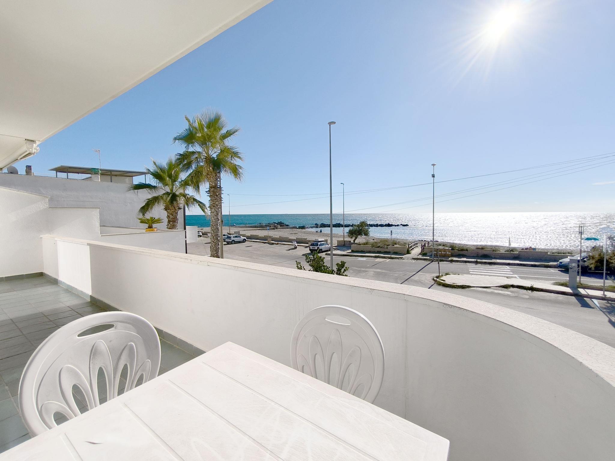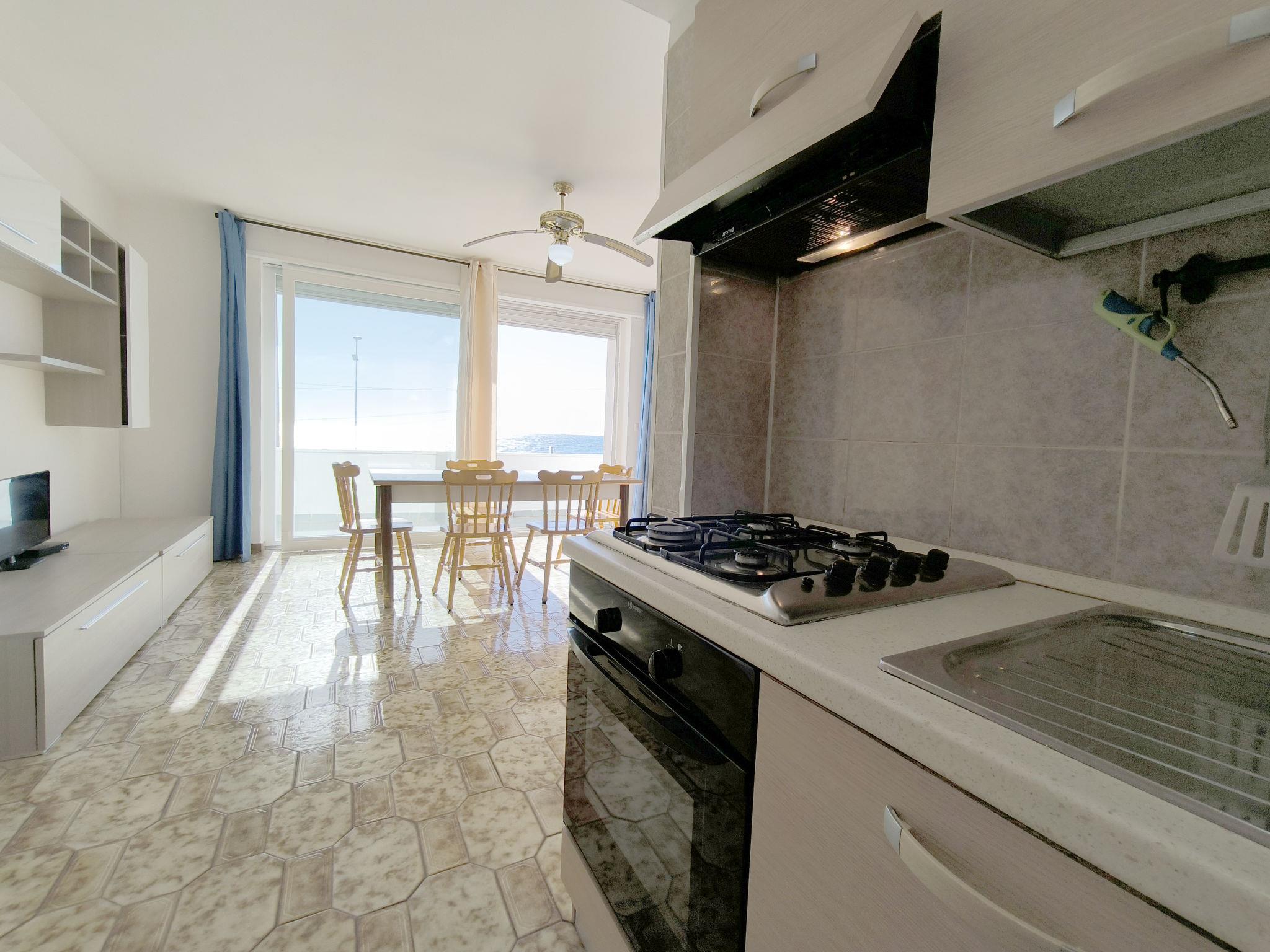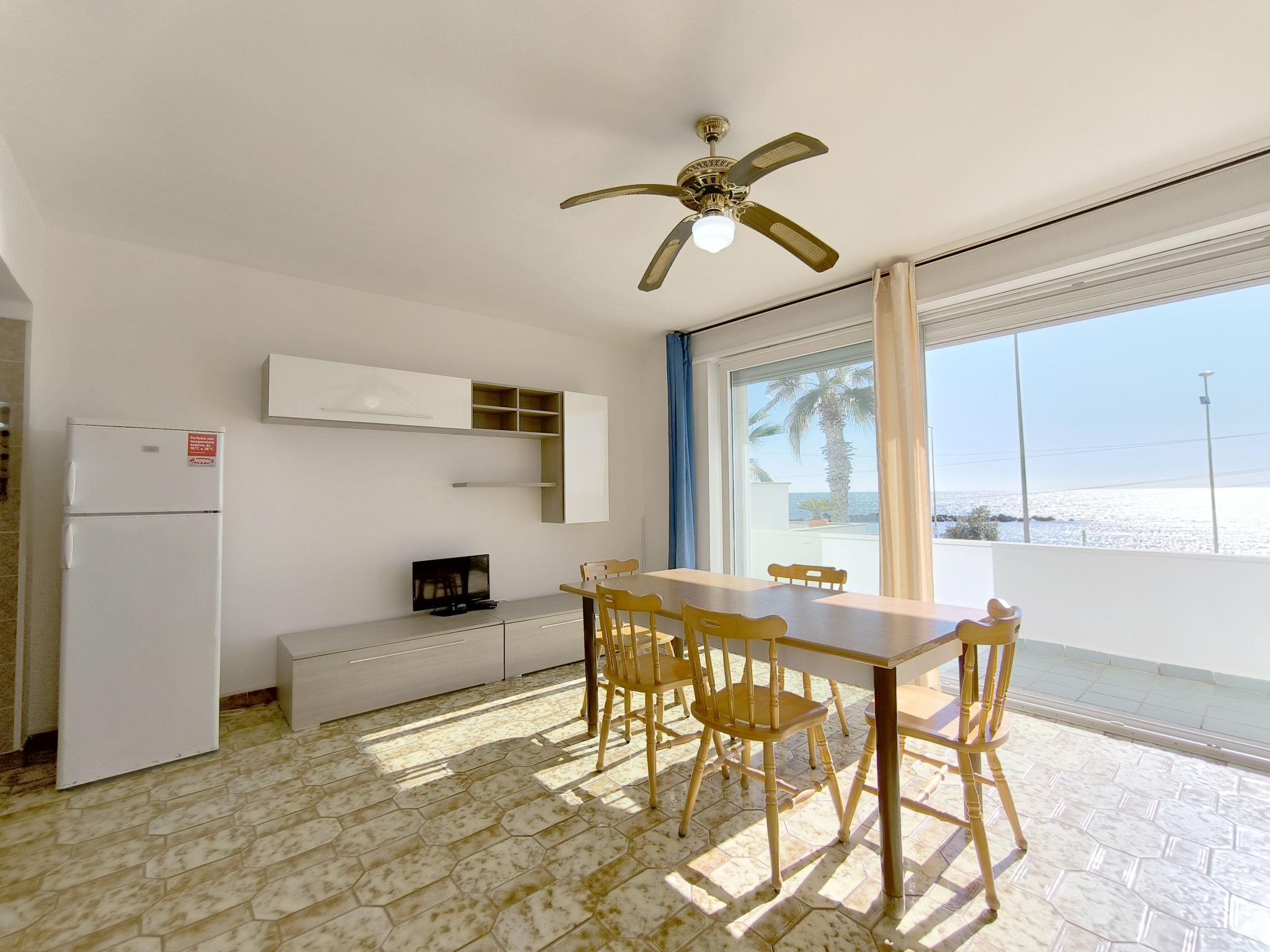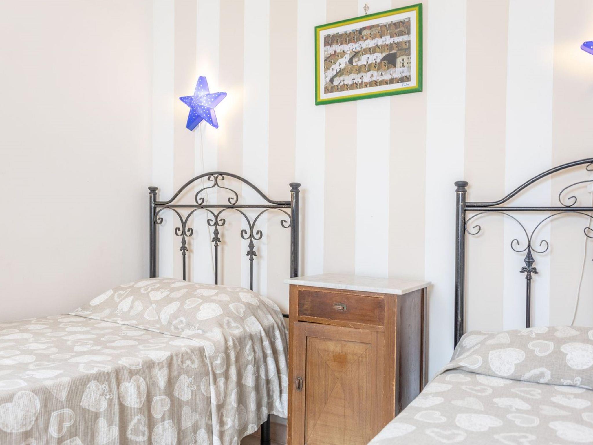 3-Zimmer-Wohnung 65 m2, im Obergeschoss. Zweckmässig eingerichtet: Wohn-/Schlafzimmer mit 1 Diwanbett, Esstisch und Ventilator. Ausgang zum Balkon. Durchgangszimmer mit Klimaanlage und Warmluftheizung. 1 Zimmer mit 1 Doppelbett und Ventilator. 1 Zimmer mit 2 Betten und Ventilator. Offene Küche (Backofen, 4 Flammen). Dusche/Bidet/WC. Heizung nicht in allen Räumen. Balkon. Balkonmöbel. Schöne Sicht auf das Meer. Parkplatz (eingezäunt, 1 Auto) beim Haus. Maximal 1 Haustier/Hund erlaubt. IT075090C200101545