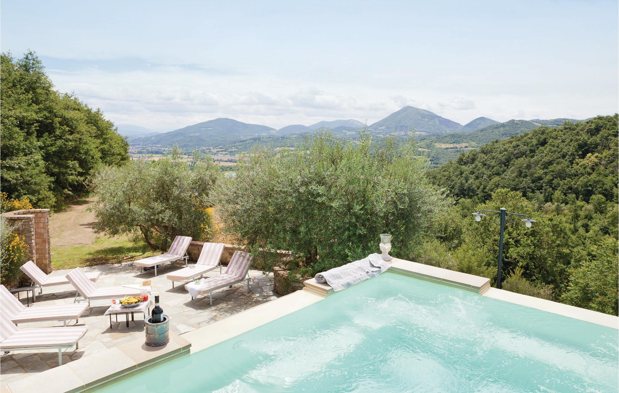 Dieses Ferienhaus mit angrenzendem kleinem Turm im typisch umbrischen Stil liegt bei Monte Umbertide und nur 37 km vom Lago Trasimeno und 45 km von Perugia entfernt.