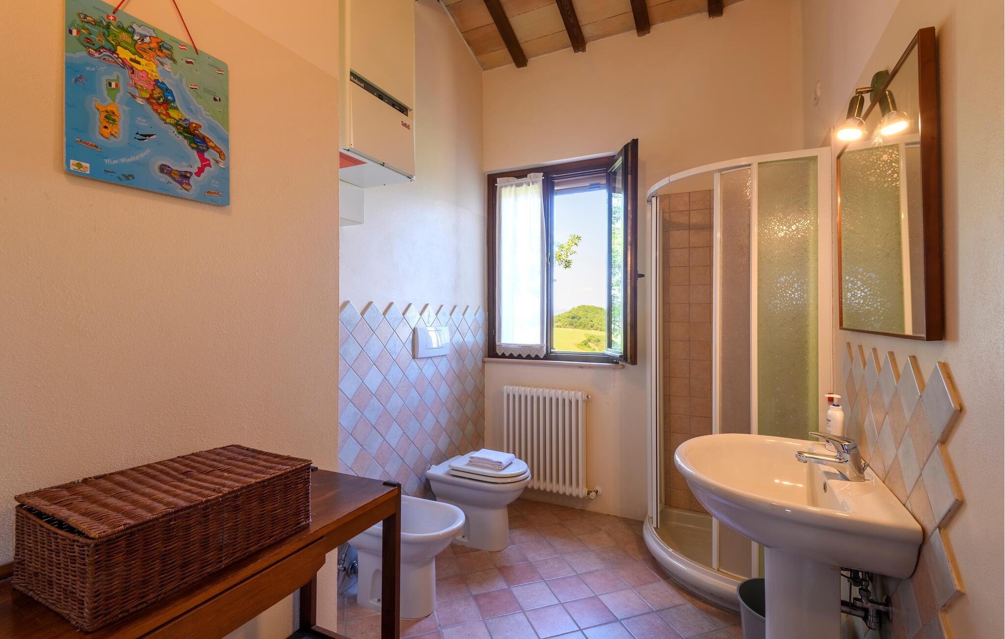 Badezimmer (nr. 2) - WC. Warmes und kaltes Wasser. Dusche
