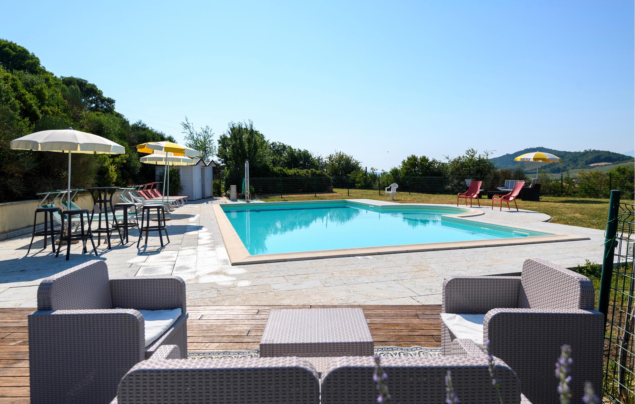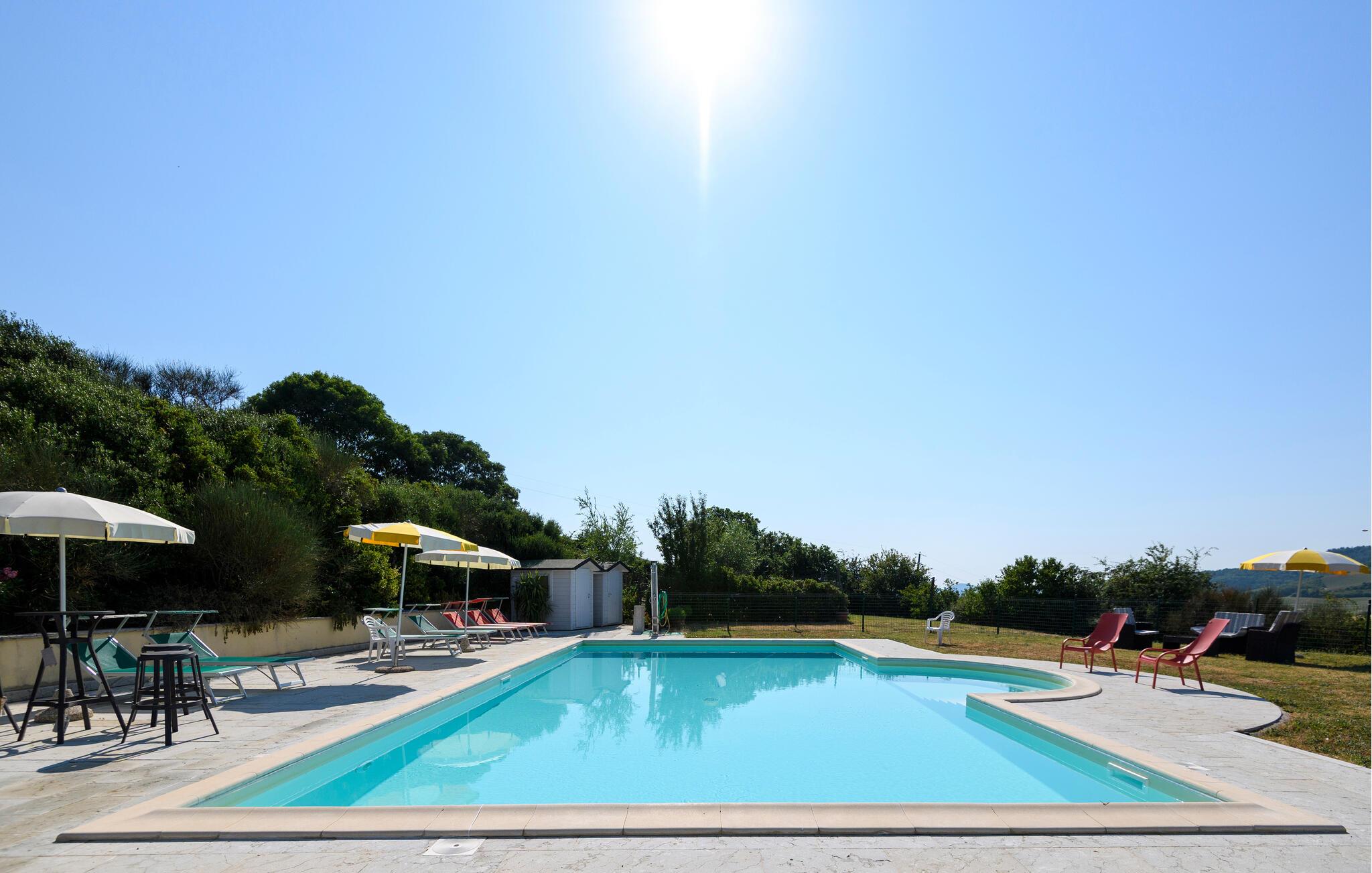 Beginnen Sie den Morgen mit einem Frühstück unter der schattigen Pergola, entspannen Sie sich am herrlichen Pool oder machen Sie ein Picknick unter dem Olivenbaum. Abends können Sie den Grill anfeuern und stimmungsvolle Momente bei Wein und Kerzenschein erleben.