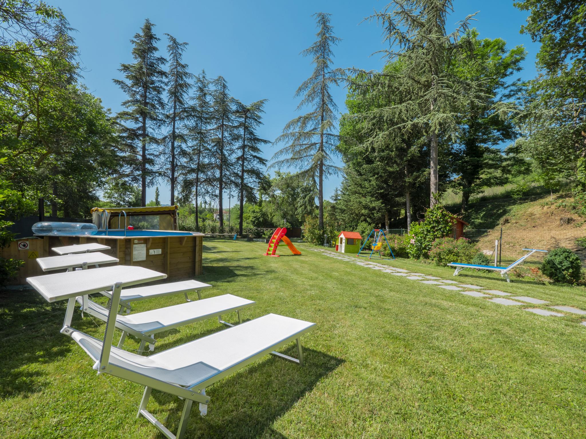 Casinina 16 km von Urbino: Haus "Green Wellness House", auf 2 Stockwerken, einseitig angebaut. Unterhalb von Tavoleto, ausserhalb des Ortes, 700 m vom Zentrum von Casinina, 26 km vom Meer, im Grünen. Zur Alleinbenutzung: Grundstück 380 m2 (eingezäunt) mit Rasen und Pflanzen, Aufstellpool (4 m Durchmesser, 120 cm tief, saisonale Verfügbarkeit: 01.Mai. - 30.Sep.). Aussendusche, Tischtennis, Gartenmöbel, Grill, Kinderspielplatz, Poolpflege durch den Besitzer/Gärtner. Im Hause: Sauna, Sprudelbad (alles inkl.), Wellnessbereich, Tischfussball. Wäschewechsel (zusätzlich extra). Handtuchwechsel (zusätzlich extra). Wohnungsreinigung möglich (extra). Parkplatz auf dem Grundstück. Supermarkt 700 m, Bushaltestelle "Tavoleto" 4 km, Bahnstation "Cattolica" 26 km, Sandstrand "Cattolica" 26 km. Nahe gelegene Sehenswürdigkeiten: Urbino 16 km, Sassocorvaro 14 km, Misano World Circuit 24 km, San Marino 30 km, Pesaro 38 km, Rimini 46 km. Bekannte Seen in der Umgebung sind gut erreichbar: Diga di Mercatale 14 km. Wandergebiete: Carpegna 30 km. Bitte beachten: Fahrzeug empfohlen. Babyausstattung auf Anfrage (extra). Jugendgruppen nur auf Anfrage. Die Residenz wird durch elektrische Tore geschlossen.