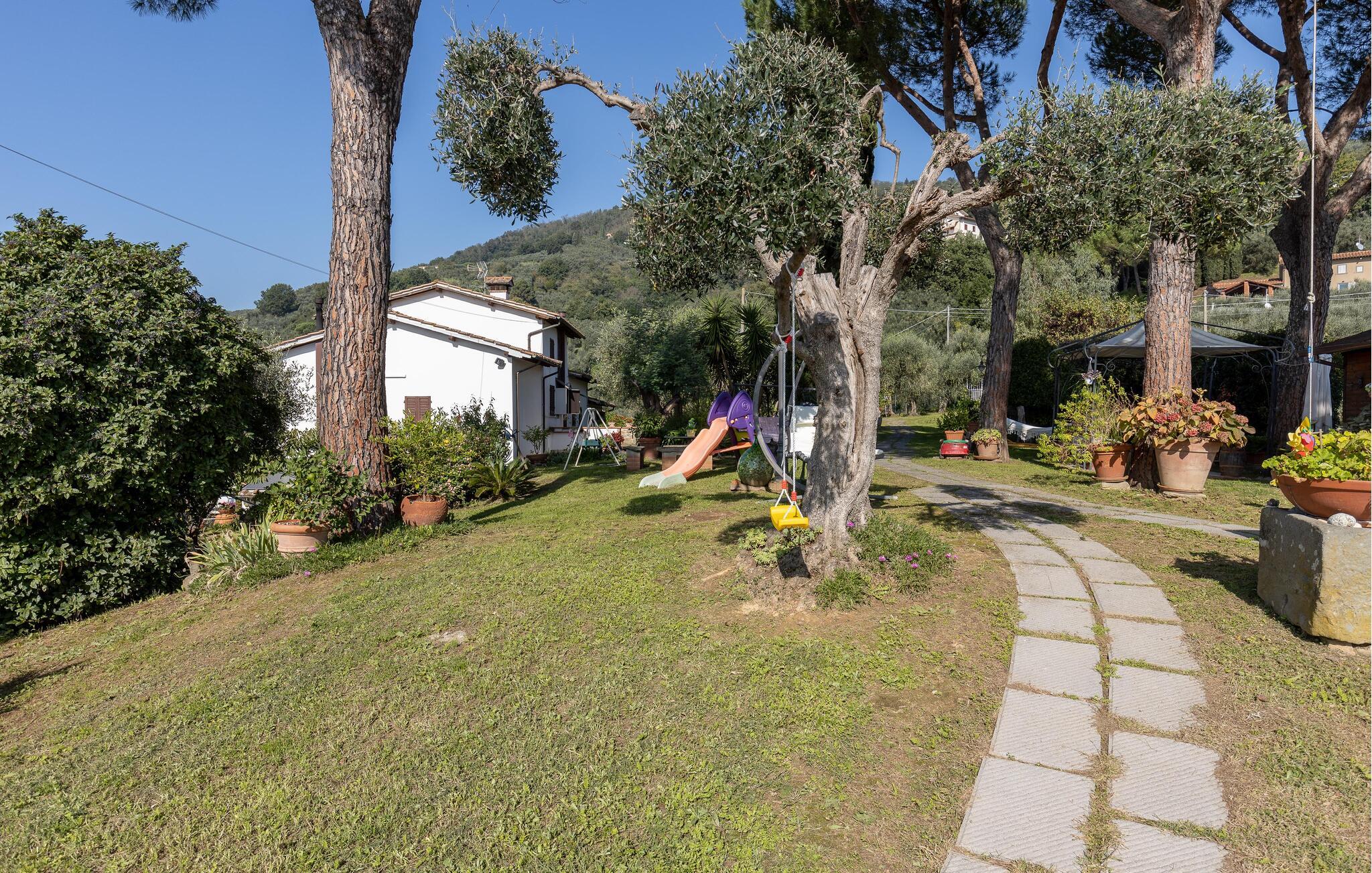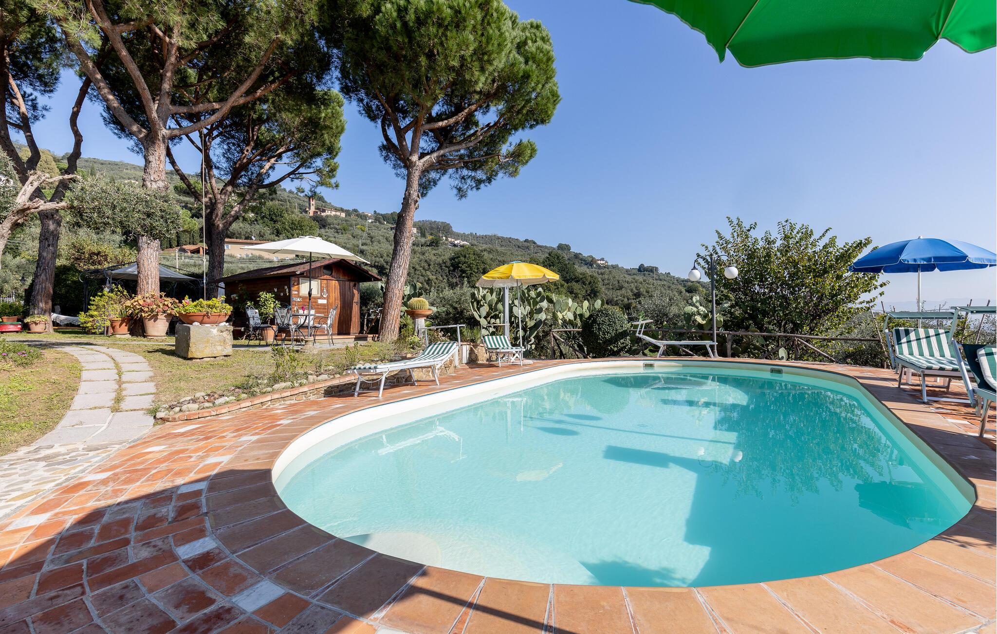 Dieses gepflegte Landgut auf den Hügeln oberhalb der Stadt Pescia bietet einen erholsamen Urlaub. ITP226 ist eine reizvolle Doppelhaushälfte, der andere Teil ist vom netten Hauseigentümer bewohnt. Jeder hat hier seinen privaten Gartenbereich mit Sitzplätzen, der gemeinsame Pool liegt wunderschön und ein bisschen versteckt hinter dem Haus und bietet Ihnen einen schönen Ausblick auf das Tal. Wir empfehlen Ihnen, die nahe gelegenen, schönen Orte Collodi, Lucca und Pistoia zu besichtigen. Lucca war schon unter den Etruskern eine bedeutende Stadt und wurde im Jahre 180 v. Chr. in das Römische Reich einverleibt. Collodi ein beschauliches Dorf in den Bergen erlangte Berühmtheit durch den Autor des Kinderbuches Pinocchio, der sich nach dem Dorf nannte. Der Besuch des Parks ist ein besonderes Vergnügen für alle Pinocchio-Fans. In Pistoia können Sie auf dem eindrucksvollen Domplatz in den Arkaden Schatten und Abkühlung finden und dabei der uralten Geschichte dieser Stadt ganz nahe sein.